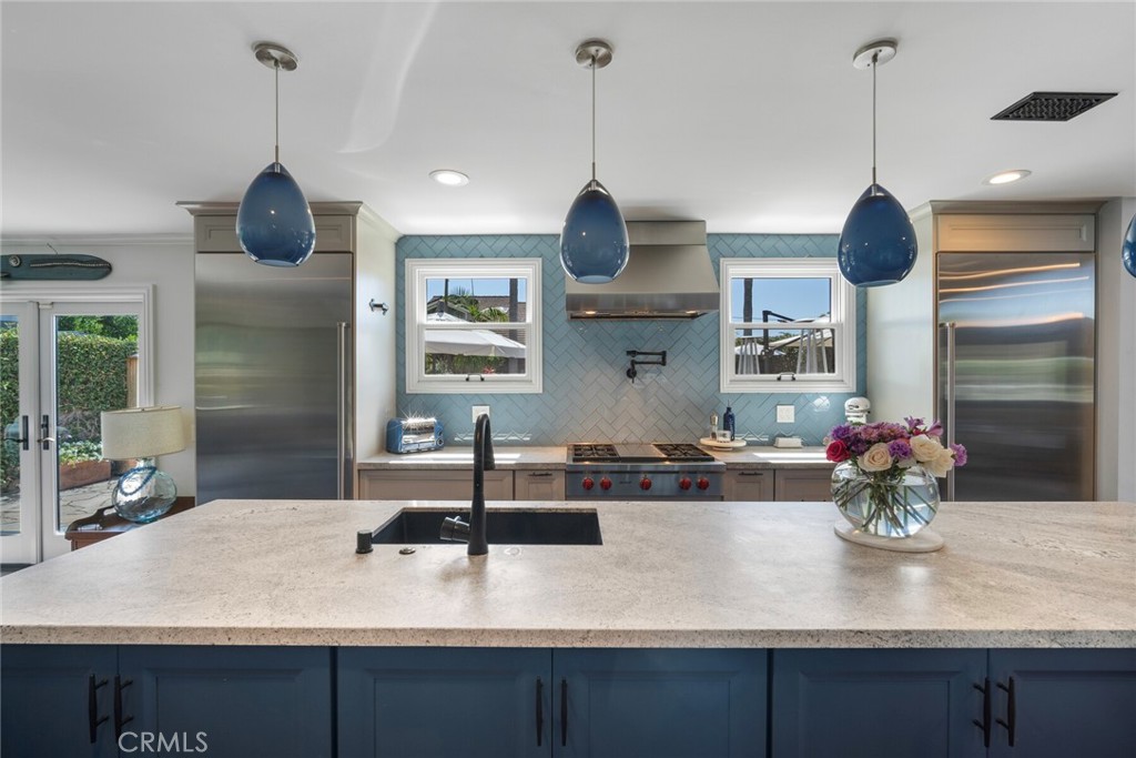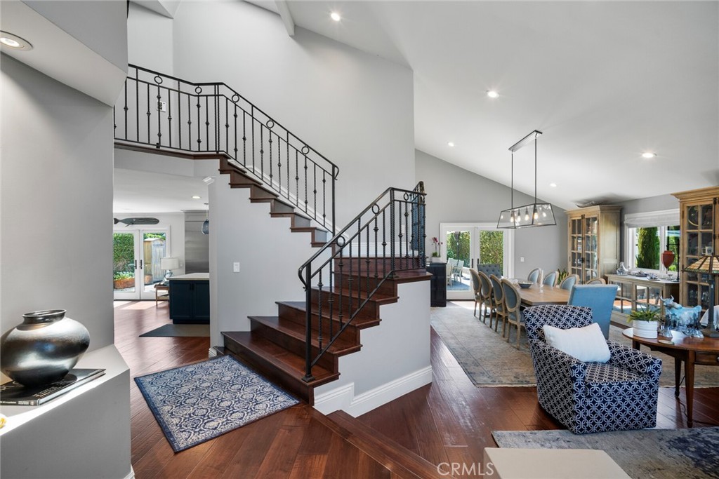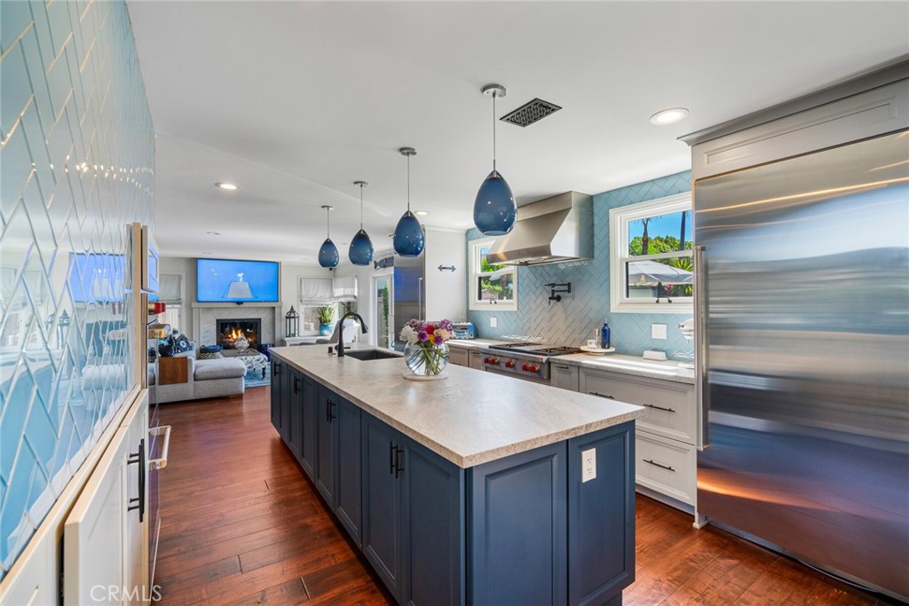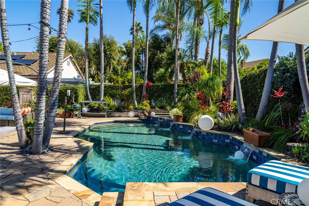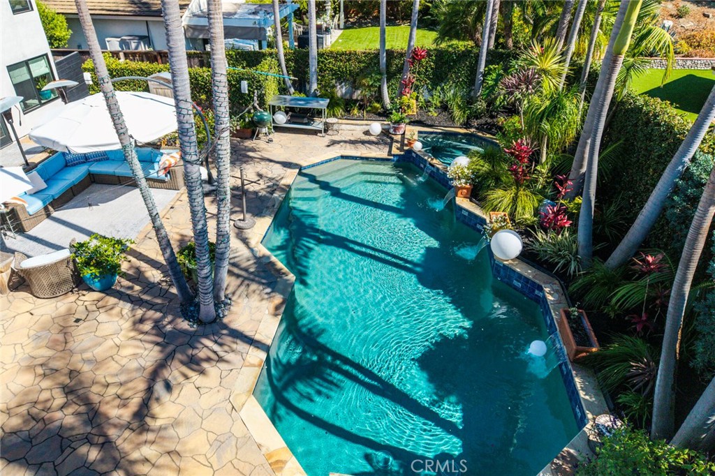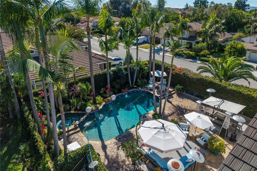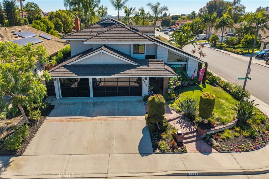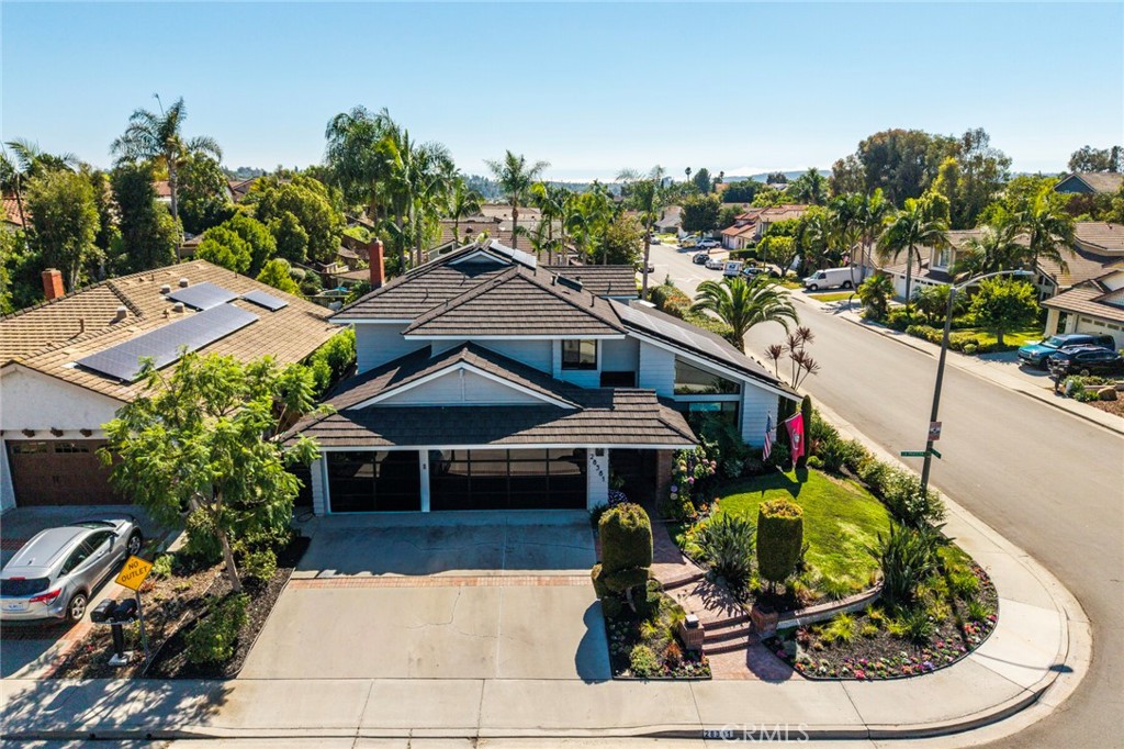 Welcome to 28381 La Pradera — a beautifully crafted Laguna Niguel home that blends custom elegance, modern charm, and everyday functionality in one of the city’s most sought-after neighborhoods. This bright and open approximately 2525 sq. ft. home offers 4 bedrooms and 3 bathrooms, showcasing soaring cathedral ceilings, engineered hardwood floors throughout, and premium finishes—from smooth coat stucco and custom glass garage doors to energy-efficient windows. The chef’s kitchen is a true showpiece, anchored by a grand entertaining island and wrapped in custom cabinetry with hidden appliance garages. Sleek leathered granite countertops pair with dual ovens, a full Sub-Zero refrigerator and separate freezer, and a professional Wolf range with four burners plus griddle—crafted for both culinary excellence and sophisticated entertaining. The inviting family room centers around a striking fireplace, seamlessly connected to the formal dining room and chef’s kitchen for effortless flow. A spacious formal living room offers an elegant setting for refined entertaining. The spa-inspired baths feature premium tile finishes and Toto fixtures, with the primary suite showcasing dual waterfall showers and a Japanese soaking tub for the ultimate retreat. A beautifully designed walk-in closet enhances the suite with both elegance and function. Modern amenities abound, including a flexible floor plan with a main-level bedroom and full bath ideal for multigenerational living, a versatile fourth bedroom currently serving as a home office, and whole-home smart technology integrating lighting, sound, security, and thermostats. Energy-efficient upgrades include solar power, a tankless water heater, upgraded EV plug-in, and complete PEX repiping. Outside, a private tropical oasis awaits with mature King and Queen palms, an upgraded PebbleTec pool and spa, and multiple entertaining areas designed for both relaxation and celebration. Every detail of this remarkable residence blends luxury, comfort, and innovation, creating a home as inviting as it is impressive.
