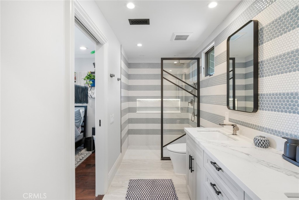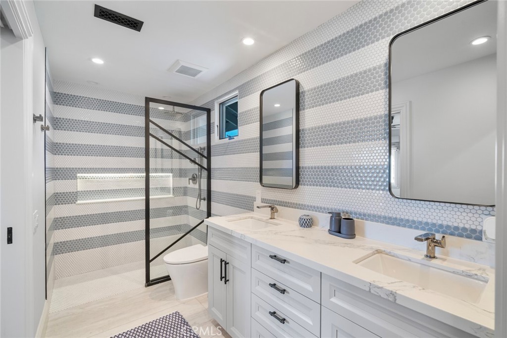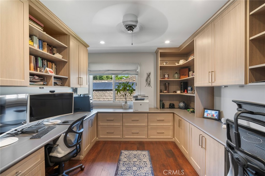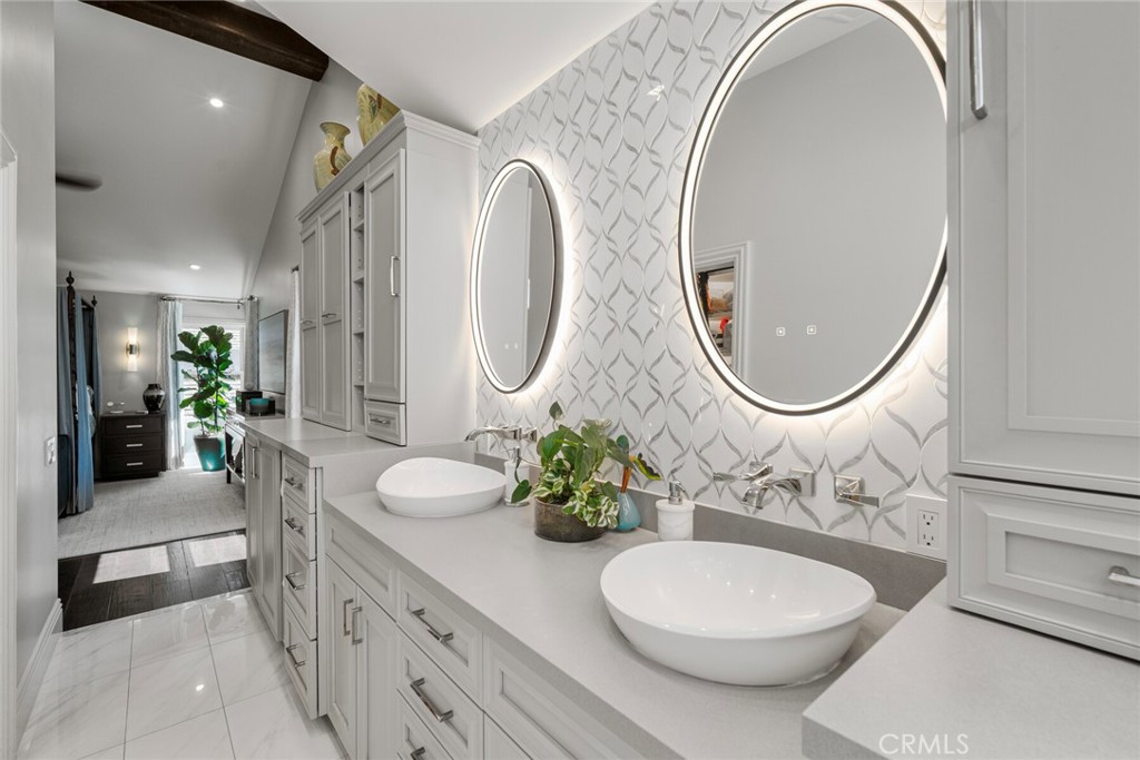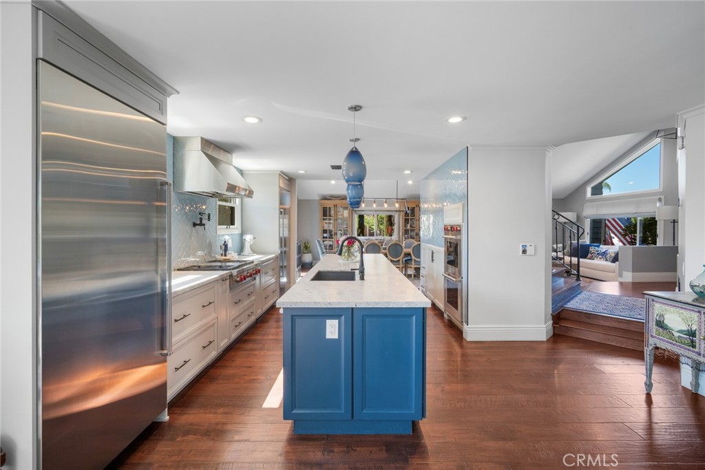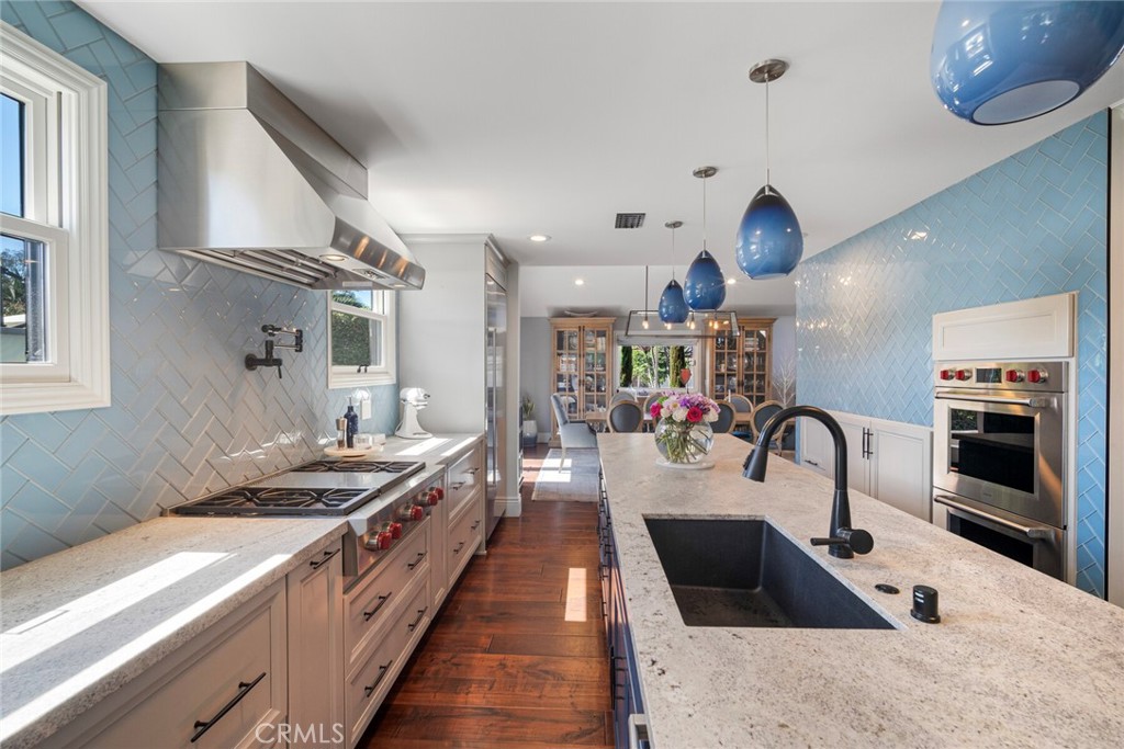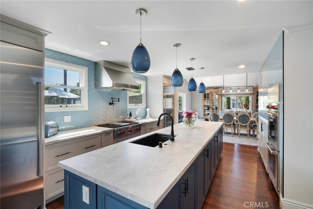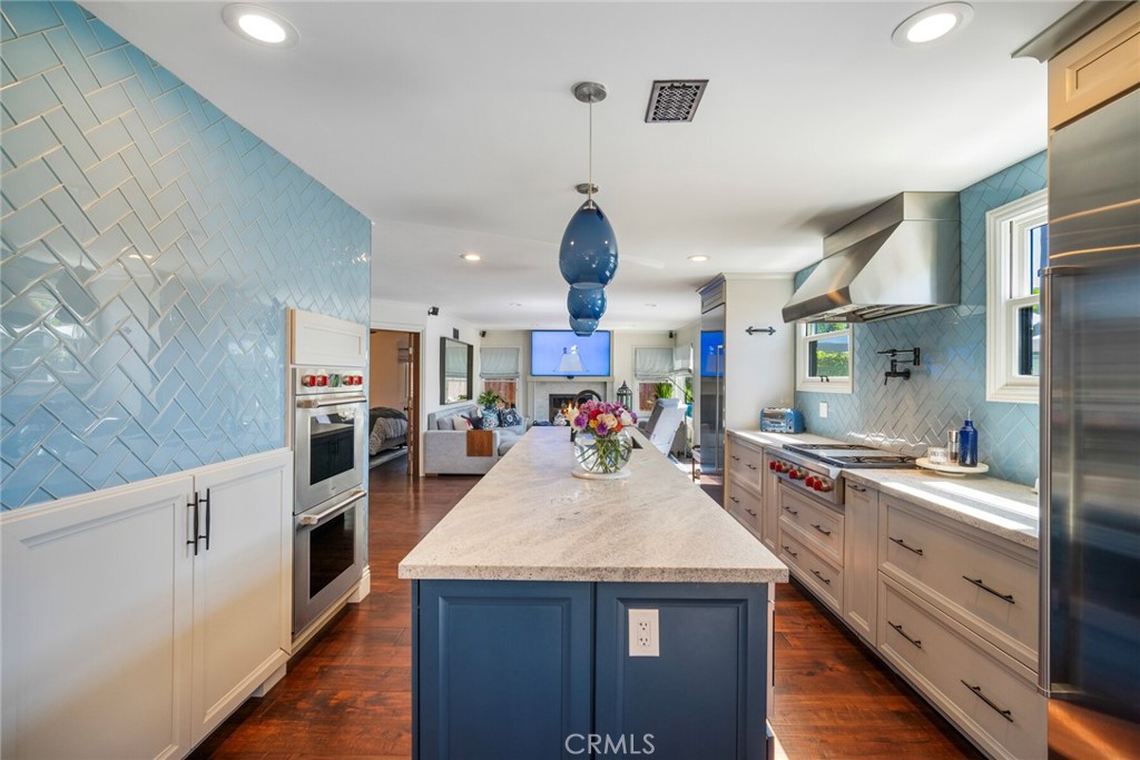 Welcome to 28381 La Pradera — a beautifully crafted Laguna Niguel home that blends custom elegance, modern charm, and everyday functionality in one of the city’s most sought-after neighborhoods. This bright and open approximately 2525 sq. ft. home offers 4 bedrooms and 3 bathrooms, showcasing soaring cathedral ceilings, engineered hardwood floors throughout, and premium finishes—from smooth coat stucco and custom glass garage doors to energy-efficient windows. The chef’s kitchen is a true showpiece, anchored by a grand entertaining island and wrapped in custom cabinetry with hidden appliance garages. Sleek leathered granite countertops pair with dual ovens, a full Sub-Zero refrigerator and separate freezer, and a professional Wolf range with four burners plus griddle—crafted for both culinary excellence and sophisticated entertaining. The inviting family room centers around a striking fireplace, seamlessly connected to the formal dining room and chef’s kitchen for effortless flow. A spacious formal living room offers an elegant setting for refined entertaining. The spa-inspired baths feature premium tile finishes and Toto fixtures, with the primary suite showcasing dual waterfall showers and a Japanese soaking tub for the ultimate retreat. A beautifully designed walk-in closet enhances the suite with both elegance and function. Modern amenities abound, including a flexible floor plan with a main-level bedroom and full bath ideal for multigenerational living, a versatile fourth bedroom currently serving as a home office, and whole-home smart technology integrating lighting, sound, security, and thermostats. Energy-efficient upgrades include solar power, a tankless water heater, upgraded EV plug-in, and complete PEX repiping. Outside, a private tropical oasis awaits with mature King and Queen palms, an upgraded PebbleTec pool and spa, and multiple entertaining areas designed for both relaxation and celebration. Every detail of this remarkable residence blends luxury, comfort, and innovation, creating a home as inviting as it is impressive.