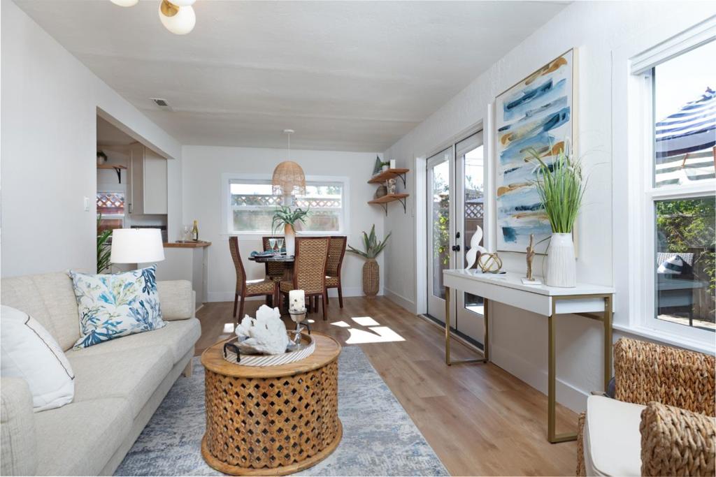 Tucked away in the heart of sunny Seabright, this classic beach bungalow offers the perfect blend of comfort, privacy and coastal vibes, with peace and quiet and an abundance of natural light inviting you in. A remodeled kitchen opens seamlessly to the dining and living areas and right out to the deck, creating the ideal flow for everyday living and entertaining. Newer roof and HVAC, tankless water heater, updated bath, double pane windows and plank flooring, keep it stylish and practical. Plus a detached 135 sq ft finished outbuilding with wd floors and electricity, well-suited for a home office, studio, or creative space. The alleyway entrance on Windsor rather than Seabright and a gated front yard create a relaxed ambiance for this minimalist-style home. Hop on the bike and you are just minutes from the best of Santa Cruz beaches, shops and eateries, the harbor, hiking and biking trails. Seabright itself embodies the quintessential coastal vibe, with dog-friendly parks, summer bonfires and sailboat races, lively restaurants and bars, and Midtown Block Parties. Whether searching for a primary residence or weekend getaway, this home captures the spirit of Santa Cruz; laid-back, welcoming, and effortlessly cool. Are you ready to make this Seabright treasure your coastal haven?