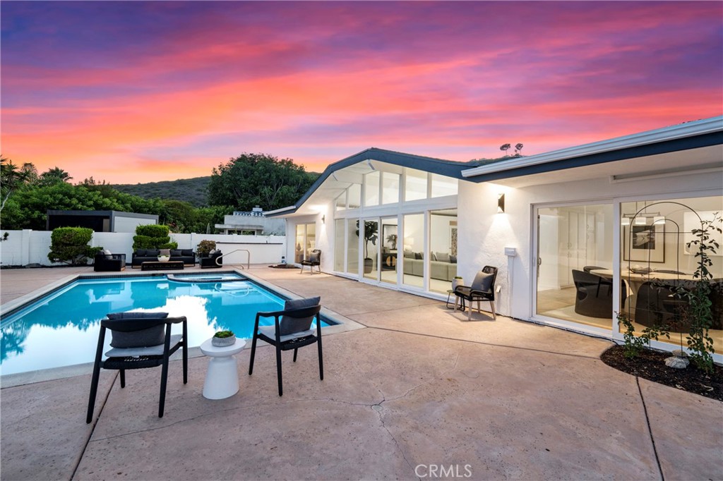Welcome to 31802 Isle Royal, a rare opportunity to own a Joseph Eichler inspired-design home, nestled on a peaceful, private street with elevated views of the El Niguel Golf Course. Truly an outstanding Single level home with absolutely "no steps" located within the coveted area of "National Park" with NO HOA, and only minutes away from the Pacific Ocean. Step inside and experience the hallmarks of Eichler's visionary architecture--signature post-and-beam construction and floor-to-ceiling glass walls. This residence, with a southern exposure, provides 4 bedrooms, 2 bathrooms, vaulted ceilings, new carpet throughout, both exterior and interior new paint, multiple skylights, separate dining area, family room with fireplace and an approximate 15,300sqft site offering outstanding entertainment options and the ability to add an ADU or pool house for the large in-ground swimming pool. The rear wall of the dining and family room areas is comprised of mostly glass. The Master suite has direct access to the outdoor jacuzzi & pool, mirrored closet doors. The master bath includes two sinks, walk-in shower and newer fixtures. The kitchen area includes an additional sky light, five-burner gas range, double ovens, trash compactor, dishwasher and plentiful cabinet space. This residence truly qualifies as "open & spacious" and "light & bright". Oversized 2-car garage is partially finished, contains additional storage cabinetry and opens to an oversized 2-car driveway. This single-level mid-century modern gem captures abundant natural light throughout the day and offers a seamless connection between indoor and outdoor living. This home embodies the California modern ethos Eichler championed-- with its clean lines, minimalist facade, and warm indoor-outdoor transitions. It’s ready for your vision: preserve its architectural integrity while incorporating your own modern finishes to create a truly bespoke residence. Don’t miss your chance to own a legacy in one of Laguna Niguel’s most desirable coastal communities.. Excellent proximity to the Pacific Ocean and the World Renowned Salt Creek Beach with its famed surfing breaks, the Ritz Carlton and Waldorf Astoria Resorts! Minutes away from Dana Point with both its Harbor and Lantern District offering numerous shopping and dining opportunities as well Laguna Beach!