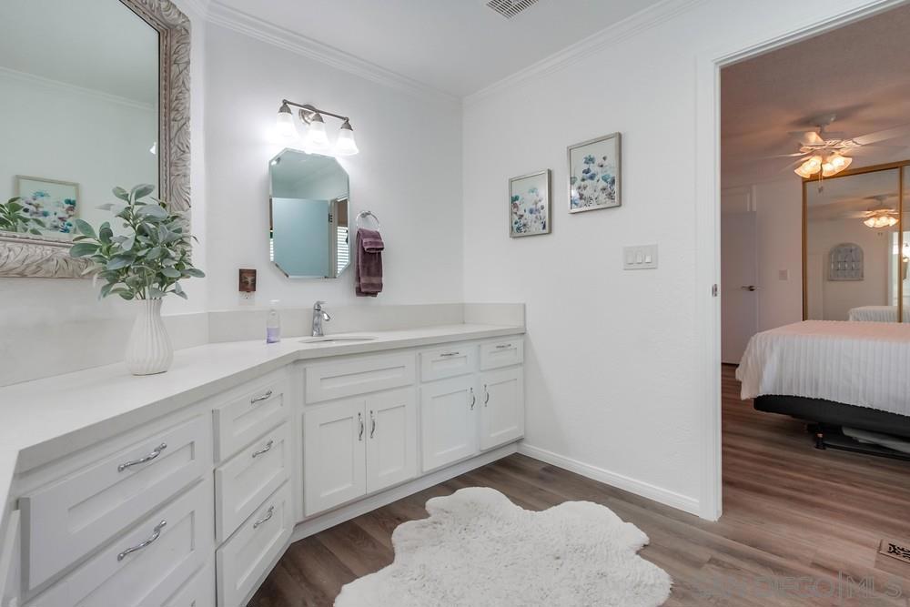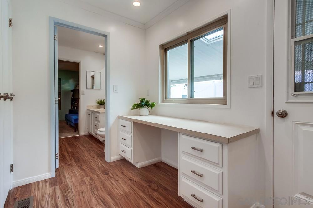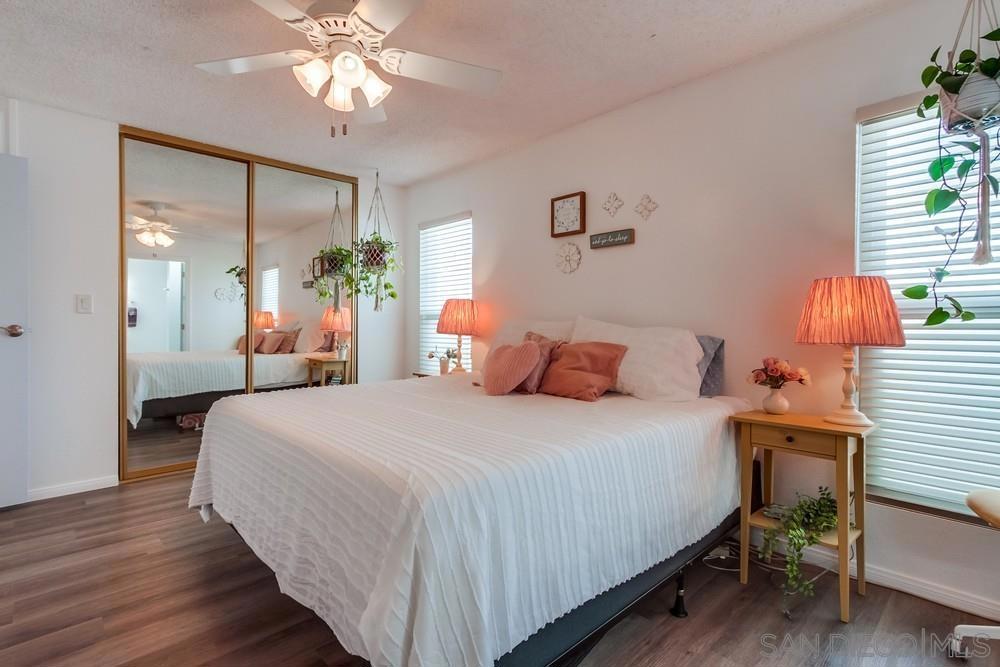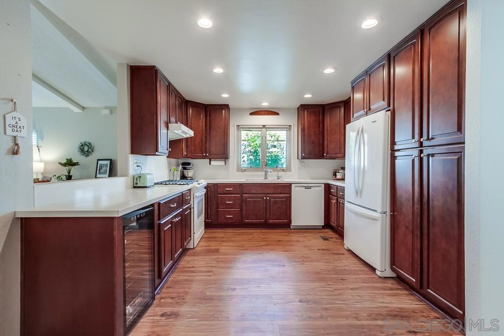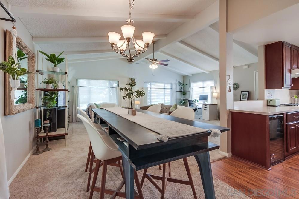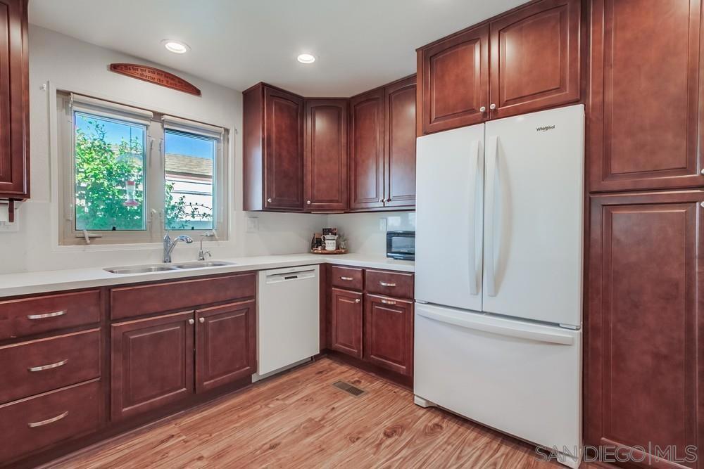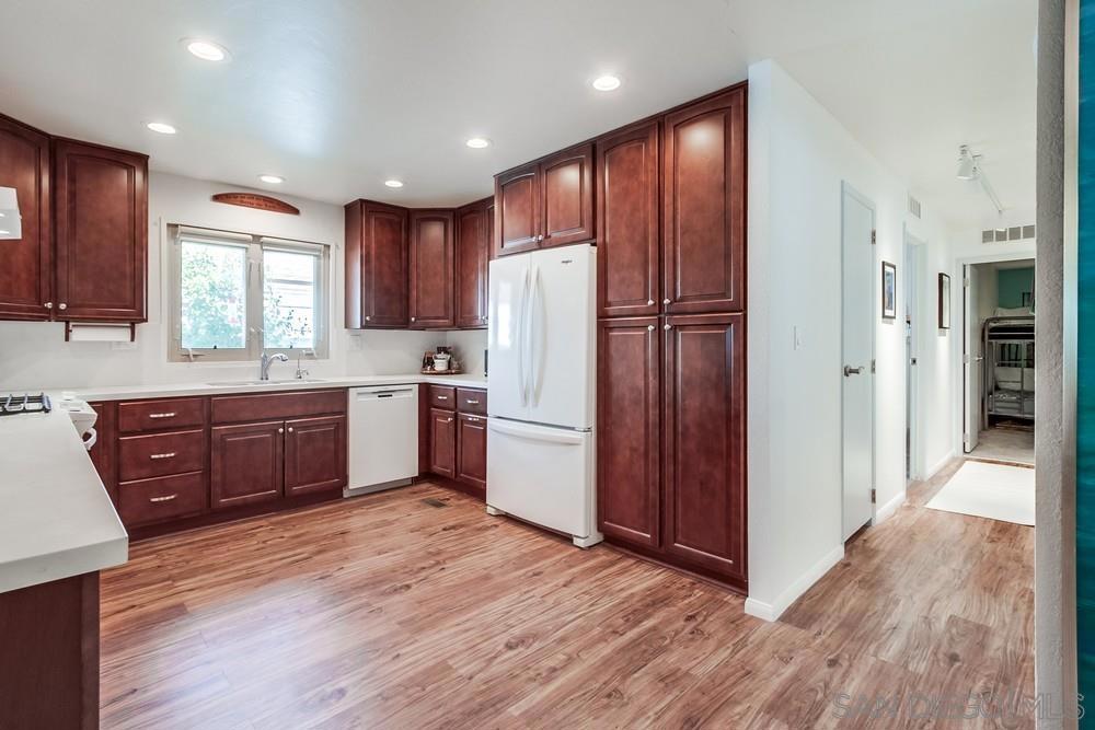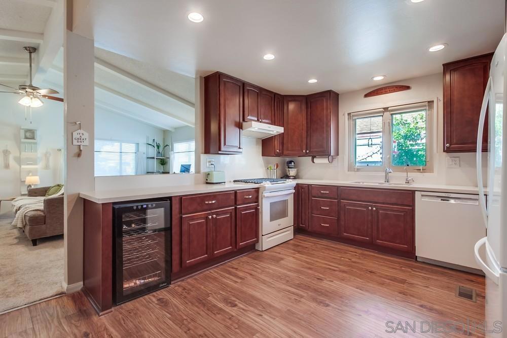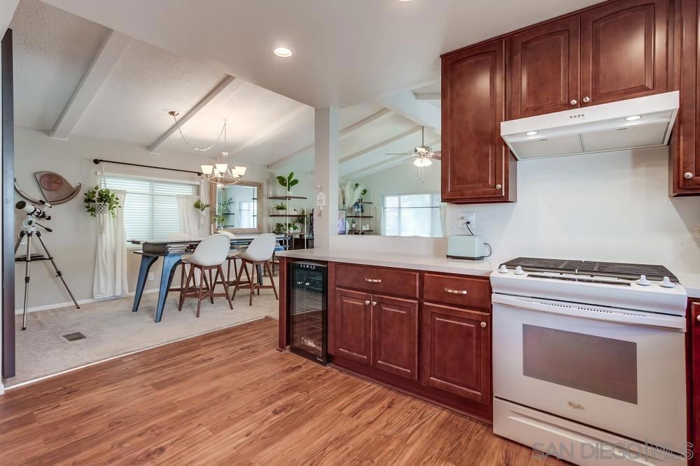 Tucked away on a quiet cul-de-sac just minutes from the 15 freeway, this turnkey home has been thoughtfully remodeled inside and out. The land is NOT LEASED, but owned (no rents to pay) The stunning kitchen boasts custom hardwood cabinetry with slow-close doors, pull-outs, and lazy Susans, gleaming quartz countertops, a built-in wine refrigerator, a reverse osmosis water purification system, and top-quality Whirlpool and Bosch appliances. An open-concept layout flows seamlessly into the living and dining areas—ideal for entertaining or relaxing at home. The bright and airy primary suite features a large walk-in closet and a fully renovated bathroom with dual vanities, quartz counters, and luxury vinyl plank flooring. A second spacious bedroom offers versatility for guests, an office, or hobbies, while the dedicated laundry room includes a built-in workspace, perfect for working from home. Upgrades include dual-pane UPVC windows, recessed lighting, and updated electrical throughout. Outside, enjoy a private backyard enclosed with low-maintenance vinyl fencing, plus the added bonus of a detached workshop. This home has installed solar (leased) reducing electricity to only $73/ month.