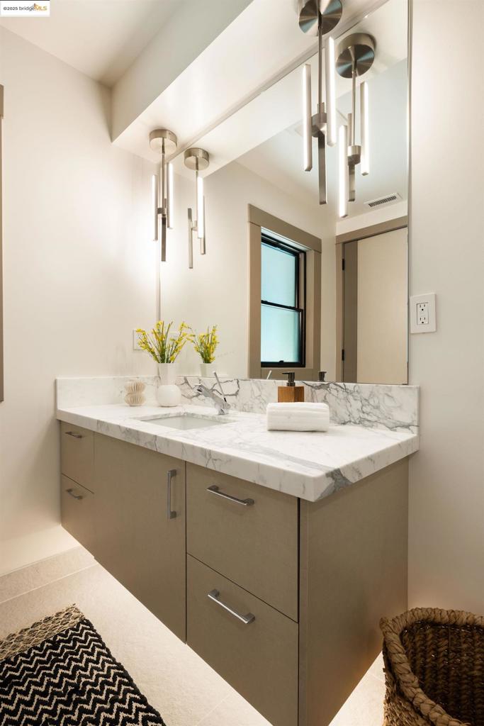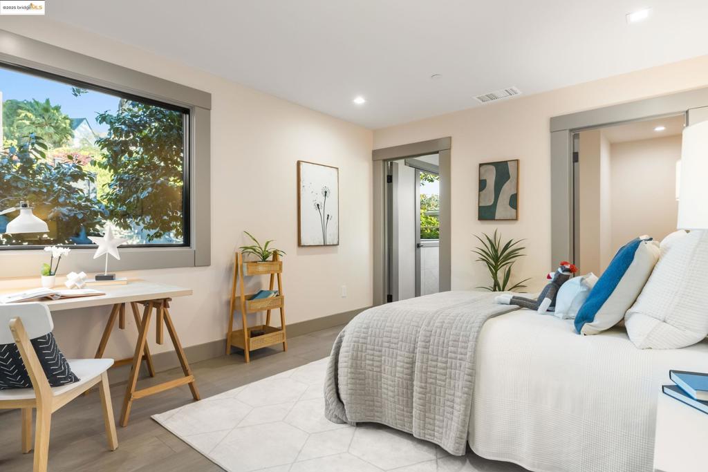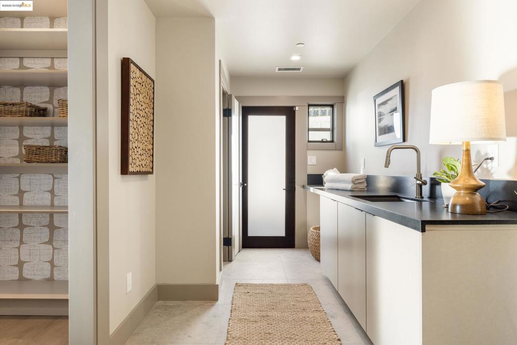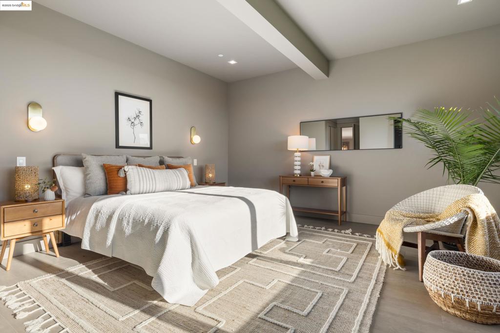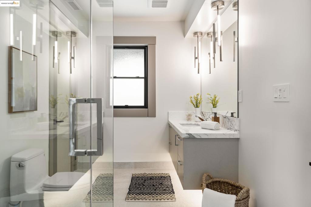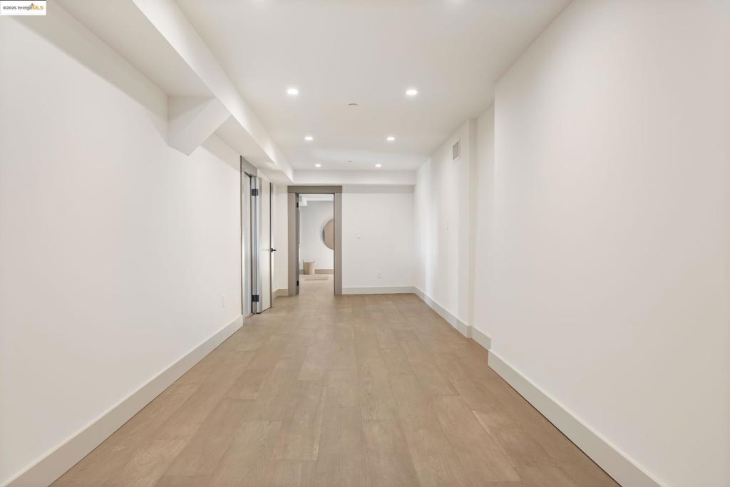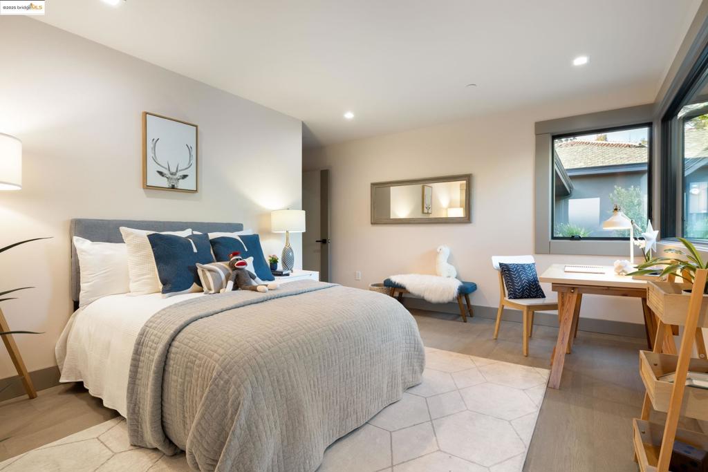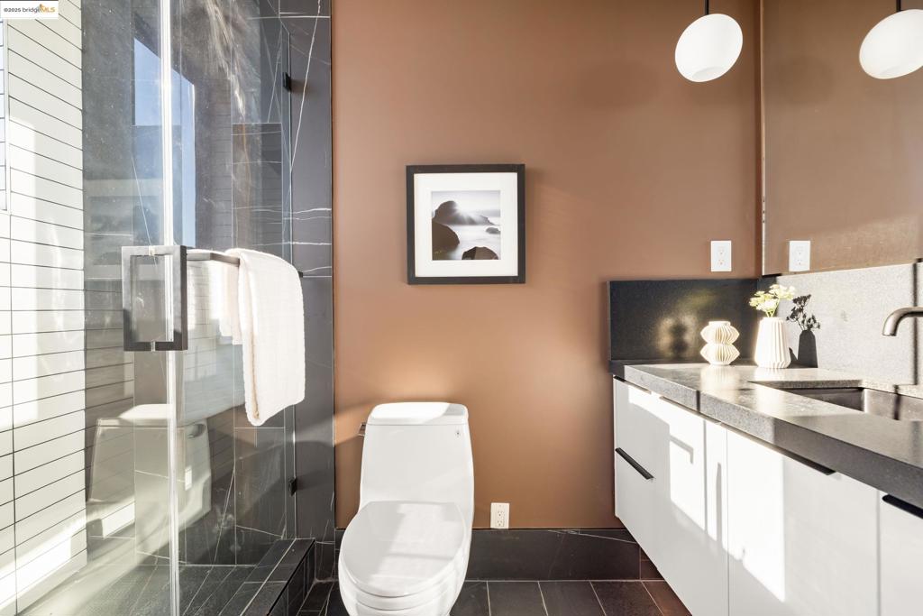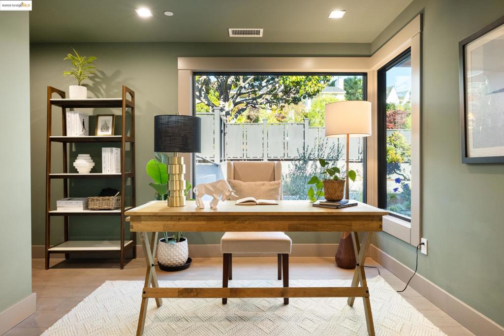 Perched in prestigious Claremont Pines, 5737 Country Club Drive is a reimagined 1952 residence that masterfully marries midcentury heritage with contemporary sophistication. Expanded and meticulously renovated, the home embraces natural light, clean lines, and sweeping views of the San Francisco Bay and skyline. A private garden entry and custom pivot door lead to the main level, where a dramatic living room with fireplace and wall-to-wall glass accordion doors open to a deck with frameless railings. At the heart of the home, the kitchen and dining room showcase a sculpted stone island with dual faucets, a bespoke coffee bar with brass sink, & a prep bar with wine fridge, and secondary dishwasher. A pantry, laundry suite, two powder rooms, garage, office, & ensuite bedroom complete the level, while the primary suite offers dual walk-in closets & a spa-inspired bath with glass rain shower, freestanding tub, custom stone vanity, water closet, & sliding doors that frame the view. The lower level features a family room with fireplace and wet bar, two ensuite bedrooms, a theater, wine cellar, flex room, & fitness space opening to landscaped gardens and a flat lawn—seamlessly blending hillside tranquility with urban connectivity for a rare fusion of architecture, setting and lifestyle.