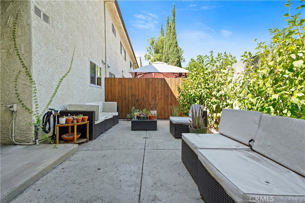 Welcome to this spacious 1,346 sq. ft., two-story townhome in a desirable Valley Glen area. This unit features two primary suites with large closets and 2.5 upgraded bathrooms. The chef's kitchen has top-of-the-line Jenn-Air appliances, including two dishwashers. The living room offers a cozy atmosphere with a functioning gas fireplace, and the adjacent dining area is perfect for entertaining with a wet bar and wine fridge. Enjoy California indoor-outdoor living with a large front patio, a private balcony off one primary bedroom, and a large back patio with mature landscaping, all accessed through upgraded sliding doors. Additional features include two side-by-side underground parking spaces. Located at 6332 Fulton Ave #109, the property is close to Los Angeles Valley College and Valley Glen Community Park and has easy access to freeways, entertainment, and retail.