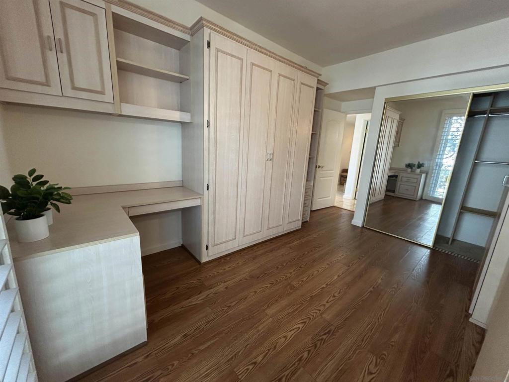 Superb spacious 2-bedroom corner unit, boasting brilliant natural light and fresh air. Located in excellent Bankers Hill neighborhood overlooks San Diego Harbor and the Airport. Located blocks away from Balboa Park and Downtown. Enjoy living in this vibrant neighborhood that perfectly blends urban living with a touch of tranquility. Albatross St and surrounding streets are quiet and pedestrian-friendly with plenty of street parking. This unit was just freshly painted. It features Newman floor-to-ceiling double pane windows with shutters throughout the unit. Upgrades include wood floors, custom-made kitchen and bathrooms cabinets with natural stone, quartz and marble countertops. The kitchen has abundant cabinet space, recessed lighting and newer appliances. Both bathrooms have glass enclosed showers with top of the line fixtures. You'll be gladly surprised with the amount of storage and closet space throughout the house. If you happen to be downsizing: "bring it all!" Primary bedroom includes three closets spaces, including a real walk-in-closet. You'll appreciate the second bedroom's versatility as a home office with built-in furniture and as a bedroom with a convenient Murphy bed; turn this space from a home-office into a guest bedroom in seconds. The building includes a private underground garage with one assigned parking space and storage unit.