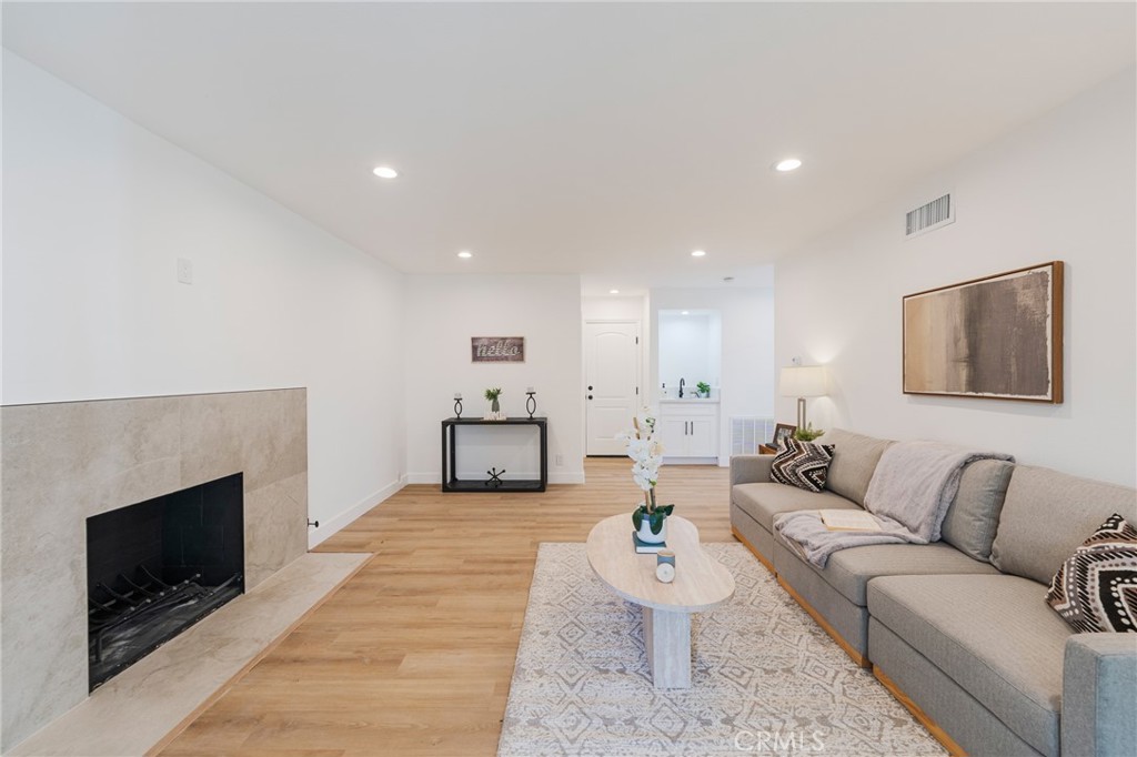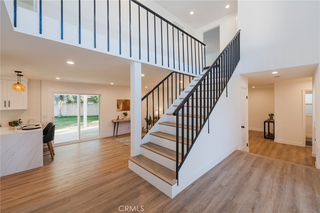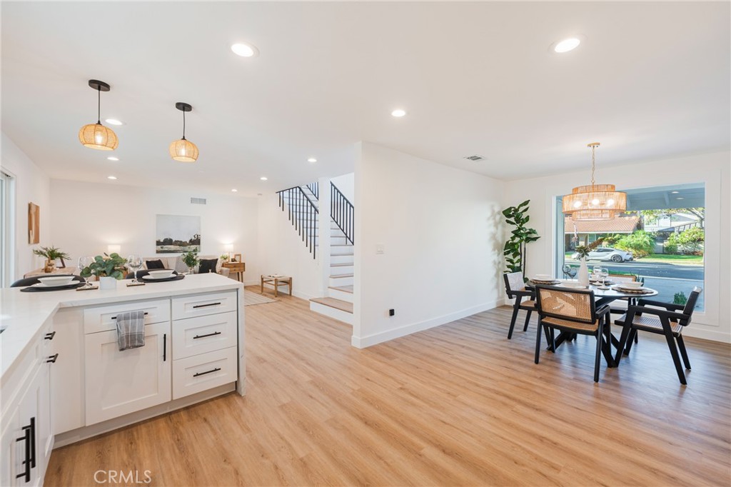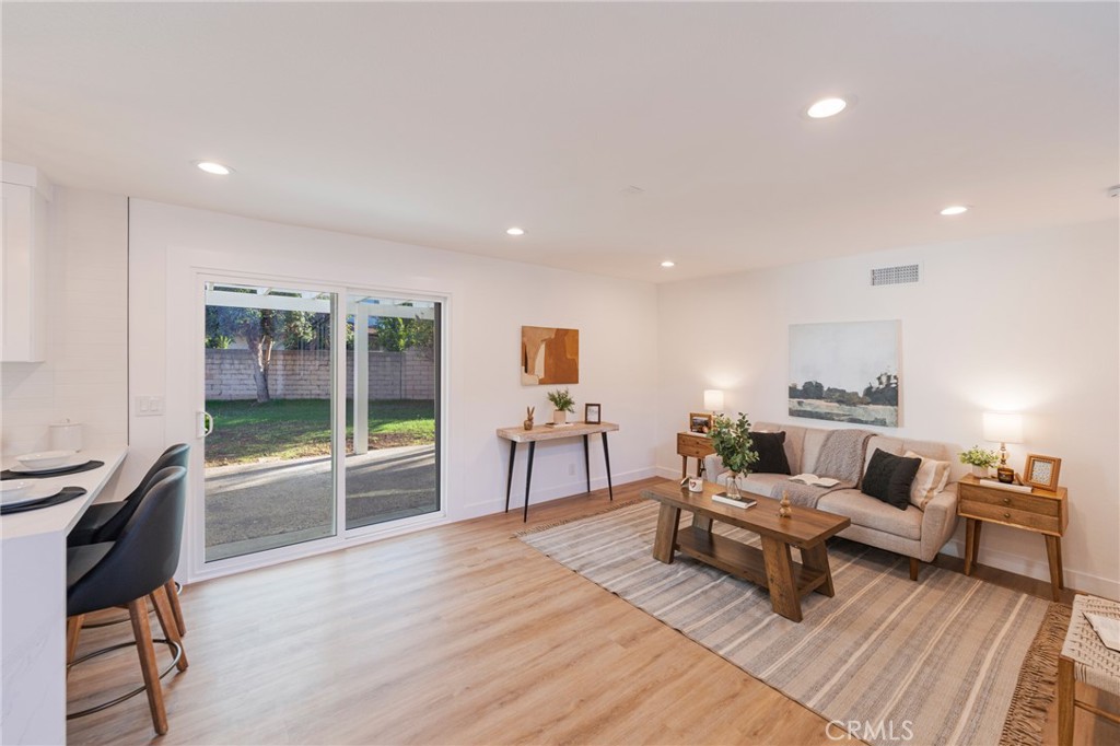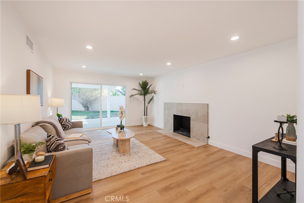 Welcome to this beautifully renovated home with a spacious 3-car garage, where modern design meets luxurious comfort. Located in a highly desirable neighborhood in Cerritos, CA. This stunning property boasts a spacious floor plan with four (4) generously sized bedrooms and various premium features that elevate your living experience. All 2.5 bathrooms have been tastefully renovated with modern mid-century touches. Step inside through a beautiful custom double wood door and be greeted by the inviting ambiance, enhanced by recessed lighting, new whisper white interior/exterior paint, all new windows, and premium laminate wood flooring throughout the home. The heart of this home is the chef-inspired kitchen, complete with gleaming quartz countertops, all-new stainless steel appliances, shaker-style slow-close cabinetry, and a custom peninsula with a waterfall finish perfect for both cooking and entertaining. There is a warm and inviting family room and a separate formal living room, which features a beautiful fireplace, providing a perfect setting for relaxing. This home offers a 3-car garage, providing ample storage or a space for a gym/hobby. Enjoy the private and cozy backyard to host all of your special gatherings. With its thoughtful design, premium finishes, and a fantastic layout, this home is the perfect blend of modern living and comfort. Great location with award-winning ABC school district, don't miss this chance to make this property your DREAM HOME!