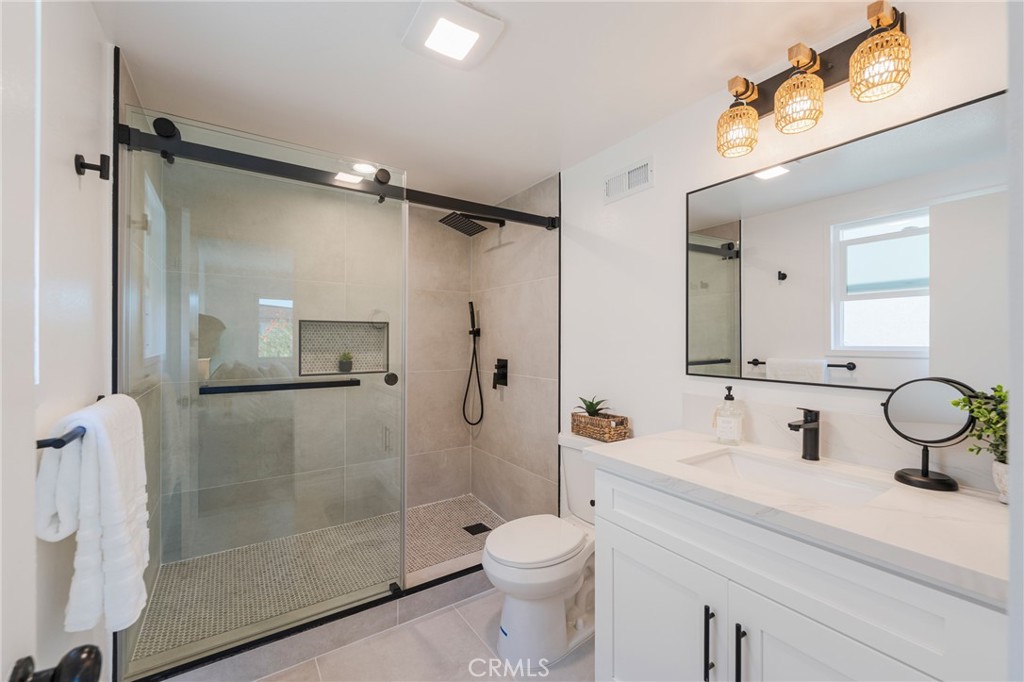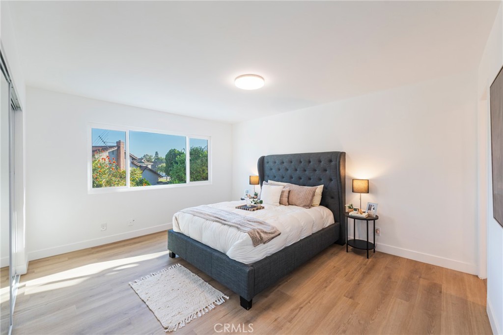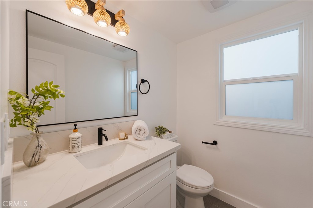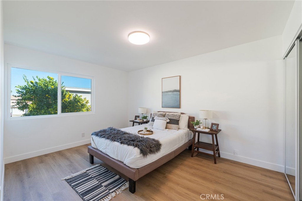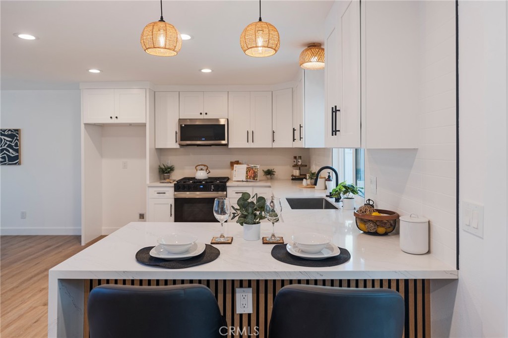 Welcome to this beautifully renovated home with a spacious 3-car garage, where modern design meets luxurious comfort. Located in a highly desirable neighborhood in Cerritos, CA. This stunning property boasts a spacious floor plan with four (4) generously sized bedrooms and various premium features that elevate your living experience. All 2.5 bathrooms have been tastefully renovated with modern mid-century touches. Step inside through a beautiful custom double wood door and be greeted by the inviting ambiance, enhanced by recessed lighting, new whisper white interior/exterior paint, all new windows, and premium laminate wood flooring throughout the home. The heart of this home is the chef-inspired kitchen, complete with gleaming quartz countertops, all-new stainless steel appliances, shaker-style slow-close cabinetry, and a custom peninsula with a waterfall finish perfect for both cooking and entertaining. There is a warm and inviting family room and a separate formal living room, which features a beautiful fireplace, providing a perfect setting for relaxing. This home offers a 3-car garage, providing ample storage or a space for a gym/hobby. Enjoy the private and cozy backyard to host all of your special gatherings. With its thoughtful design, premium finishes, and a fantastic layout, this home is the perfect blend of modern living and comfort. Great location with award-winning ABC school district, don't miss this chance to make this property your DREAM HOME!
