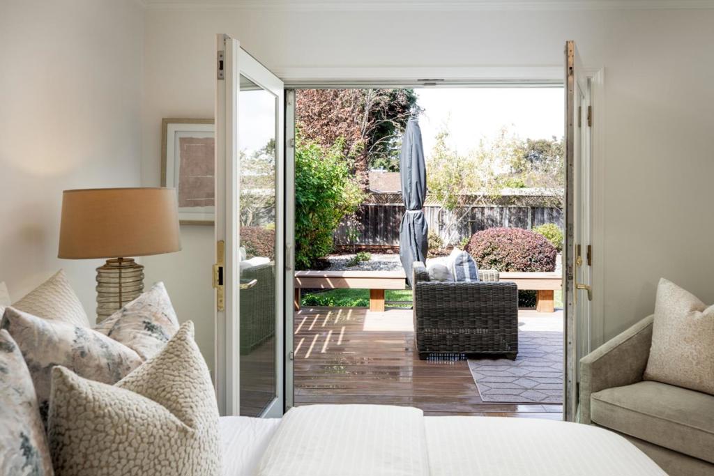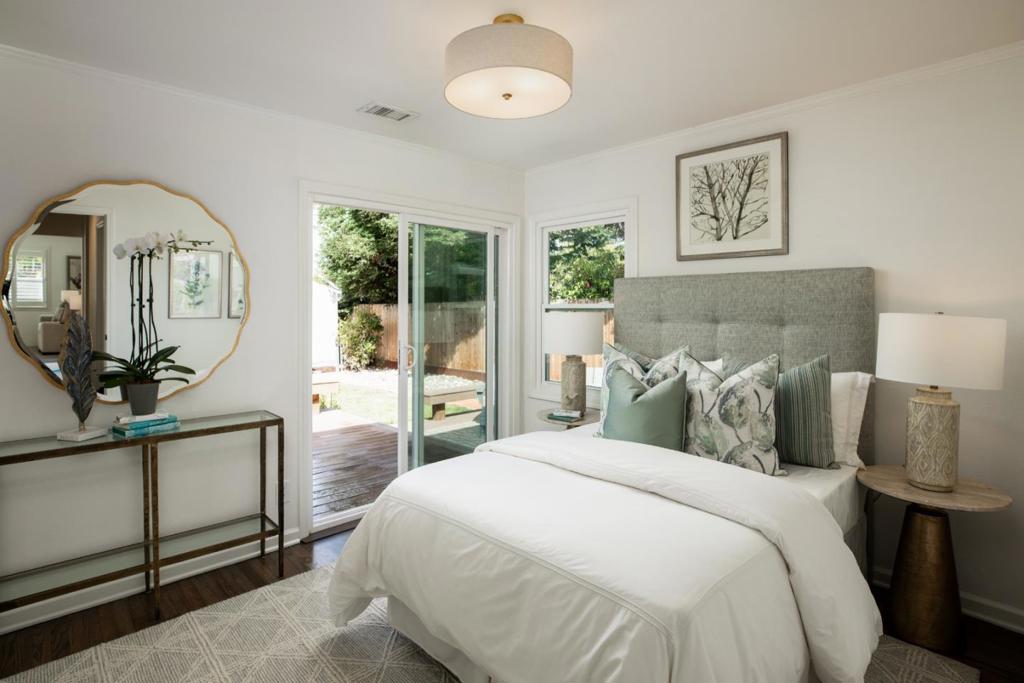 Welcome to your serene retreat a beautifully remodeled single-level home that perfectly blends timeless charm with modern sophistication. Nestled on a quiet, tree-lined street, this wonderful residence offers thoughtfully updated living space, featuring sun-filled rooms, gleaming hardwood floors, elegant crown molding, and a designer kitchen with granite countertops, stainless steel appliances, a 5-burner gas range, under-cabinet lighting, and a wine bar cabinet. The inviting living room showcases a wood-burning fireplace with decorative mantel and stylish wall sconces, while the dining area is accented by a chic chandelier and plantation shutters. Two bedrooms open to the backyard, which boasts an expansive composite deck with built-in seating, a brick-lined patio, lush lawn, utility sink, and a garden shed. Additional highlights include a beautifully updated bathroom, attached garage with washer and dryer, extra-wide driveway, air conditioning, dual-pane windows, and recessed lighting. Set on a level 6,760 sf lot with stunning landscaping and a private front garden, this home offers a seamless indoor-outdoor connection and is ideally located near Marsh Manor, Flood Park, downtown Menlo Park & Palo Alto, Meta, and convenient access to Highway 101 and the Dumbarton Bridge.