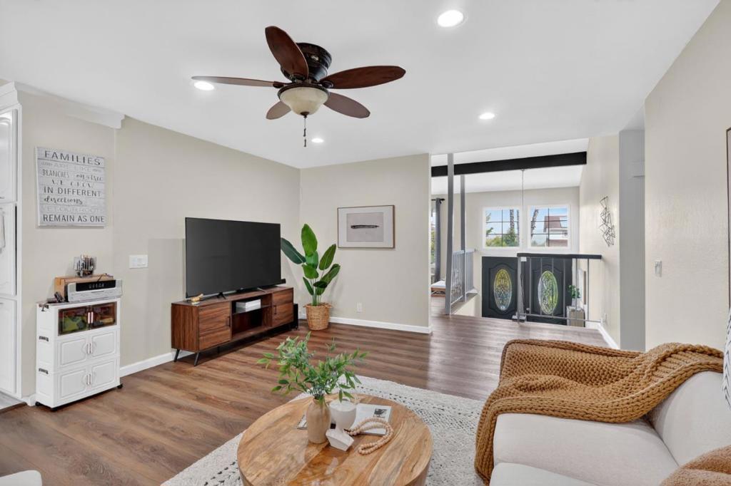 Stunning Home with Flexible Floor Plan, Bay Views with a HUGE 12,793 Sqft LOT. ! Beautifully remodeled with new flooring, kitchen, and baths, this home is filled with natural light and designed for modern living. The inviting living and dining rooms flow into a spacious family room and a bright kitchen featuring quartz countertops, white tile backsplash, and a large window overlooking the backyard. The main level offers a primary suite, two bedrooms, and full bath, plus a bonus room with private outdoor access perfect as a guest suite, office, or rental. Enjoy a backyard built for both fun and relaxation: a covered patio along the entire home, gazebo, basketball area, playground, storage shed, and hillside deck with panoramic Bay & mountain views. Prime location near Coyote Creek Trail, Hellyer Park, shopping, dining, Costco, Oakridge Mall, and with easy access to HWY 101, light rail, and major freeways. A rare blend of comfort, convenience, and lifestyle dont miss this one!
