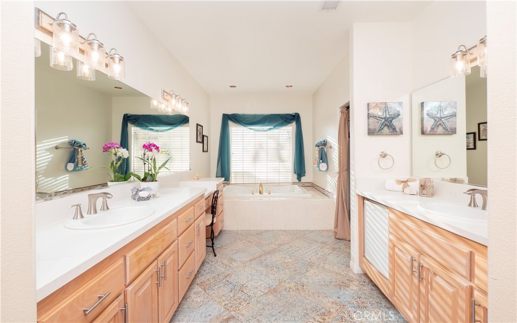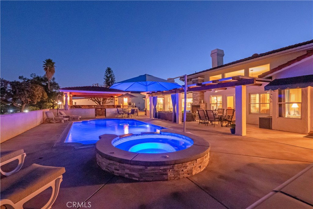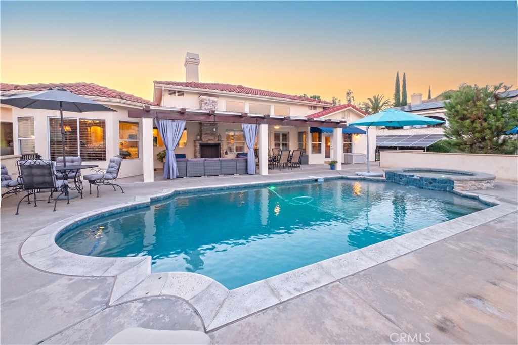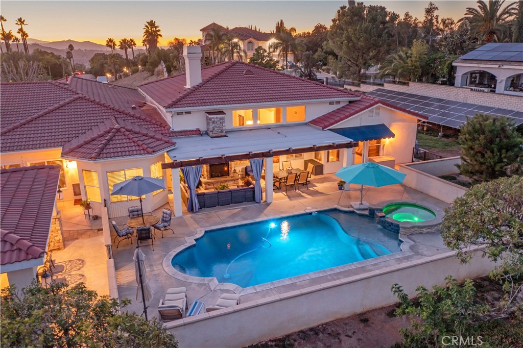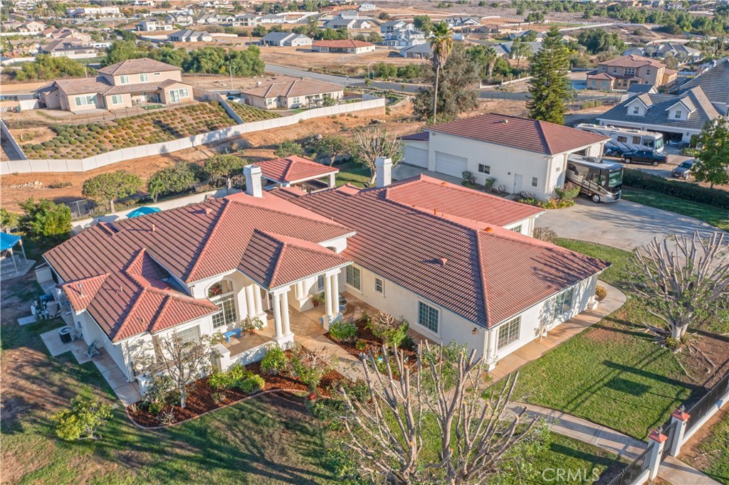 Welcome to your dream home—a beautifully custom-built, single-level residence set on a sprawling 39,000 square foot lot. Enjoy ultimate privacy as the property backs onto an open flood control area with no possibility of future construction. Step inside to discover an expansive open floor plan designed for both comfort and elegance. The home boasts 3,964 square feet of living space, featuring a spacious living room, family room, and formal dining room—all highlighted by stunning vaulted ceilings. Ideal for multi-generational living, two primary bedrooms each offer newly renovated en suite bathrooms, while two guest rooms share a convenient Jack and Jill bathroom. The gourmet kitchen is a chef’s delight, complete with a service island and seamless flow into the family room for informal gatherings. The formal living and dining rooms provide sophisticated spaces for special occasions. Additionally, there is an outdoor fireplace located on the covered patio, providing a cozy gathering space for relaxing in the fresh air. Entertain and relax in your resort-style backyard. The resurfaced saltwater pool and spa invite endless enjoyment, while the newly built outdoor kitchen cabana is perfect for hosting friends and family. Enjoy movie nights with the cabana's projection screen and sound system or unwind in the private gazebo. Every space is thoughtfully designed to enhance your lifestyle and maximize privacy. For your vehicles and hobbies, the property features two attached two-car garages and a remarkable detached 30’x 50’ RV garage complete with a half bathroom and full hook ups. Fully paid solar panels provide sustainable, cost-effective energy for the home. This exceptional property delivers a rare combination of luxury, privacy, and convenience. Enjoy serene living in a quiet neighborhood with open views. Yet, you're just moments away from Riverside's vibrant downtown, Tyler Mall, and a wide array of dining, shopping, and entertainment options. This home is truly a private retreat with every amenity for modern living. ( See property highlights and recent upgrades in supplements )