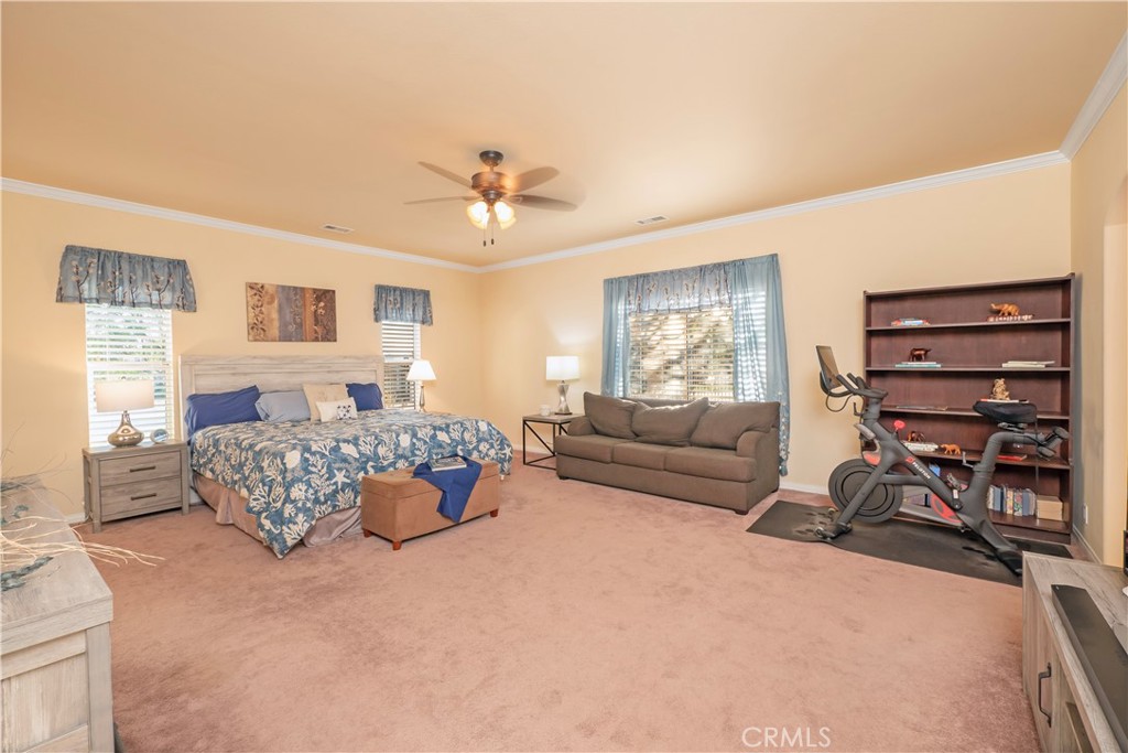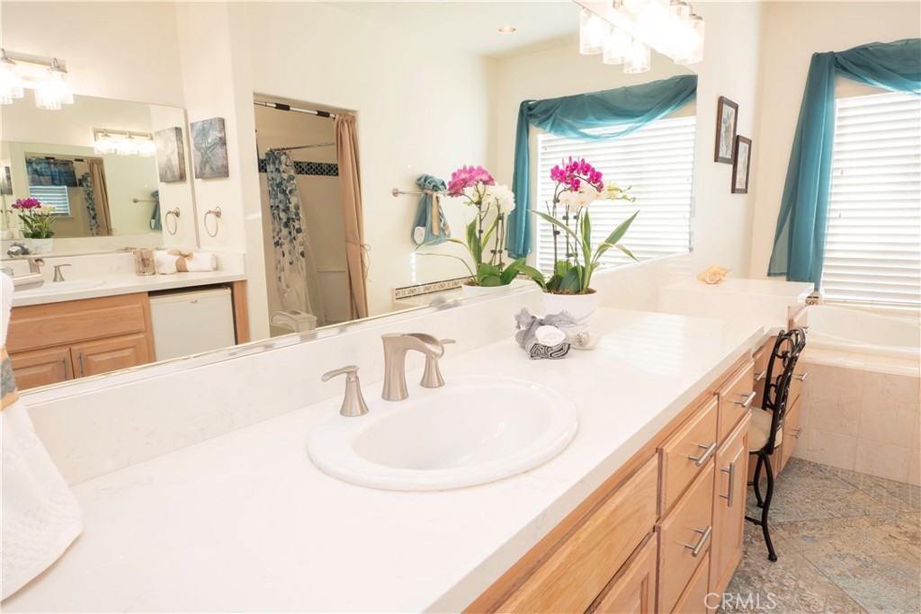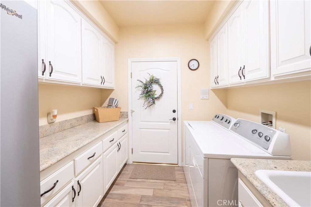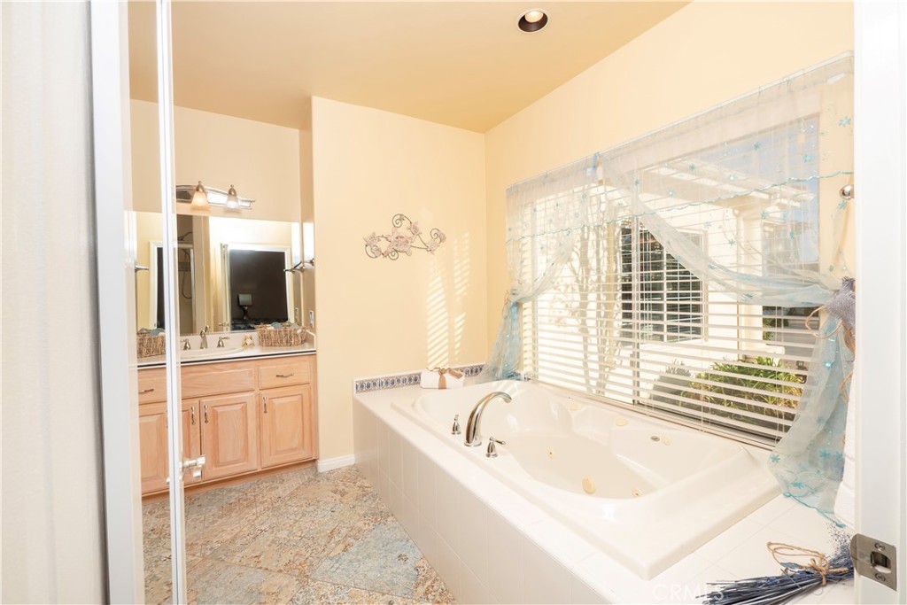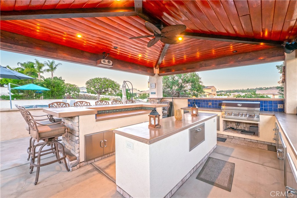 Welcome to your dream home—a beautifully custom-built, single-level residence set on a sprawling 39,000 square foot lot. Enjoy ultimate privacy as the property backs onto an open flood control area with no possibility of future construction. Step inside to discover an expansive open floor plan designed for both comfort and elegance. The home boasts 3,964 square feet of living space, featuring a spacious living room, family room, and formal dining room—all highlighted by stunning vaulted ceilings. Ideal for multi-generational living, two primary bedrooms each offer newly renovated en suite bathrooms, while two guest rooms share a convenient Jack and Jill bathroom. The gourmet kitchen is a chef’s delight, complete with a service island and seamless flow into the family room for informal gatherings. The formal living and dining rooms provide sophisticated spaces for special occasions. Additionally, there is an outdoor fireplace located on the covered patio, providing a cozy gathering space for relaxing in the fresh air. Entertain and relax in your resort-style backyard. The resurfaced saltwater pool and spa invite endless enjoyment, while the newly built outdoor kitchen cabana is perfect for hosting friends and family. Enjoy movie nights with the cabana's projection screen and sound system or unwind in the private gazebo. Every space is thoughtfully designed to enhance your lifestyle and maximize privacy. For your vehicles and hobbies, the property features two attached two-car garages and a remarkable detached 30’x 50’ RV garage complete with a half bathroom and full hook ups. Fully paid solar panels provide sustainable, cost-effective energy for the home. This exceptional property delivers a rare combination of luxury, privacy, and convenience. Enjoy serene living in a quiet neighborhood with open views. Yet, you're just moments away from Riverside's vibrant downtown, Tyler Mall, and a wide array of dining, shopping, and entertainment options. This home is truly a private retreat with every amenity for modern living. ( See property highlights and recent upgrades in supplements )