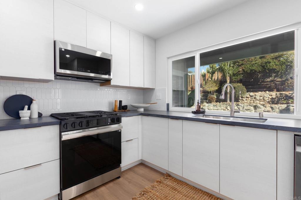 Nestled in the heart of Poway, this beautifully remodeled 3 bedroom, 2 bath home has so much to offer. The interior features modern finishes throughout, including new flooring, recessed lighting, a stunning kitchen with all new appliances and cabinetry, and newly-renovated bathrooms with glass shower doors. Take in the gorgeous backyard views from the primary bedroom and living room, where the over-sized windows and vaulted ceilings flood the space with light. Entertain year-round in the resort-like backyard, where you'll enjoy the heated pool, hot tub and mature landscaping. A large two-car garage and shed provide plenty of space for storage. Located in the highly sought after Poway Unified School District, you'll have easy access to shopping, dining, and top-rated schools. You’re also close to incredible hiking destinations including Iron Mountain Trail and the iconic Potato Chip Rock. This home is truly a gem!