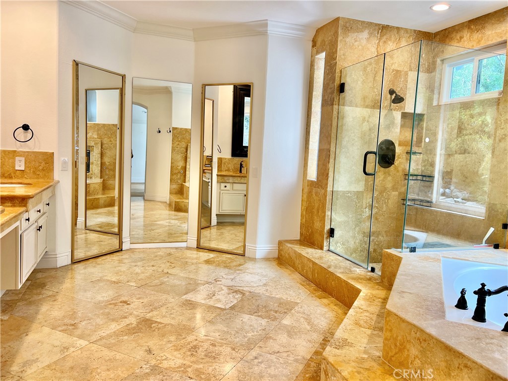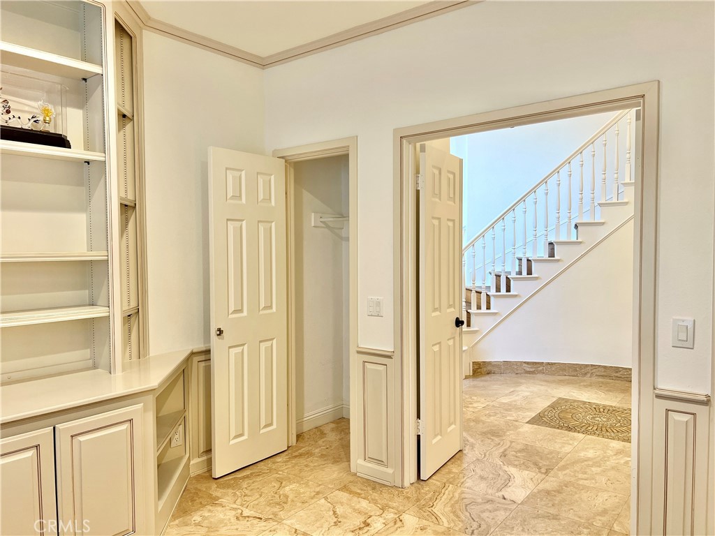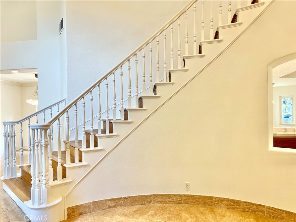 Fabulous 4 bedroom 3 bath home on nearly 1 private acre offered for lease in the Capistrano Royale neighborhood of San Juan Capistrano. 3 car garage with Epoxy flooring, built-in cabinetry, and large driveway, plus gated larger vehicle/RV or boat parking. Impressive custom double door entry hall with romantic curved staircase. Beautiful open front facing formal living room with french doors. Formal dining room with sparkling lighting and french doors leading to backyard. Gorgeous remodeled kitchen with beautiful upgraded cabinetry, 6 burner Wolf range and griddle with Wolf exhaust hood, SubZero refrigerator and SubZero Wine Refrigerator, walk-in pantry, dramatic waterfall center island, sunny breakfast nook, platter sized sink with backyard view, Bosch dishwasher, microwave, and beautiful fixtures and finishes. Family Room with Remote controlled Fireplace is open to the kitchen with french doors leading to backyard lanai. Primary bedroom with backyard views and sitting area retreat. Sumptuous primary bath has two sinks, sit down vanity area, separate glass enclosed shower and big bathtub. Great walk in closet with custom built-ins. Two additional bedrooms with dual vanity bath, plus large bonus room with sink and space for mini-fridge. Downstairs office or bedroom with built in shelving and desk with attached bath. Resort like backyard with river rock salt system pool and huge inspiring trees make it feel like a forested private park. Charming white gazebo serves as a delightful refuge for morning coffee or tea or afternoon reading. Pergola breezeway along the back of the home provides spaces for entertaining and enjoying California's indoor outdoor lifestyle. Dual Zoned Central Air Conditioning and whole house water softener. Community center with pool, spa, bbq, seating, clubhouse, tennis/ pickleball court, lawn, and sand volleyball court surrounded by historic California Sycamore trees. Rental Property Owner pays gardener, pool maintenance, HOA dues, and pest control.