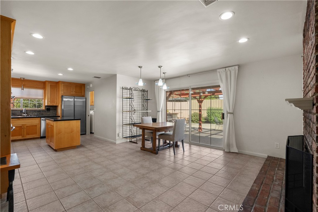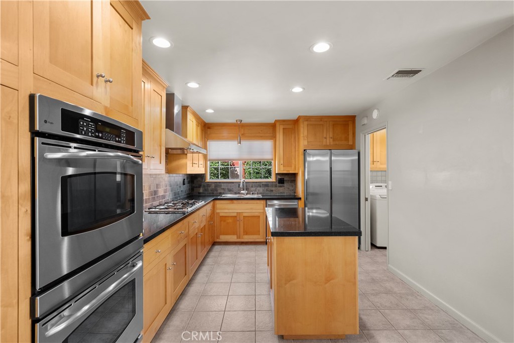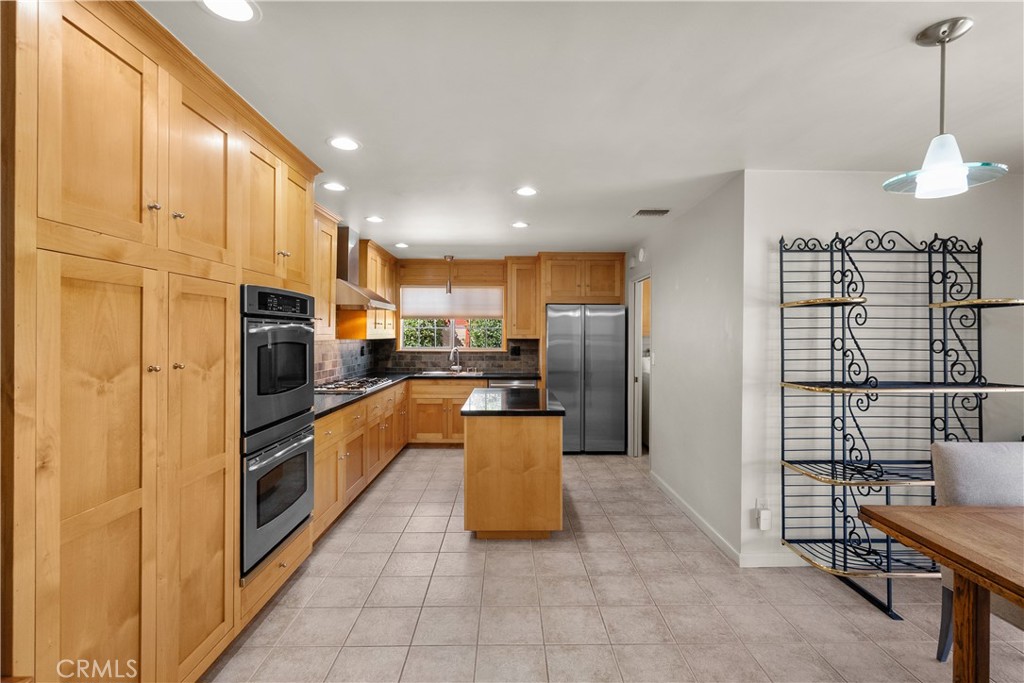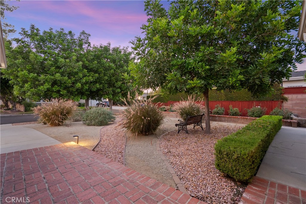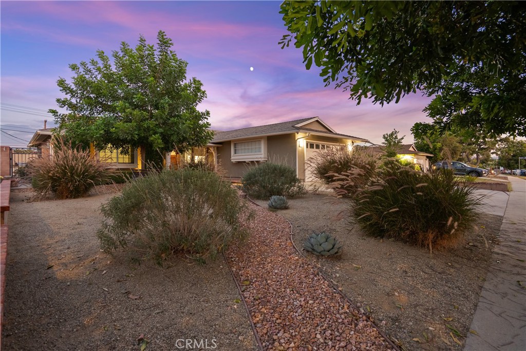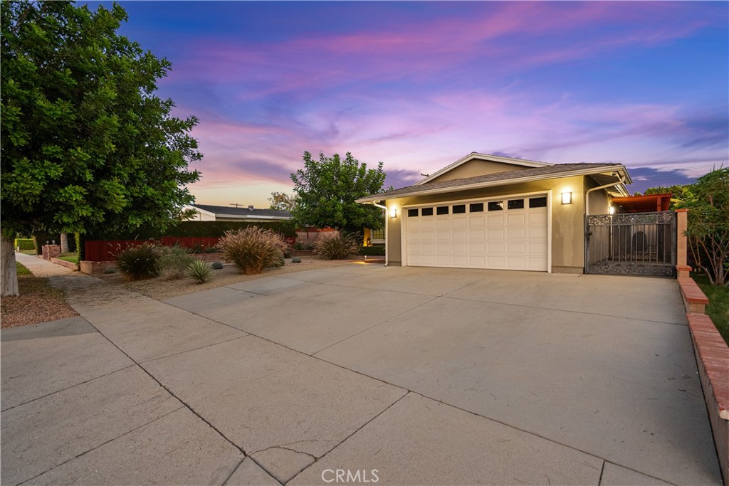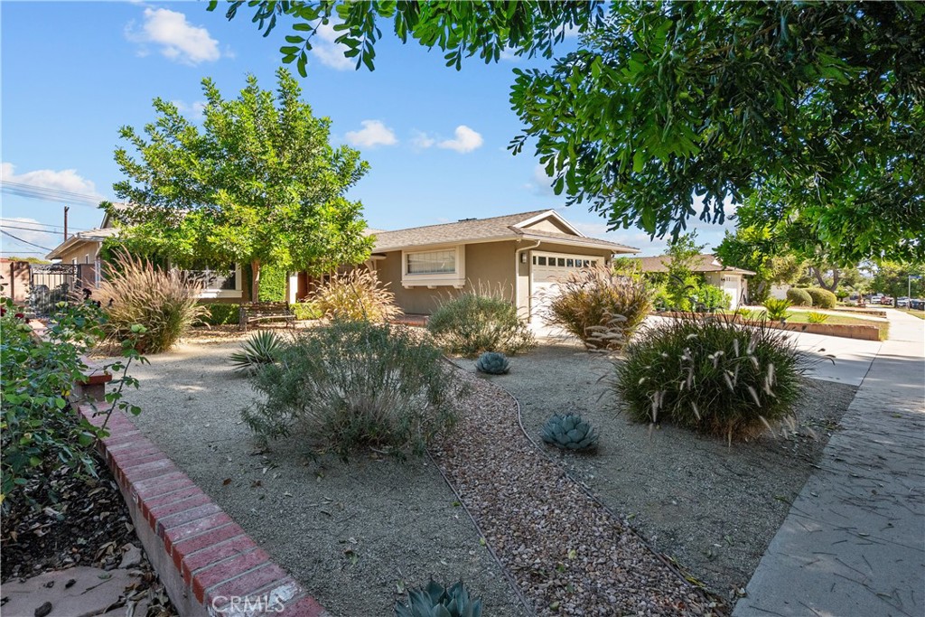Nestled in a sought-after Granada Hills enclave, this residence has been beautifully maintained, offering the perfect blend of vintage character and modern comfort. Situated on a tree-lined street surrounded by a welcoming community of well-kept homes, this property is an ideal setting for family living. The home’s attractive curb appeal and inviting front porch set a warm and welcoming tone. Inside, 1,642 square feet of bright, open living space includes 3 bedrooms and 2 bathrooms, providing ample room for relaxation, entertaining and comfort. At the heart of the home lies the remodeled cook’s kitchen, offering an island, recessed lighting, custom cabinetry with generous storage, granite countertops, and a custom subway tile backsplash. The kitchen is equipped with quality appliances including a double electric oven, gas range with vent hood, dishwasher, and refrigerator. Just off the kitchen, a conveniently located laundry room offers a large walk-in pantry and access to the backyard. The separate dining area is ideal for both casual meals and special gatherings, enhanced by recessed lighting, a stylish contemporary fixture, and a wood-burning fireplace. Sliding glass doors open to the backyard patio, embracing the quintessential California indoor-outdoor lifestyle. The living room is equally inviting, offering recessed lighting, expansive sliding doors that bring in natural light and views of the tranquil backyard. The primary bedroom suite is a private retreat featuring a walk-in closet, built-in cabinetry, recessed lighting, and a remodeled en-suite bathroom with a tiled stall shower and granite-topped vanity. Two additional bedrooms are filled with natural light and include generous closet space, sharing a full hallway bathroom complete with a tiled shower-over-tub and a spacious vanity. Step outside into your own backyard oasis. The beautifully landscaped yard includes a covered patio and built-in BBQ area, ideal for dining, entertaining, or quiet relaxation. Facing east, the yard is bathed in morning sun and enjoys cooling afternoon shade, creating a comfortable environment throughout the day. The two-car garage offers abundant built-in storage, a 50-amp sub panel, a roll-up garage door, and an automatic door opener. Additional updates throughout the home include a composition roof, central air and heating, dual-pane windows, copper plumbing, rain gutters, and a storage shed—bringing modern convenience to this classic mid-century residence.