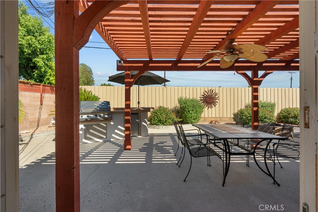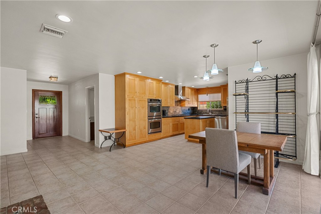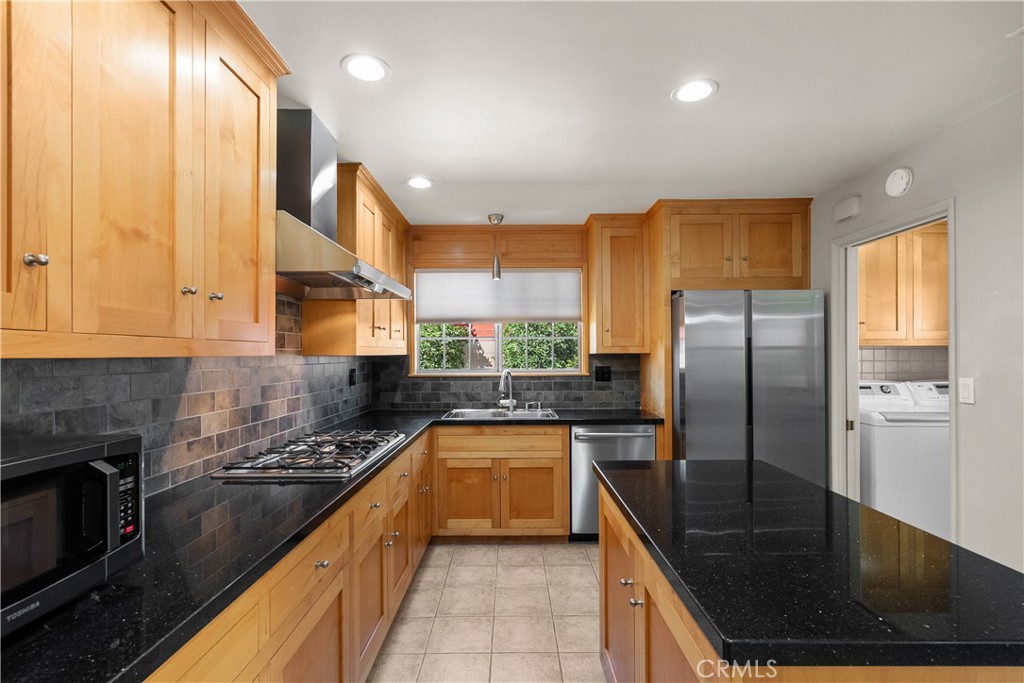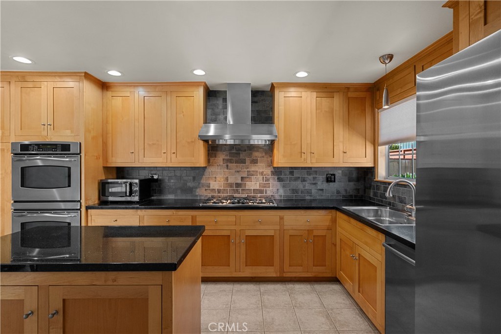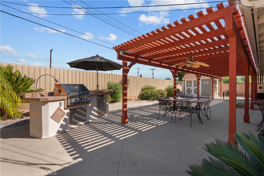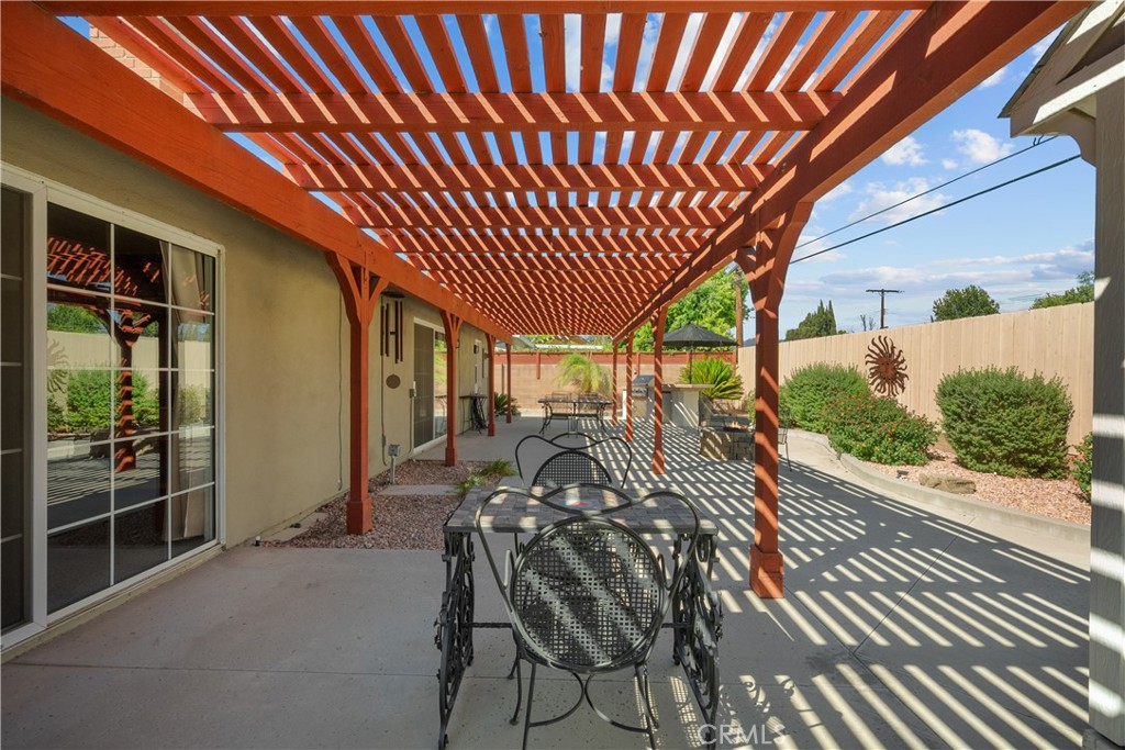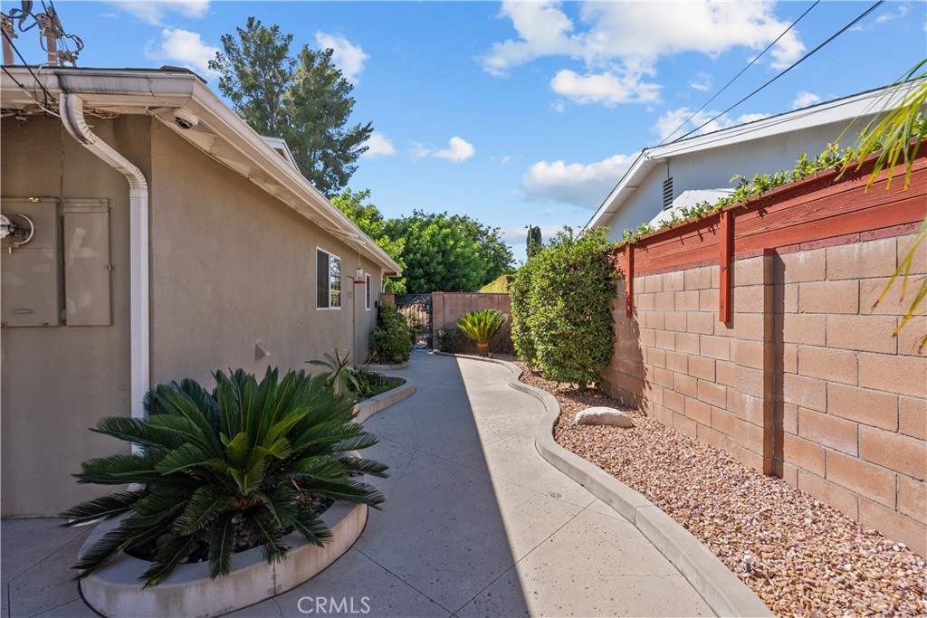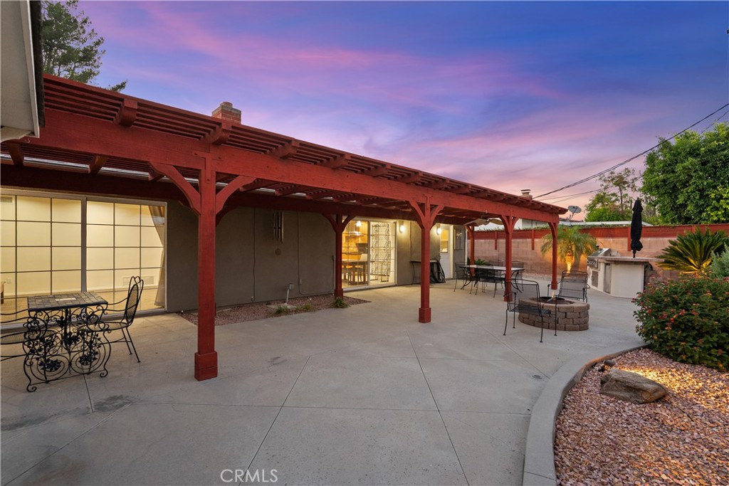 Nestled in a sought-after Granada Hills enclave, this residence has been beautifully maintained, offering the perfect blend of vintage character and modern comfort. Situated on a tree-lined street surrounded by a welcoming community of well-kept homes, this property is an ideal setting for family living. The home’s attractive curb appeal and inviting front porch set a warm and welcoming tone. Inside, 1,642 square feet of bright, open living space includes 3 bedrooms and 2 bathrooms, providing ample room for relaxation, entertaining and comfort. At the heart of the home lies the remodeled cook’s kitchen, offering an island, recessed lighting, custom cabinetry with generous storage, granite countertops, and a custom subway tile backsplash. The kitchen is equipped with quality appliances including a double electric oven, gas range with vent hood, dishwasher, and refrigerator. Just off the kitchen, a conveniently located laundry room offers a large walk-in pantry and access to the backyard. The separate dining area is ideal for both casual meals and special gatherings, enhanced by recessed lighting, a stylish contemporary fixture, and a wood-burning fireplace. Sliding glass doors open to the backyard patio, embracing the quintessential California indoor-outdoor lifestyle. The living room is equally inviting, offering recessed lighting, expansive sliding doors that bring in natural light and views of the tranquil backyard. The primary bedroom suite is a private retreat featuring a walk-in closet, built-in cabinetry, recessed lighting, and a remodeled en-suite bathroom with a tiled stall shower and granite-topped vanity. Two additional bedrooms are filled with natural light and include generous closet space, sharing a full hallway bathroom complete with a tiled shower-over-tub and a spacious vanity. Step outside into your own backyard oasis. The beautifully landscaped yard includes a covered patio and built-in BBQ area, ideal for dining, entertaining, or quiet relaxation. Facing east, the yard is bathed in morning sun and enjoys cooling afternoon shade, creating a comfortable environment throughout the day. The two-car garage offers abundant built-in storage, a 50-amp sub panel, a roll-up garage door, and an automatic door opener. Additional updates throughout the home include a composition roof, central air and heating, dual-pane windows, copper plumbing, rain gutters, and a storage shed—bringing modern convenience to this classic mid-century residence.