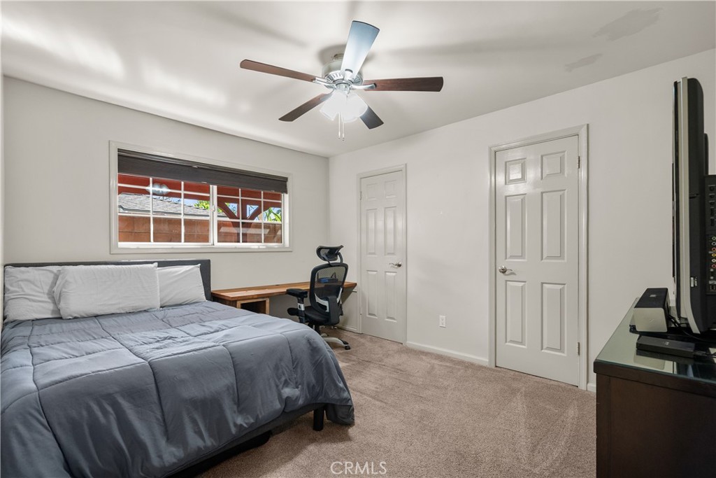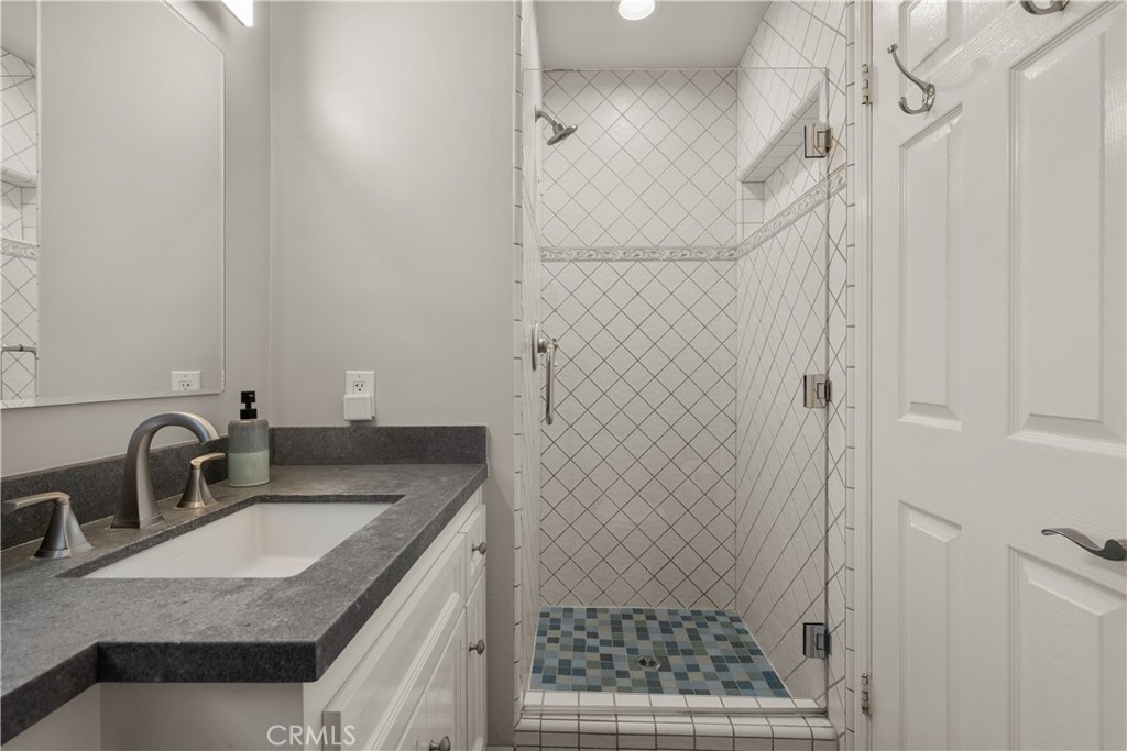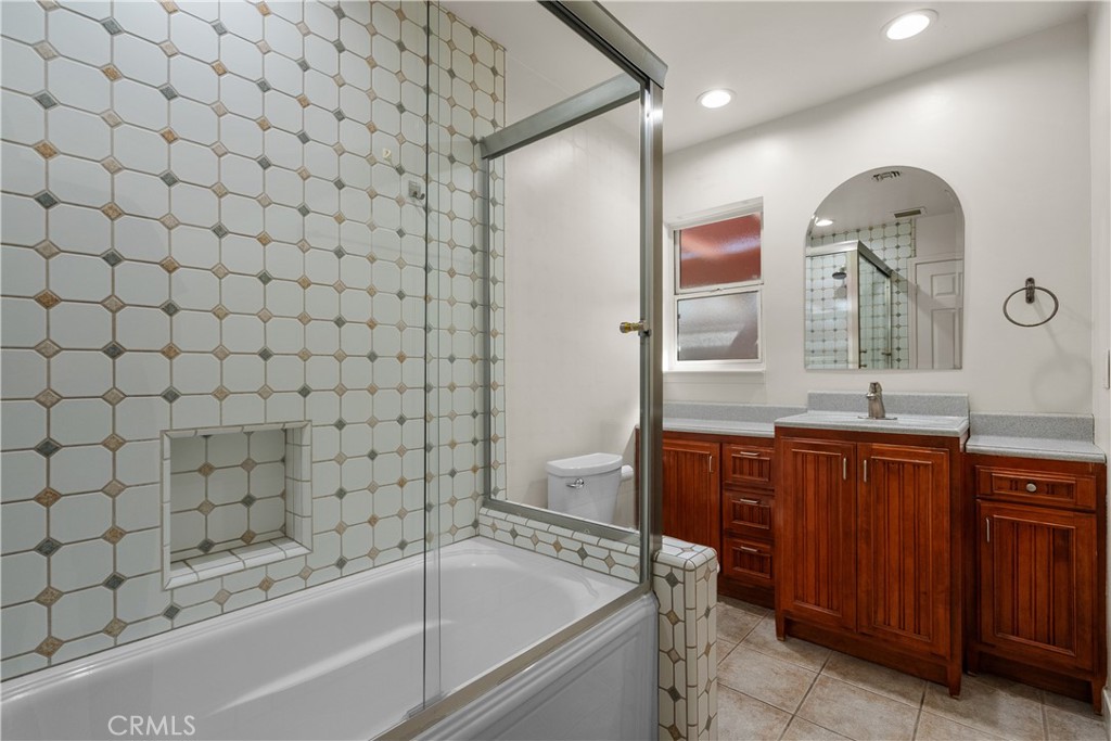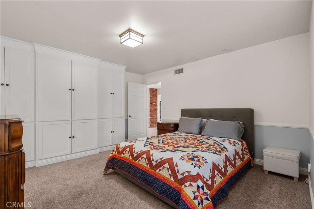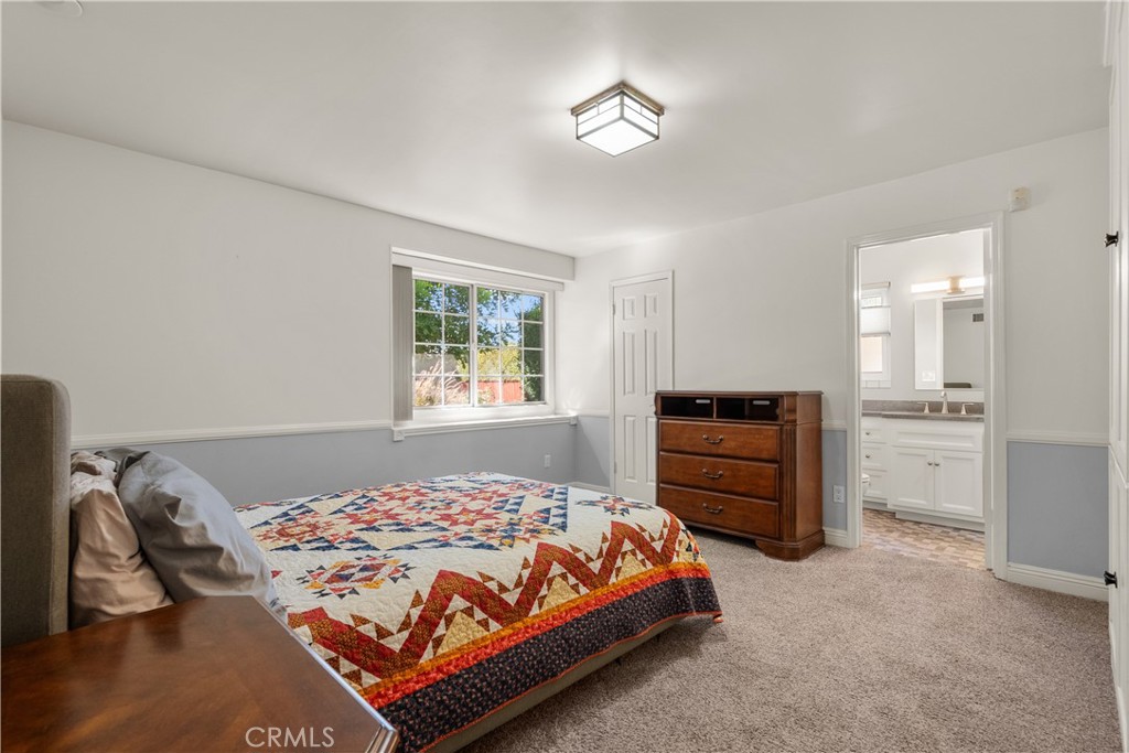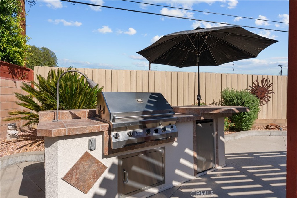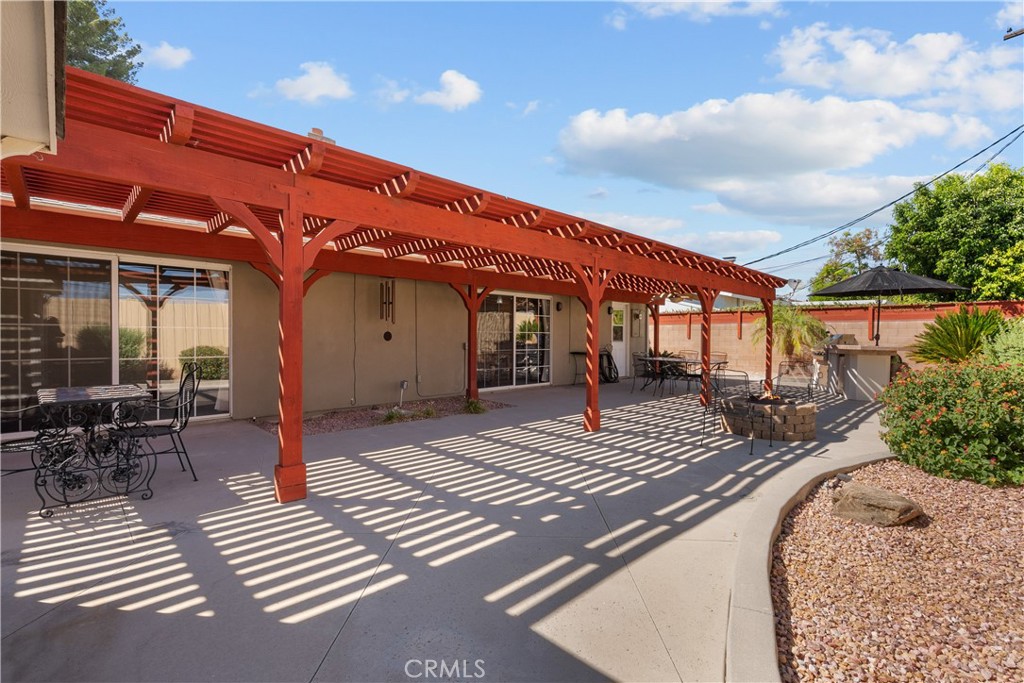 Nestled in a sought-after Granada Hills enclave, this residence has been beautifully maintained, offering the perfect blend of vintage character and modern comfort. Situated on a tree-lined street surrounded by a welcoming community of well-kept homes, this property is an ideal setting for family living. The home’s attractive curb appeal and inviting front porch set a warm and welcoming tone. Inside, 1,642 square feet of bright, open living space includes 3 bedrooms and 2 bathrooms, providing ample room for relaxation, entertaining and comfort. At the heart of the home lies the remodeled cook’s kitchen, offering an island, recessed lighting, custom cabinetry with generous storage, granite countertops, and a custom subway tile backsplash. The kitchen is equipped with quality appliances including a double electric oven, gas range with vent hood, dishwasher, and refrigerator. Just off the kitchen, a conveniently located laundry room offers a large walk-in pantry and access to the backyard. The separate dining area is ideal for both casual meals and special gatherings, enhanced by recessed lighting, a stylish contemporary fixture, and a wood-burning fireplace. Sliding glass doors open to the backyard patio, embracing the quintessential California indoor-outdoor lifestyle. The living room is equally inviting, offering recessed lighting, expansive sliding doors that bring in natural light and views of the tranquil backyard. The primary bedroom suite is a private retreat featuring a walk-in closet, built-in cabinetry, recessed lighting, and a remodeled en-suite bathroom with a tiled stall shower and granite-topped vanity. Two additional bedrooms are filled with natural light and include generous closet space, sharing a full hallway bathroom complete with a tiled shower-over-tub and a spacious vanity. Step outside into your own backyard oasis. The beautifully landscaped yard includes a covered patio and built-in BBQ area, ideal for dining, entertaining, or quiet relaxation. Facing east, the yard is bathed in morning sun and enjoys cooling afternoon shade, creating a comfortable environment throughout the day. The two-car garage offers abundant built-in storage, a 50-amp sub panel, a roll-up garage door, and an automatic door opener. Additional updates throughout the home include a composition roof, central air and heating, dual-pane windows, copper plumbing, rain gutters, and a storage shed—bringing modern convenience to this classic mid-century residence.