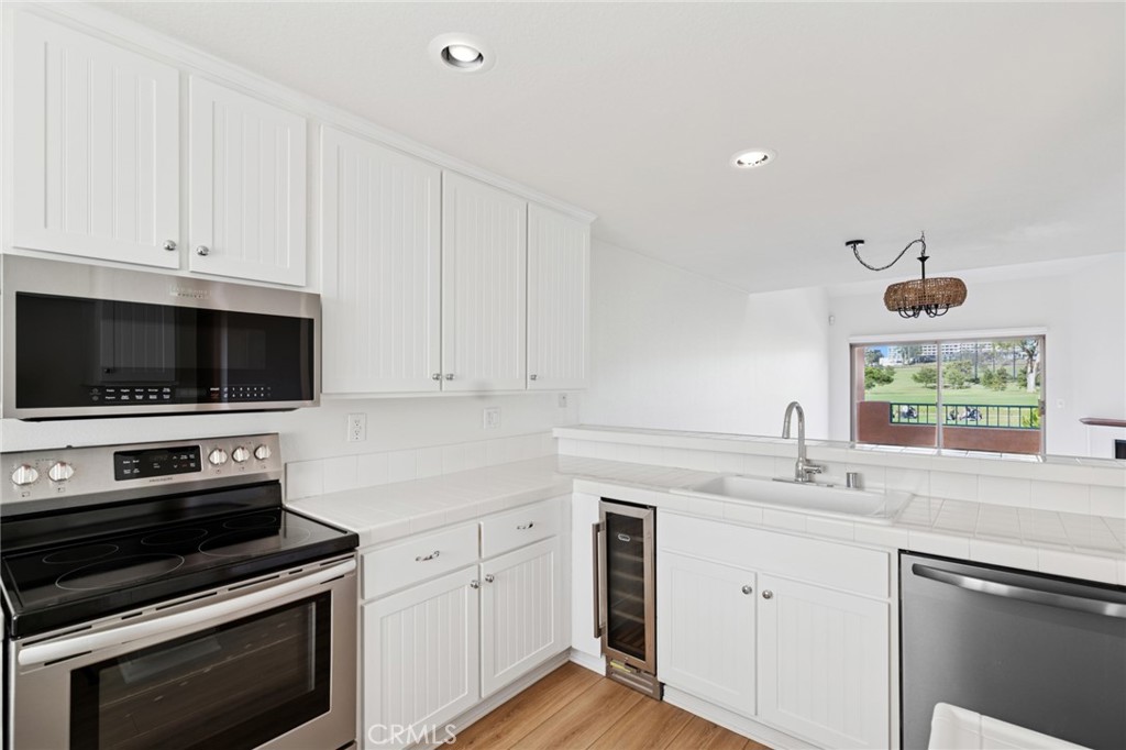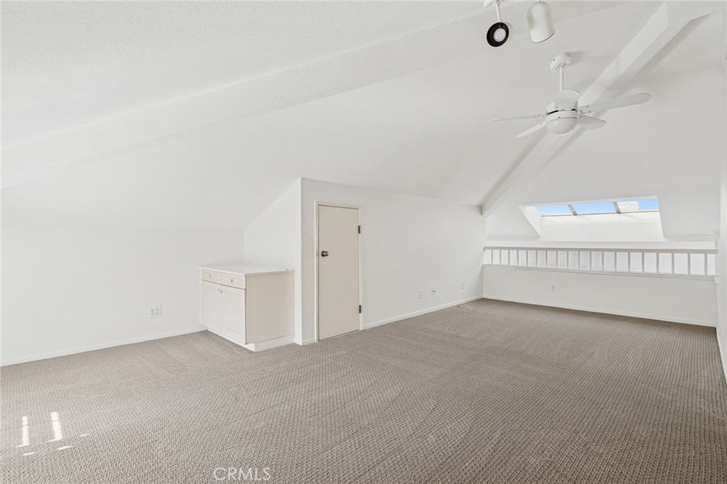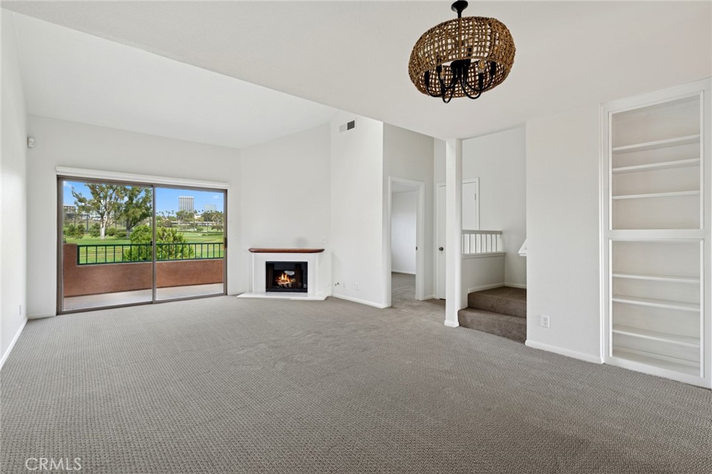 Located in the gated Villa Point community, this upper-level 2-bedroom, 2-bathroom home with a loft combines comfort, functionality, and beautiful golf course views. Filled with natural light, the open living area features new carpet and laminate flooring, a cozy fireplace, and sliding doors that open to a private balcony—perfect for relaxing or entertaining. The kitchen includes tile countertops, an electric cooktop, a mini wine fridge, and a convenient breakfast bar that opens to the living space. The primary suite offers dual closets, dual sinks, and direct balcony access. Upstairs, the loft provides a versatile space for a home office or den, complete with a built-in desk and cabinetry. Additional highlights include in-unit laundry, ample storage, central A/C, and a one-car garage. Residents of Villa Point enjoy resort-style amenities, including pools, spas, and barbecue areas, all just minutes from Fashion Island, Corona del Mar, and Newport’s beautiful beaches.