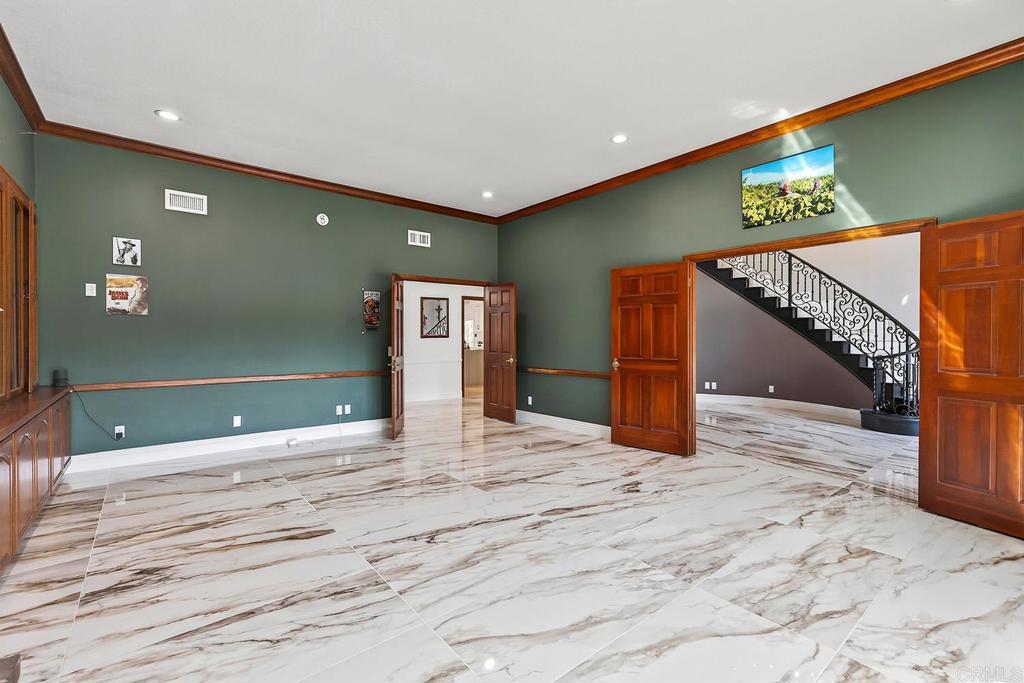 Welcome to a timeless 10-acre estate along Temecula’s famed De Portola Wine Trail — a private and gated retreat where Wine Country living meets elegance, tranquility, and endless opportunity. Beyond the beautiful custom entry gate, you’re greeted by lush landscaping, a circular driveway with fountain, and sweeping panoramic views that stretch across vineyards, valleys, and surrounding mountains. Every detail of this 10,000 SQ FT residence was designed to offer beauty, comfort, and connection. Inside, the home offers grand living and entertaining areas, including two great rooms (previously used as a game room and ballroom), a formal dining room, library, and an upgraded gourmet kitchen with Viking appliances perfectly suited for memorable gatherings. A private elevator leads to the second story, which hosts a sauna, the serene primary suite with dual cedar-lined walk-in closets and a luxurious spa bath, as well as two secondary bedrooms with private en-suite bathrooms. Fine finishes are showcased throughout — from the grand custom entry doors and marble floors to the sweeping staircase crowned by a commanding chandelier, and the warmth of seven fireplaces that create an inviting ambiance throughout the home. Outdoors, enjoy your own resort-style amenities — a newly replastered Olympic-size pool, spa, multiple entertaining spaces, a private nine-hole golf course, and an orchard filled with mature fruit trees. The property also features a picturesque pond, currently drained but ready to be restored to its tranquil beauty. The separate guest quarters above the four-car garage offer two bedrooms and two full baths with space for a sitting area or kitchenette— ideal for guests, extended family, or multi-generational living. With over 10 acres of usable land, this property qualifies for a winery permit and offers potential for an equestrian estate, bed and breakfast, event space, or private vineyard. Priced to sell, this extraordinary estate represents a rare opportunity to create your own legacy in Temecula Wine Country — and enjoy the peace of wide-open spaces just minutes from local wineries, dining, and shopping.