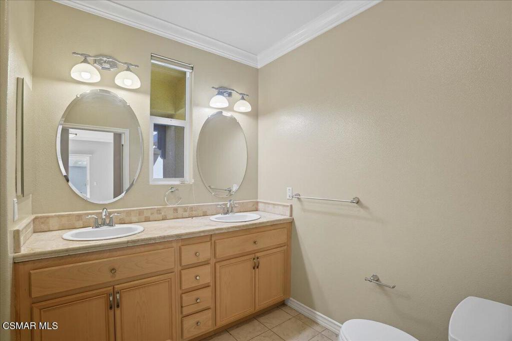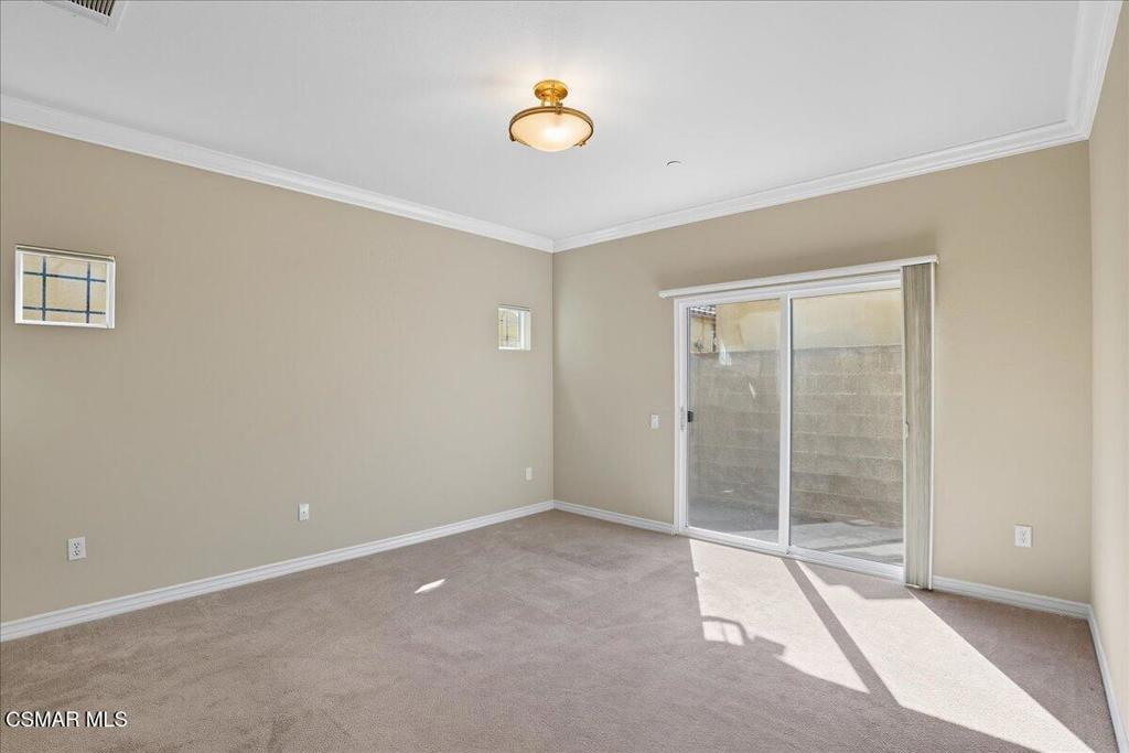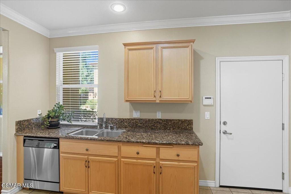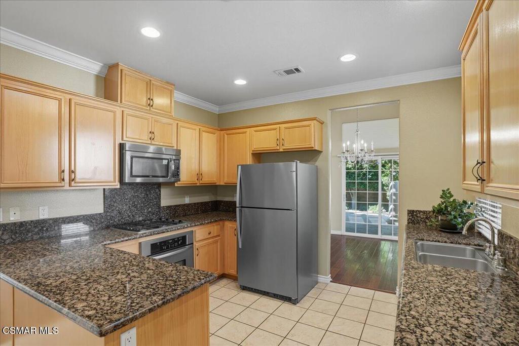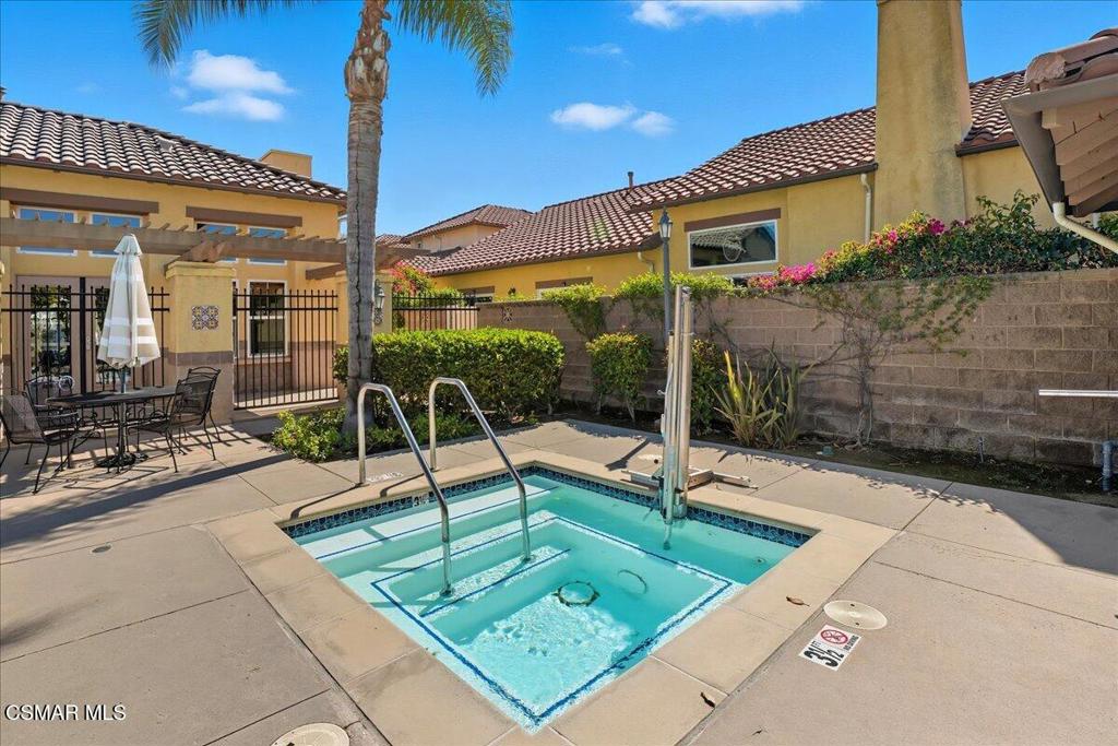 Here is a great opportunity to see a meticulously maintained and upgraded home in a quiet location. One of the largest single-story homes in a senior complex (55 & up) in the City. The home is designed for casual senior living with no steps into the home and a walk-in shower in the primary bathroom with dual sinks. As you enter the home, you will notice beautiful hardwood floors in the hallways, an expansive living room with a decorative fireplace, and formal dining room. High ceilings in the living room and formal dining room makes the home fee much larger than 1,537 sq. ft. Crown molding in all rooms provides a touch of elegance. The open kitchen has built-in stainless-steel appliances, granite counters and recessed lighting. The laundry area is indoors concealed by bi-fold doors. Premium Hunter Douglas window and sliding glass door coverings. From the living room you will see a large covered patio area ensconced by a line of beautiful trees that gives the feeling of a small private compound. This 36-home complex has the feel of an Italian villa. The 2-car garage contains quality built in cabinetry and provides direct access into the home.The Paseo de las Flores senior community includes a swimming pool and an in-ground spa, two large clubhouses, and one with a full kitchen.The Santa Susana Community Park with recreation rooms and a neighborhood shopping center with a supermarket and restaurants nearby.