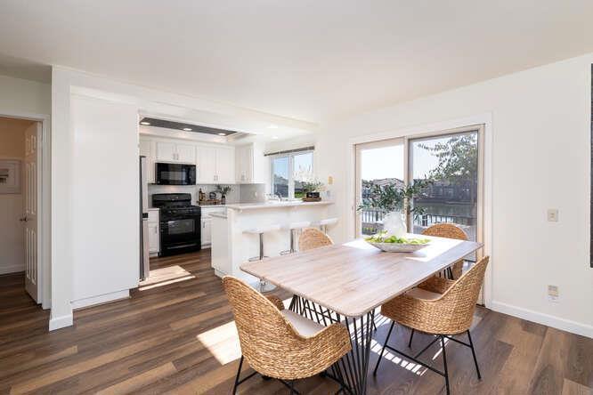 Choose your own adventure with your Cape Cod charmer! Whether youre dreaming of peaceful evenings by the water or lively weekends with friends and family, 756 Newport Circle is the perfect place to make it happen. Sheltered charming side patio and spacious decked backyard invite gatherings of all sizes. Sophistication from the top with soaring beamed ceilings and to the bottom with beautiful wood floors combine to create a warm, dramatic backdrop for your personal style. Bright, updated kitchen features modern appliances and a handy pass-through windowideal for easy entertaining. Retreat to the large primary suite with dazzling water views (and even catch PAC-12 Rowing teams glide by), or get creative in the versatile second bedroom with its built-in desk and Murphy bed. Enjoy the inviting private dock, take a dip in the HOA pool, and make the most of life by the waterjust moments from Highway 101, El Camino, shopping, and dining.