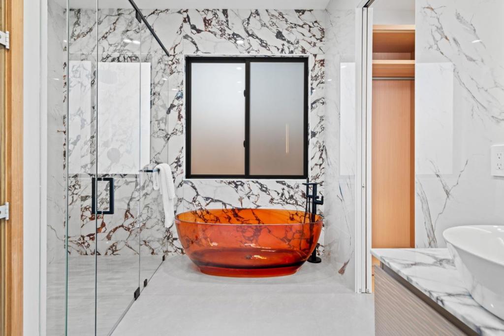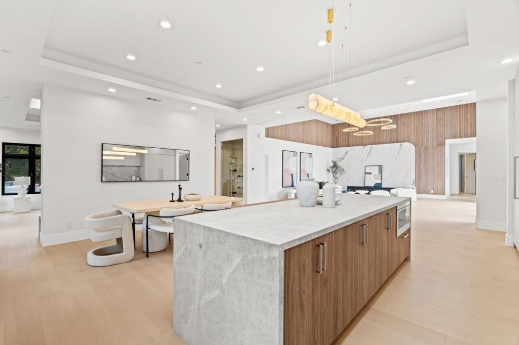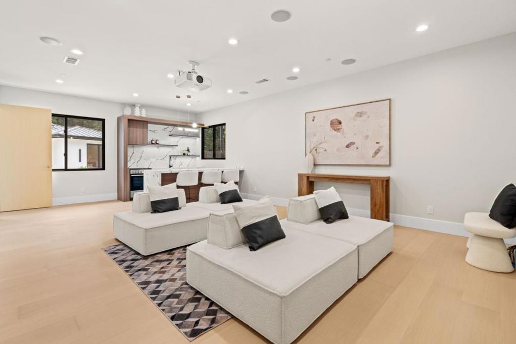 Welcome to an exceptional quality home with top of the line finishes. Admire the drama of the 14 feet high ceiling in the living room. Enjoy your in-and-out living through 10 feet high sliding doors. This home is an entertainers delight with a state of the art home theater and stylish bar. The luxuriously appointed primary suite includes a soaking tub and a dry sauna. The sleek and modern kitchen with Wolf appliances and quartzite island is a delight to behold and enjoy. This smart home has everything you would dream of in a new home and more!