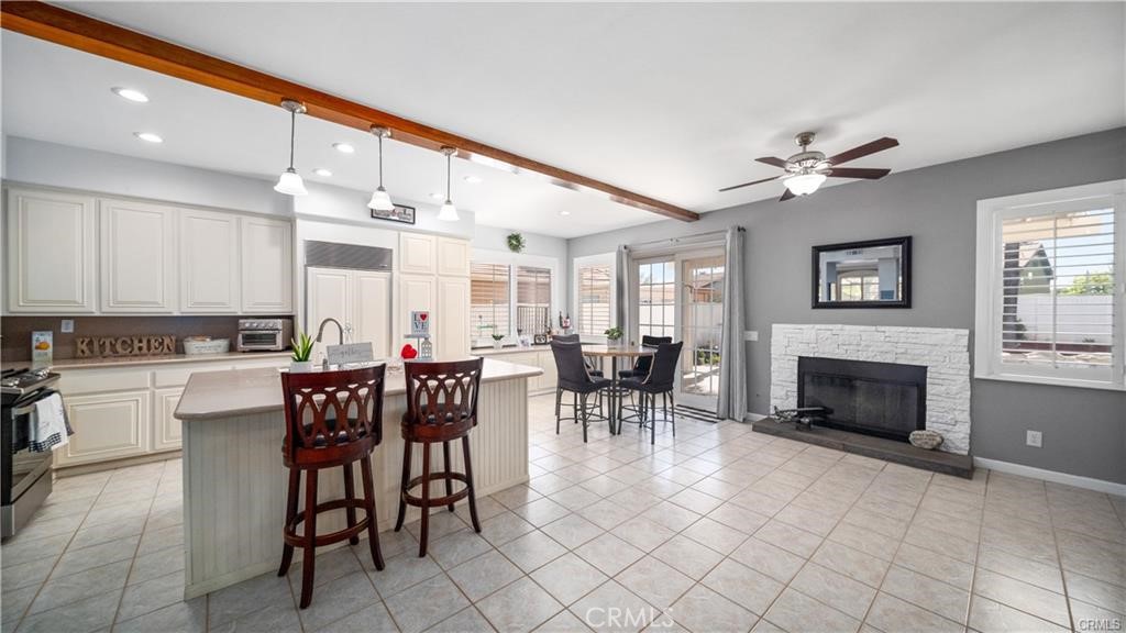 Welcome to your dream home! This beautifully upgraded 4-bedroom, 3-bath residence offers an open, inviting layout with a spacious bonus room—perfect for a home office, game room, or private retreat. Throughout the home, you’ll find custom window shutters, dual-zone central AC, and a cozy gas fireplace that create the perfect blend of comfort and style. The chef’s kitchen is the heart of the home, featuring a massive island with Corian countertops, a Sub-Zero refrigerator, brand-new stainless steel appliances, and a built-in water filtration system—ideal for entertaining and everyday living. Upstairs, unwind in the luxurious primary suite, complete with a private lounge area, a large balcony with sweeping mountain views, and an elegant en-suite bath offering dual sinks, a glass-enclosed shower, and a relaxing soaking tub. Step outside to your own private oasis—a resort-style backyard with a sparkling pool and rock slide, a soothing spa, and plenty of space for gatherings under the California sun. Additional features include a 3-car garage and an oversized driveway with ample parking for guests or recreational vehicles. Homes like this don’t come around often—schedule your private showing today and experience the beauty of Copper Canyon living for yourself!
