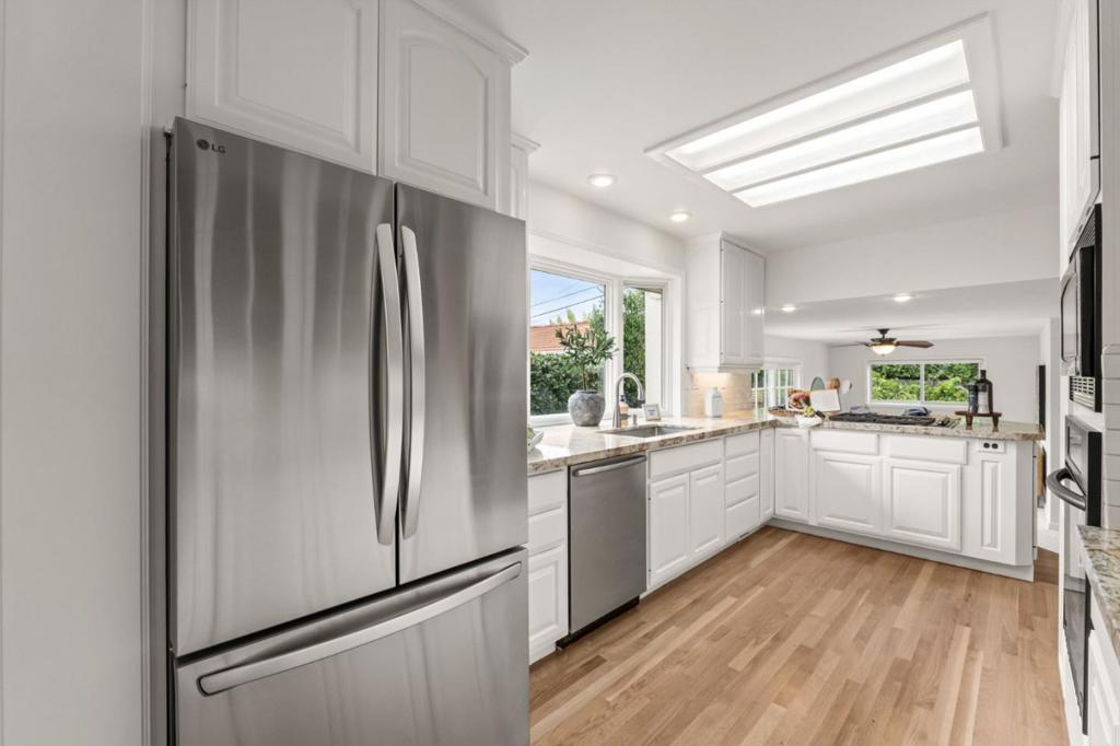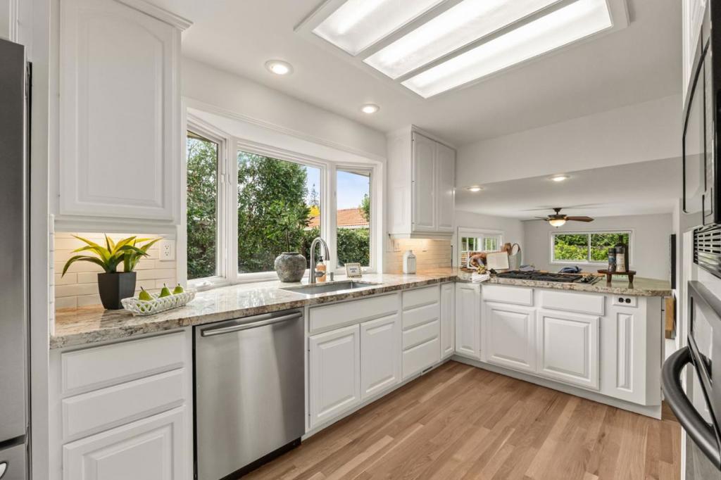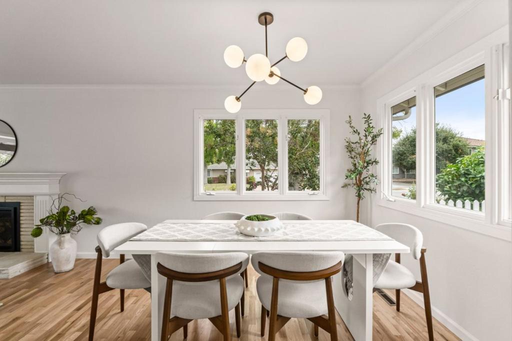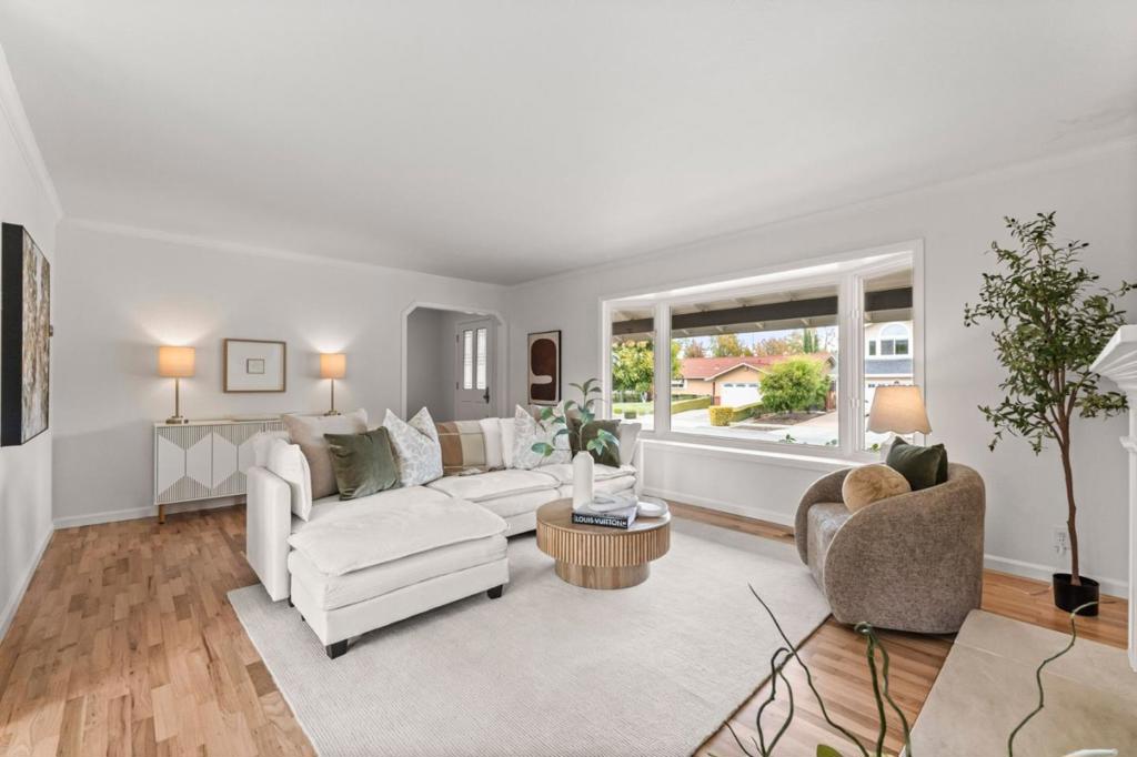 As one of the largest residences in the neighborhood, this expansive 5-bedroom, 3-bath home offers exceptional flexibility and comfort. Situated on a corner lot, enjoy elevated neighborhood views and custom landscaping. Inside, a bright living room with a gas fireplace sets the stage for gatherings, while the formal dining room provides the backdrop for memorable meals. The dining area flows into the updated kitchen featuring electric oven, gas cooktop, garden window, and abundant cabinetry and counter space. The breakfast bar opens to the family room, making this the heart of the home - ideal for holidays filled with food, laughter, and music. The main level also includes a full bath, laundry room, and under-stair storage. Upstairs, the primary suite features hardwood floors and a walk-in closet. The hall bath with soaking tub serves four additional bedrooms, perfect for guests, a home office, or cozy library. The backyard offers lawn space, BBQ patio, garden, and sparkling pool and spa. Located in W San Jose, this home is close to top Silicon Valley employers and commute routes. Nearby parks include McClellan Ranch, Stevens Creek County Park, and Fremont Older. Everyday conveniences include Westgate Shopping Center, Target, Trader Joes, and the upcoming T&T Supermkt and Costco.