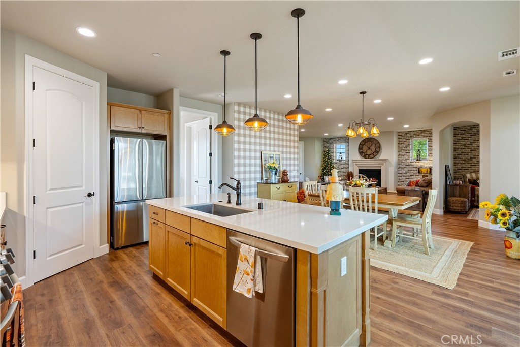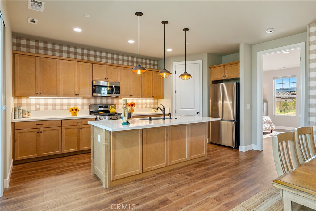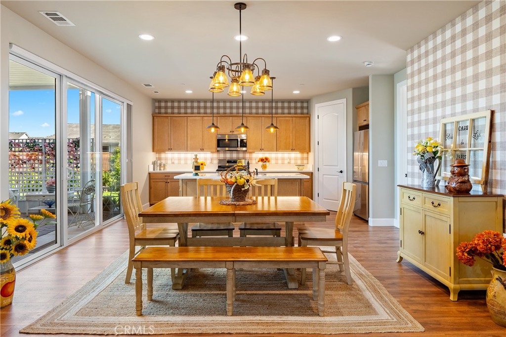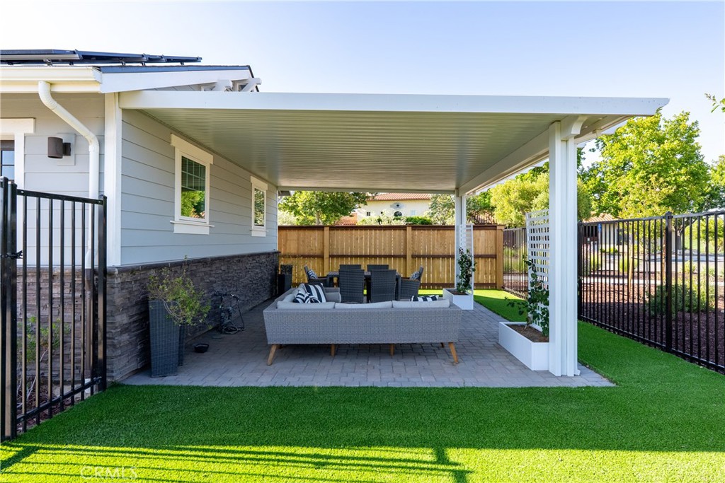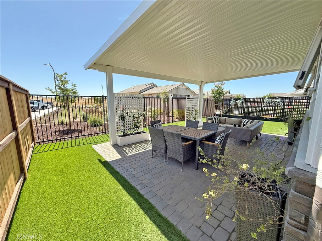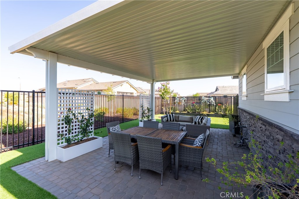 Your dream home awaits, in Vintage at River Oaks! This beautifully upgraded, professionally decorated residence is truly move-in ready. One of only a couple of 'Geneseo' models in Vintage @ River Oaks, this home strikes a perfect balance of size, value and convenience, with just over 1,700 SqFt of thoughtfully designed living area. The owner has made a significant investment into upgrading this home.... both inside and out. Gorgeous, low maintenance landscaping covers every inch of the site, providing inviting spaces for entertaining friends and family. Two custom patio awnings provide shaded places to relax and enjoy the wine country lifestyle so many only dream of. Views to the east look out to acres of rolling vineyards, while views to the west from the covered front porch will allow you to take in the sunset views. Inside, you'll feel like you're in the model home, thanks to the tasteful appointments in every room. The den is a welcome retreat and would make a great home office (or could easily be converted back to the original 3rd bedroom - see floorplan). Custom window coverings, flooring and wall coverings make the interior feel like a million dollars! You'll love the large walk-in pantry in the island kitchen, and the equally impressive walk-in closet in the primary bedroom. And be sure to notice the zero-threshold walk-in shower, with upgraded tile all the way to the 9' ceiling. There really are lovely upgrades and extras everywhere you look! You'll also appreciate the OWNED solar (providing zero use electric bills), and the extra deep driveway - the envy of everyone in the neighborhood! This special home has one more feature that you won't find at even one other home in this 142 lot development - an oversized, 'island' lot! At just over 7,500SF, the lot is already one of the largest in Vintage. But it is the fact that this lot has no adjoining lot lines with neighboring homes that makes it truly unique. And you can tell all your friends you 'live on an island' (LOL)! This home has been priced to sell quickly! Don't miss your opportunity as you may never find another one quite like this!