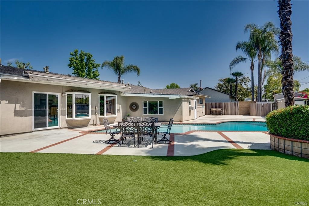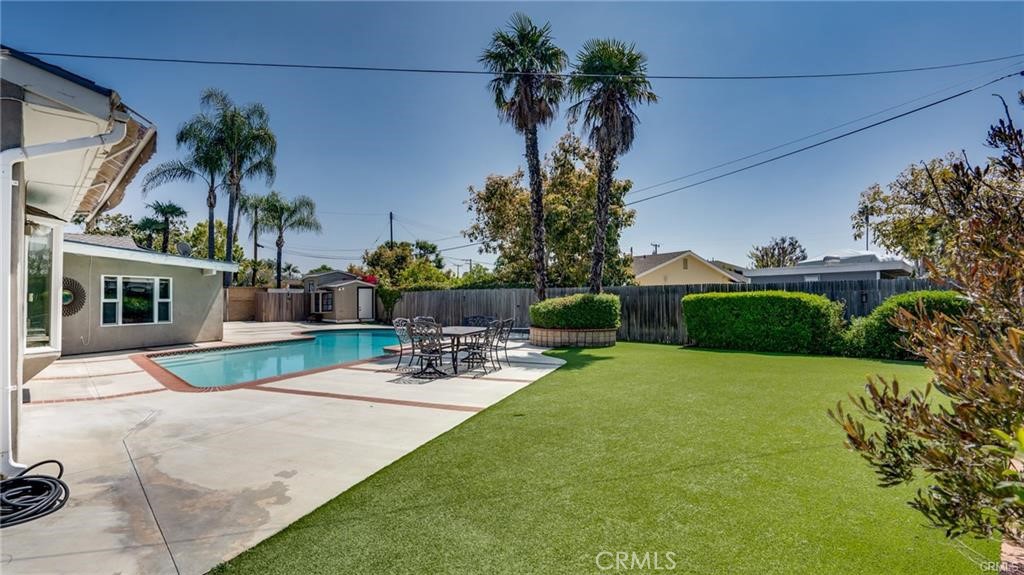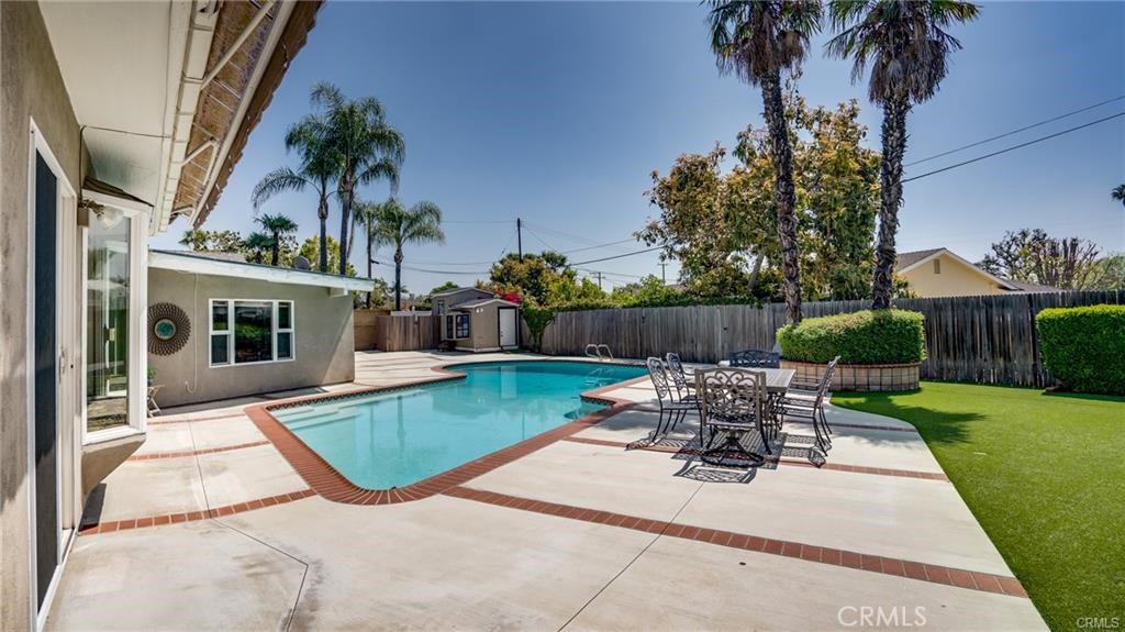 Welcome to 17922 Romelle Ave – A North Tustin Gem with Resort-Style Living! Step into this beautifully upgraded pool home nestled in one of the most desirable neighborhoods in North Tustin. Boasting 4 spacious bedrooms, 3 full bathrooms, an enclosed sunroom/office, and over 2,400 sq ft of thoughtfully designed living space, this home offers the perfect blend of elegance, comfort, and function. Set on a generous 11,600 sq ft lot, the home features fantastic curb appeal, a wide driveway, and lush landscaping—setting the tone for what awaits inside. The moment you enter, you're greeted by soaring vaulted ceilings, rich hardwood flooring, and a stunning marble fireplace in the expansive family room. A large skylight bathes the space in natural light, creating a warm, inviting ambiance. The chef’s kitchen is a true showstopper—complete with custom cabinetry, travertine tile flooring, granite countertops & backsplash, and a massive kitchen island perfect for gathering. Top-of-the-line stainless steel appliances, including a double oven and oversized walk-in pantry, make this kitchen ideal for entertaining and everyday living. Enjoy picturesque views of the resort-style backyard from your kitchen window. The private primary suite is generously sized and features a large walk-in closet and easy access to the backyard oasis. A thoughtfully placed 4th bedroom and full bath on the opposite side of the home offers excellent privacy—perfect for guests, in-laws, or a home office. Additional interior highlights include: A bright, airy sunroom/office Long hallway with custom built-in shelving and skylight Indoor laundry room with sink Ceiling fans in every room Crown molding throughout Whole-house water softener system Step outside to your personal paradise: a sparkling pool, built-in BBQ island, low-maintenance artificial turf, and ample space for gatherings and celebrations. The backyard also includes a large storage shed, direct garage access, and an automatic pool filler for ease of maintenance. The finished garage features built-in cabinetry, providing extra storage and organization. Located close to top-rated Tustin schools, shopping, dining, and easy freeway access—this home truly has it all. ? No HOA ? No Mello-Roos ? Move-in ready & perfect for entertaining year-round Don’t miss your chance to own this stunning North Tustin home—schedule your private showing today!