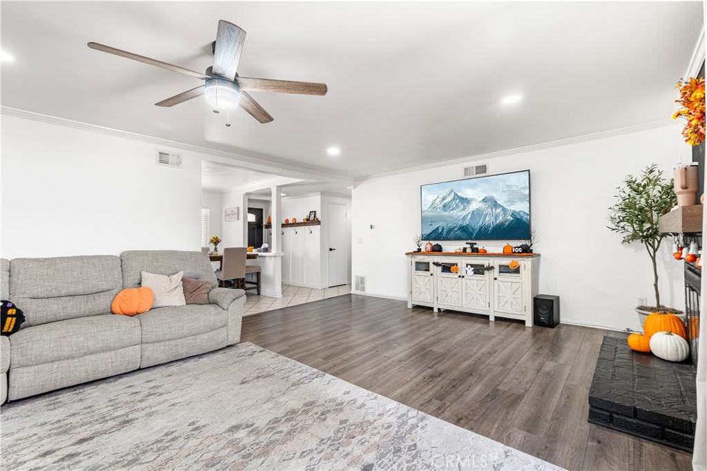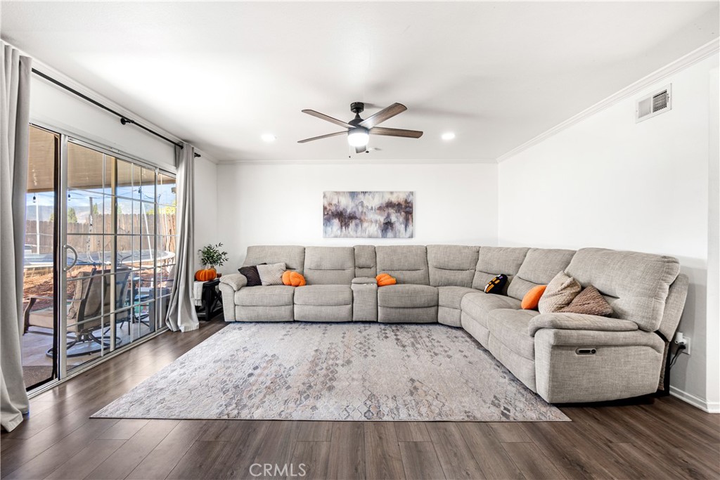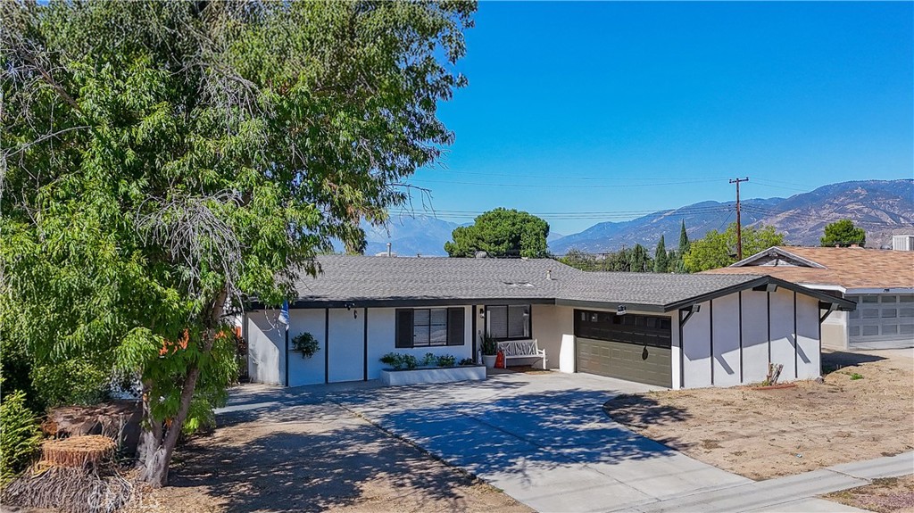 This inviting 4-bedroom, 2-bath home has a warm and comfortable feel from the moment you walk in. The spacious living room features a cozy fireplace—perfect for relaxing with family or friends. The kitchen offers plenty of cabinet space, granite countertops, and direct access to the attached two-car garage for easy everyday convenience. The garage is designed with additional outlets, making it the perfect setup for a workshop or hobby space. The primary bedroom includes its own private bathroom, while all the bedrooms are nicely sized with great natural light. Enjoy the low-maintenance backyard with new cement and a covered patio—great for weekend barbecues or simply unwinding outdoors. Located just minutes from Yaamava’ Resort & Casino, you’ll love being close to great dining, shopping, and entertainment options. Conveniently located near the 210 freeway, this home provides easy access to the surrounding area. Come see why this home is the perfect place to make lasting memories!
