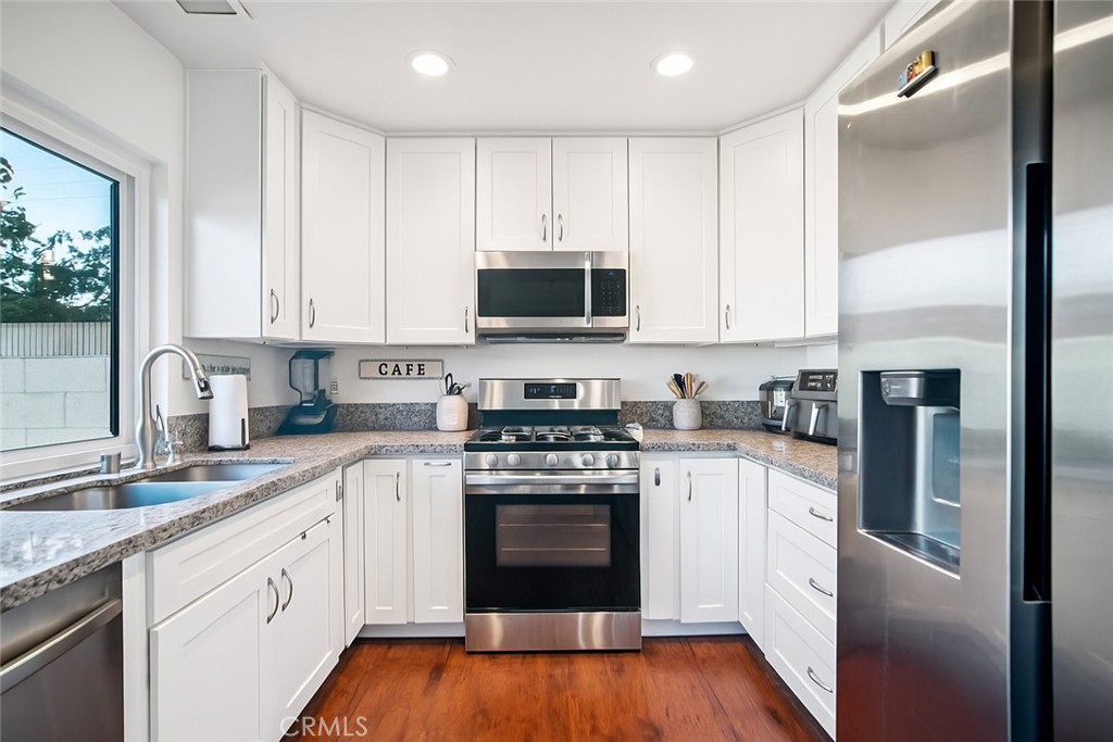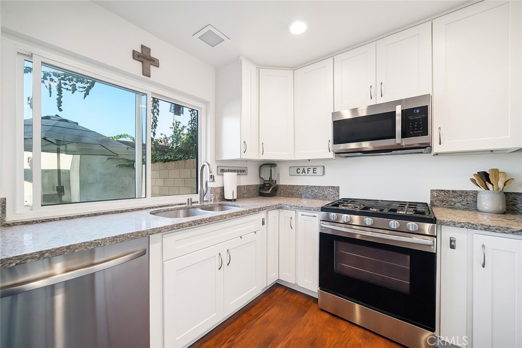 Welcome to Casitas Santiago Townhomes, where modern comfort meets timeless charm. Step inside and experience a bright, open-concept layout designed for effortless living. The living and dining areas flow seamlessly into a stylish, updated kitchen featuring recessed lighting, stainless steel appliances, and a gas range ready for your favorite home-cooked meals. The kitchen opens to a private patio, the perfect setting for morning coffee, weekend barbecues, or quiet evening conversations under the stars. Downstairs, a convenient half bath adds ease for guests, while upstairs you’ll find three spacious bedrooms and a full bathroom offering comfort and privacy for everyone. A detached two-car garage provides ample storage and laundry space, while central air and dual-pane windows keep your home comfortable and energy-efficient year-round. With a low monthly HOA, residents enjoy beautifully maintained grounds and a welcoming community atmosphere. Ideally located within walking distance to Esplanade Elementary, Santiago Middle, and El Modena High, this home also offers unbeatable proximity to Old Towne Orange, Irvine Park, shopping, dining, and major freeways and toll roads. Discover a place where comfort, convenience, and community come together, and start creating lasting memories in your new home at Casitas Santiago.