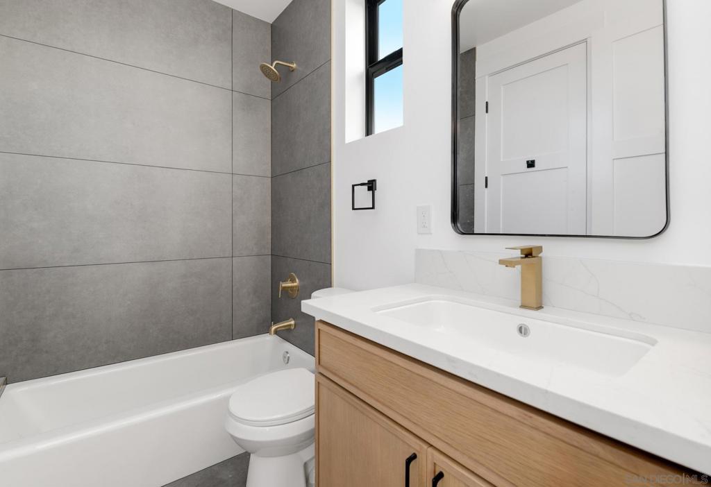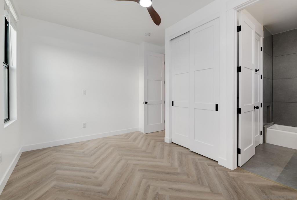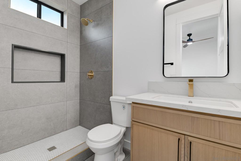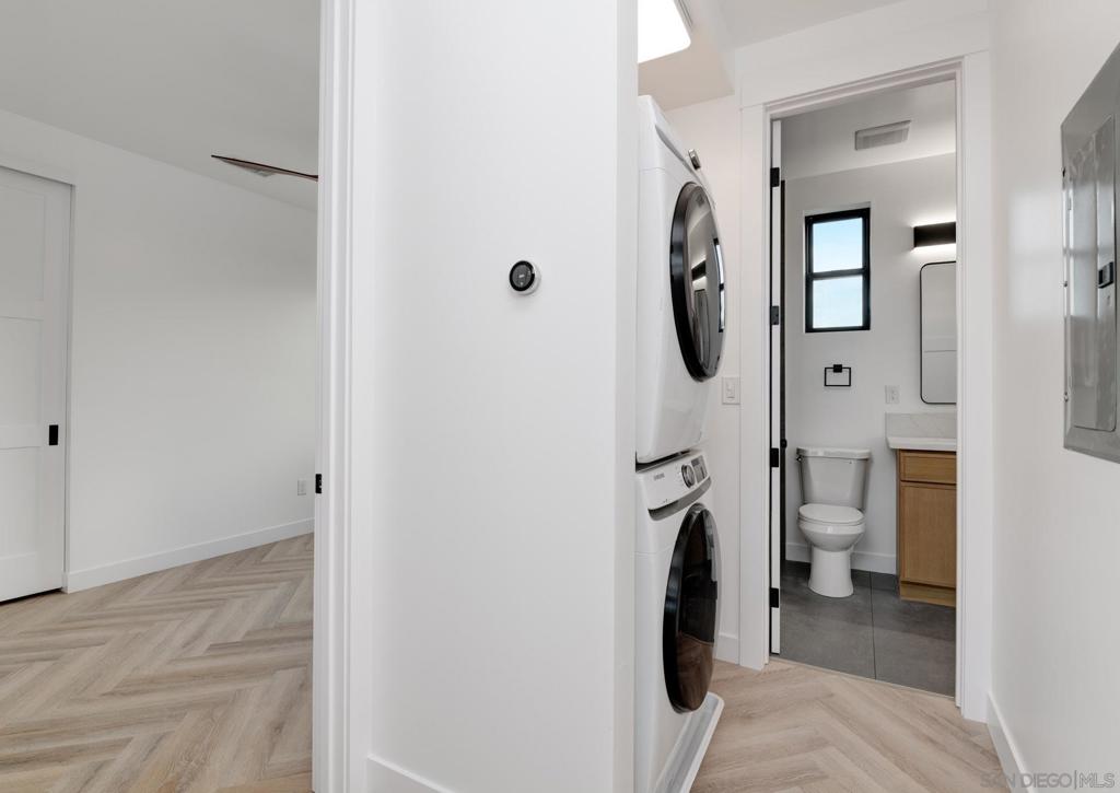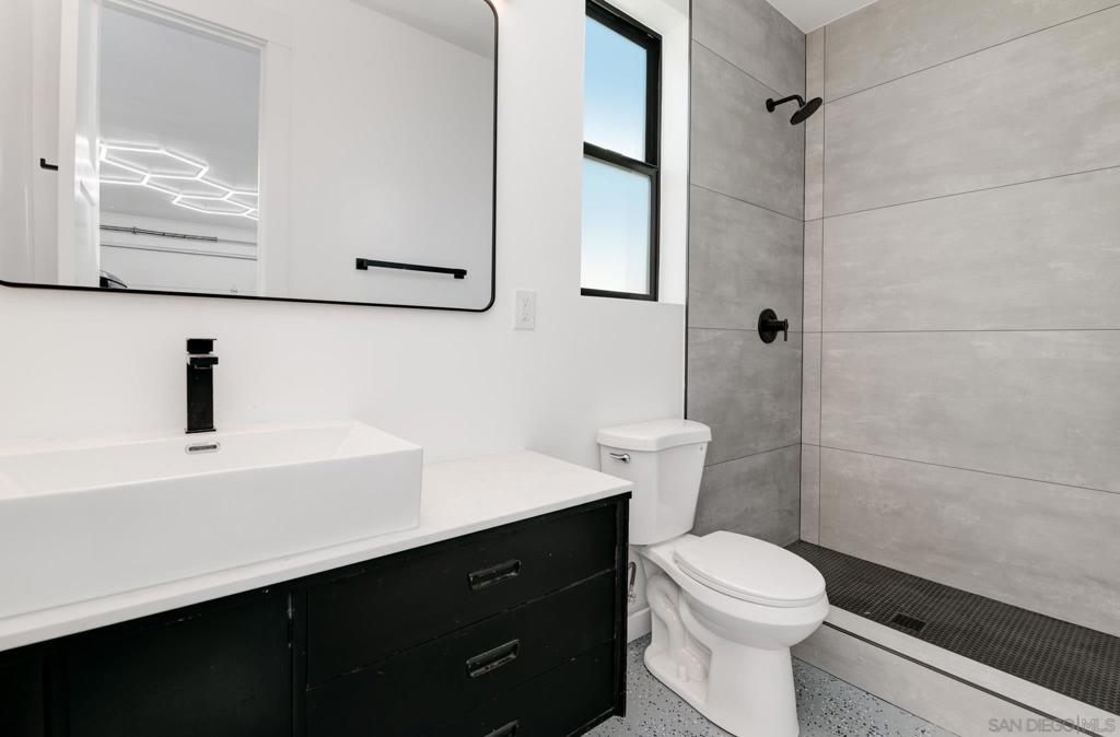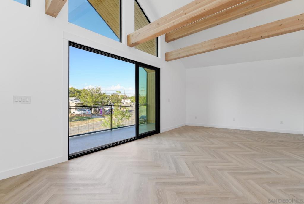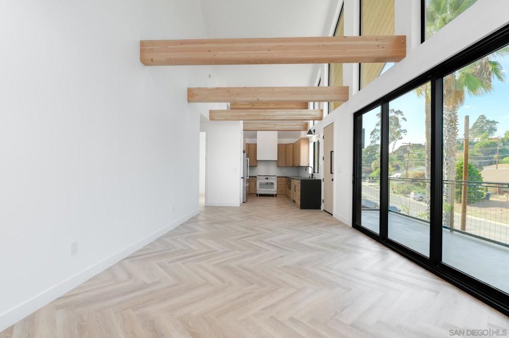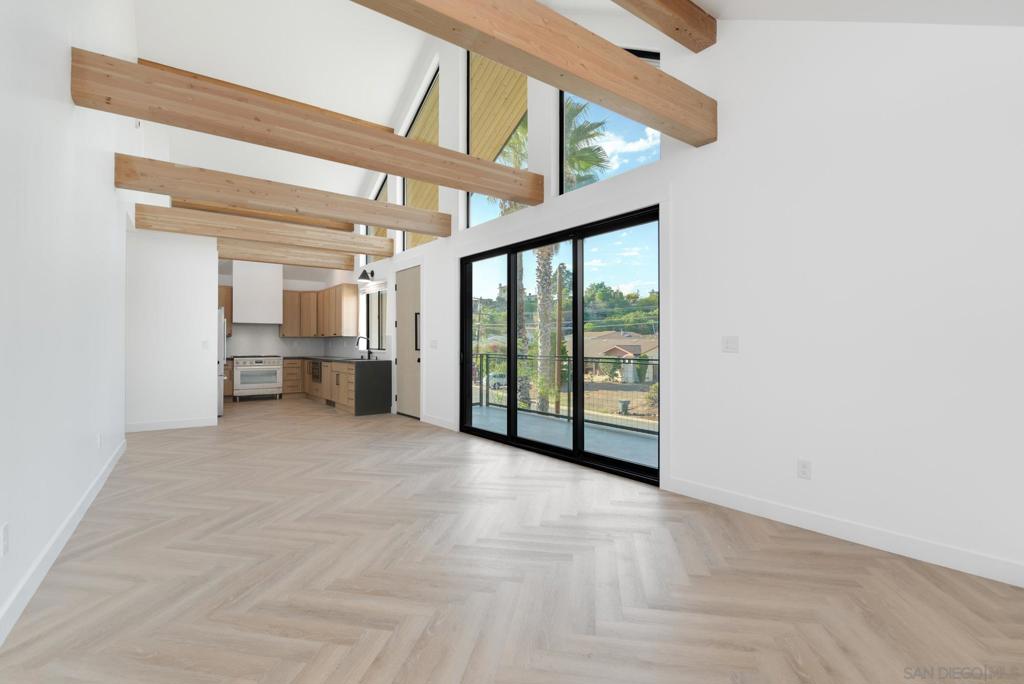 Gorgeous, ultra modern and chic, brand new construction, detached home in La Mesa. Overbuilt solar system on the roof should cover entire electric bill. 2,580 sqft of total living space including an oversized two-car garage (big enough for a lifted truck), covered downstairs patio area, finished attic w/ 10' ceiling & front deck. Main living space offers 20' cathedral ceilings w/ exposed beam construction, herringbone pattern LVP flooring throughout. High end Bosch appliances w/ custom-built range hood & natural wood cabinetry. La Cantina three panel sliding door, t&g pine accents in the eaves that extend to the ground. 50A electric car charger. You don't want to miss this one!