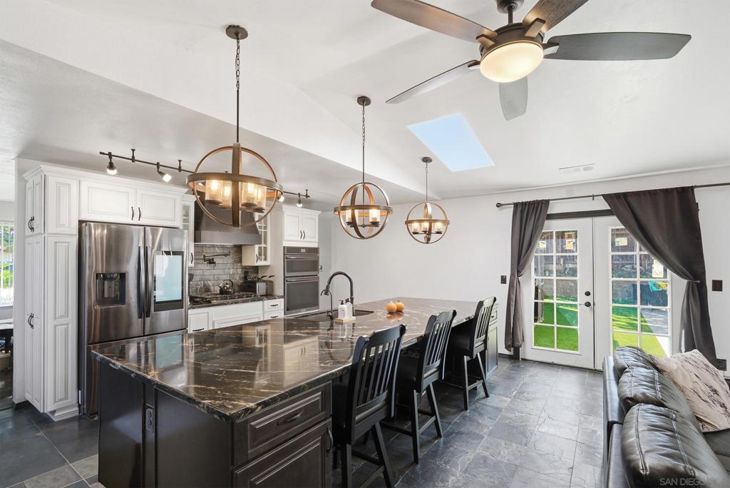 Love to cook or entertain? You’ll fall for this Santee home’s dream kitchen! Located in the desirable West End, this 3-bedroom, 2-bath home offers 1,507 sq. ft. of comfortable living. Step inside to a spacious formal dining area that could double as a sitting area, playroom, or home office, a perfect flex space for any lifestyle. The home features a large family/great room with multiple skylights that bring in beautiful natural light, an attached 2-car garage, RV parking with full hook-ups, 220V outlet in the front yard for EV charging, French drains installed in the front yard, low-maintenance landscaping, and a dedicated dog run with turf. The remodeled kitchen is the showpiece, featuring a 5-burner gas cooktop, custom vent hood, and pot filler, plus an oversized black and gold granite island and a high-end microwave/oven combo with convection and air fryer functions, perfect for the home chef! Upgrades include a new roof (Aug 2024) and leased solar with 24 panels (approx. $250/month; buyout available). Additional features include an alkaline water filter, water softener, and a Clean Start laundry system that allows you to sanitize clothes without harsh detergents. Close to parks, schools, Cowles Mountain, Mission Trails, and the Santee Shopping Center with restaurants and retail. VA/FHA welcome!