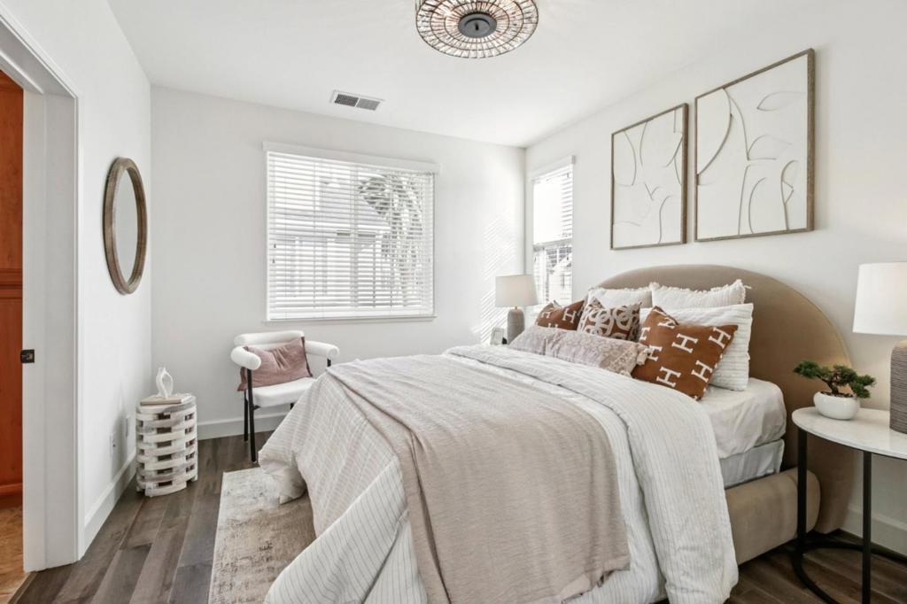 Beautiful east-facing craftsman-style end-unit townhome in a prime Cupertino location with top-rated Cupertino schools! Built in 2010, this 1,762 SqFt home offers 4 bedrooms and 2.5 baths with an inviting open floor plan. The elegant living room features soaring ceilings, picture windows, gleaming wood floors, and decorative tile stairs. The open family/dining area provides the perfect space for entertaining and relaxation. The gourmet kitchen includes granite countertops, stainless steel appliances, abundant cabinetry, recessed lighting, and a cozy dining area. A main-level half bath is ideal for guests, and the lower-level bedroom is perfect for multi-generational living. Upstairs features a spacious primary suite with dual sinks and large shower, plus two additional bedrooms and a full bath. Finished 2-car garage, new interior paint, updated lighting fixtures, and convenient access to Apple Park, Main Street Cupertino, and parks!