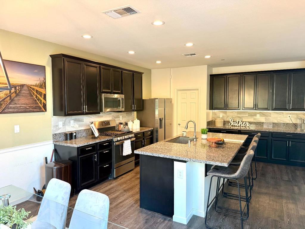 Welcome to this stunning 4-yr old one-story home offering 4 bedrooms and 2.5 baths designed for modern living. The spacious floor plan creates a seamless flow from the living room to the kitchen, highlighted by recessed lighting, high ceiling, gleaming laminate floors, and a bright airy ambiance. The chef's kitchen is both elegant and functional, featuring a large center island with granite countertop, ample cabinetry, generous pantry space and stainless steel appliances, perfect for cooking and entertaining. The dining room leads to the patio and backyard, ideal for family barbecue and weekend relaxation. The master's bedroom is a true retreat featuring a large walk-in closet, a spa-like bathroom with dual sink vanity, a soaking tub and separate shower. The beautiful finishes and thoughtful upgrades throughout make this home stand out, in addition to a tankless water heater and seller-owned solar panel for energy efficiency. This turn-key home combines comfort, functionality and sustainable living, a perfect blend for today's lifestyle.