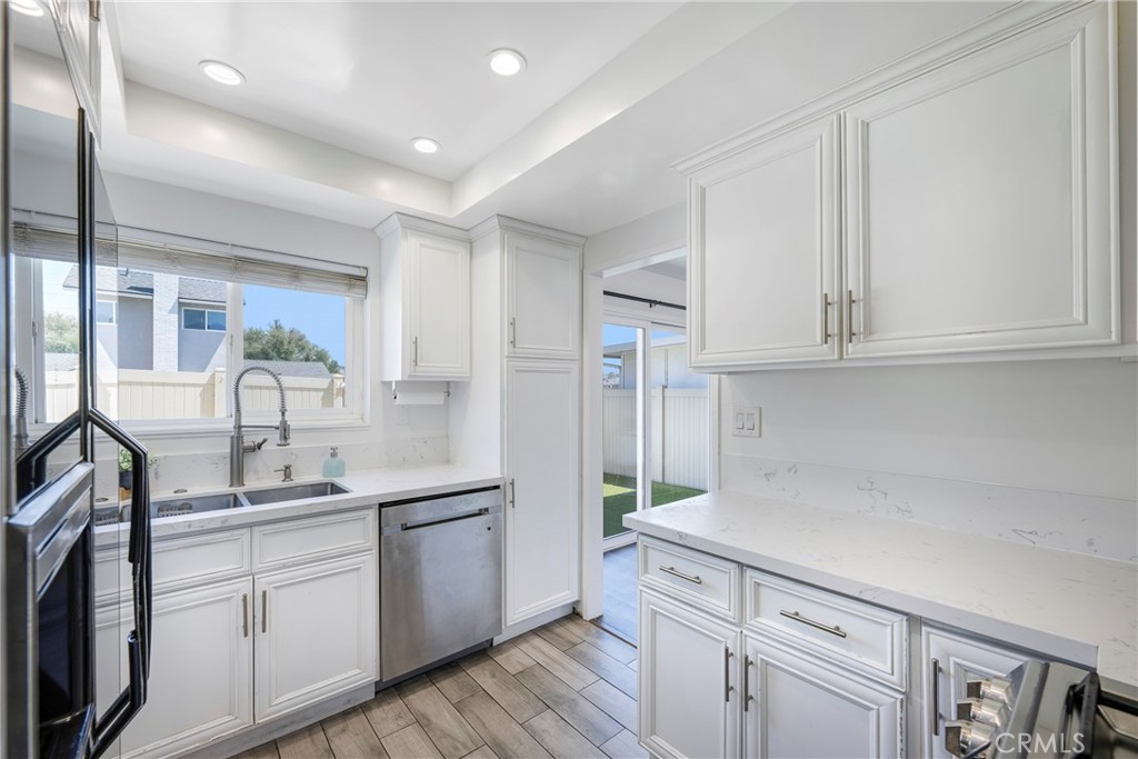 Welcome to Fairgreen, one of North Orange County’s most distinctive planned unit developments — where open space & greenbelts and resort-style amenities create a rare sense of space and community. Spanning more than 30 acres with three sparkling pools, tennis and basketball courts, and multiple parks and playgrounds, Fairgreen offers the best of neighborhood living with the everyday convenience of nearby Yorba Linda Towne Center and Savi Ranch. Families also enjoy access to top-rated Glenknoll Elementary and Esperanza High School, making this location as practical as it is peaceful. Tucked away on Palma Circle, this beautifully remodeled residence has been updated with modern finishes and thoughtful touches throughout. The entry opens through French doors to a light-filled interior enhanced by luxury vinyl plank flooring, recessed LED lighting, and a versatile layout designed for today’s lifestyle. A custom office area provides a comfortable space for work or study, while the sleek, remodeled kitchen showcases quartz countertops, newer appliances, and contemporary cabinetry that blends style with function. Both bathrooms have been tastefully refreshed, including a stunning walk-in shower finished in designer tile. Additional highlights include dual-pane windows, a new sliding glass door, and a newer AC condenser for year-round efficiency. Outdoor living is effortless here: the private patio with low-maintenance turf opens directly to the community greenbelt and pool, and a second enclosed atrium with a wood deck offers a quiet place to relax or entertain. With FHA and VA financing welcome, and a community setting that truly stands apart, 6692 Palma Circle offers the perfect combination of comfort, convenience, and connection — a place you’ll be proud to call home. You Will LOVE Living Here!