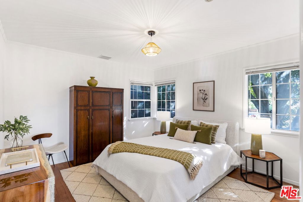 Welcome to Silver Lake, where this quintessential duplex awaits on a tree-lined street surrounded by the neighborhood's coffee shops, boutiques, and dining. Newly refreshed inside and out, this move-in ready property offers two stylish residences, both delivered vacant - providing the rare flexibility to live in one unit and rent the other, lease both, or enjoy multigenerational living. Each home has its own private entrance and features rich hardwood floors, combining for a total of 1,875 square feet of chic living space. The larger upper unit exudes charm, showcasing classic architectural details including elegant wainscoting, crown molding, and decorative wall niches. This level also features a sunlit living room, dining room, two bedrooms, one bath, a large laundry room, and a bonus studio - ideal as a home office or study - that opens to a serene patio shaded by mature trees. The lower unit continues the home's appeal with a bright and spacious living room, bedroom with walk-in closet, one bath, and a private deck - the perfect spot to unwind with a morning coffee. Complete with an attached two-car garage and ideally located just moments from Sunset Junction, the Silver Lake Reservoir, and neighborhood favorites like Pine & Crane, Maury's, and Mohawk General Store, this property is a true gem in a vibrant and coveted community. Whether you're envisioning your next home with income potential or a fully leased investment, opportunity lives beautifully on both levels.