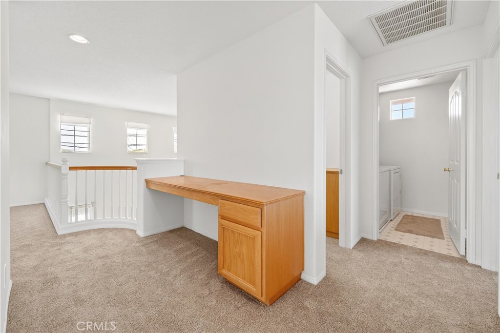Welcome to this spacious and well-maintained home located on a quiet cul-de-sac in the desirable Harvest Moon tract in Dos Vientos Ranch. This popular floor plan features a loft/bonus room that can be converted into a 4th bedroom. The downstairs bedroom and bathroom with stall shower are ideal for guests or multi-generational living. The home boasts an open and airy layout with soaring ceilings and abundant natural light. There is a dining room off the living room. The kitchen offers ample counter and cabinet space, a breakfast area, and opens seamlessly to the inviting family room — great for entertaining or everyday living. Upstairs, you'll find a generous primary suite with a large walk-in closet, an en-suite bathroom featuring dual sinks, a walk-in shower and separate tub. There’s an additional upstairs bedroom and a convenient upstairs laundry room. A study area with desk and cabinet makes an extra remote work or homework area. Additional highlights include an oversized 3-car garage with built-ins, central A/C and more. Residents have access to community amenities such as greenbelts, parks, playgrounds, and a resort-style pool and spa. Enjoy nearby hiking and biking trails and benefit from proximity to highly-rated schools. Dos Vientos boasts nearby parks offering tennis, pickleball, basketball and volleyball courts, sports fields, picnic areas, a recreation center and much more.