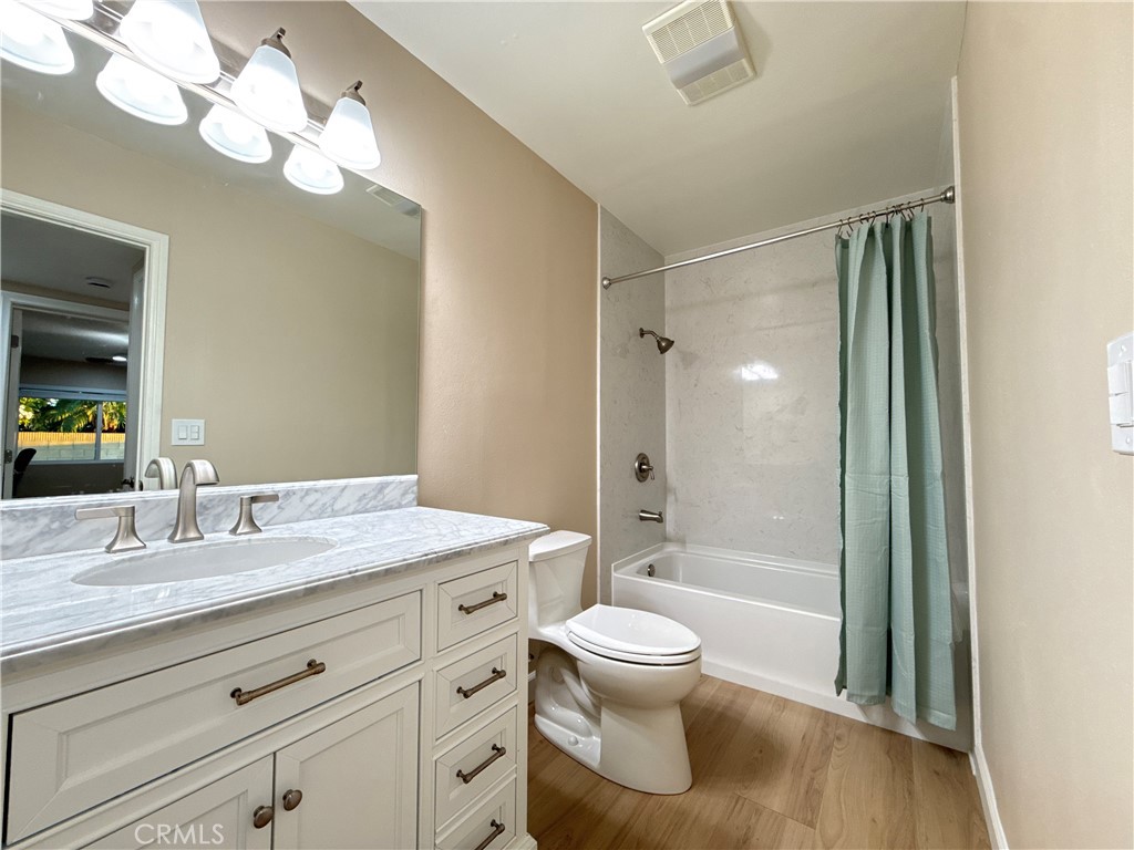 Great Two Story 2,869 Square Foot Single Family Pool Home With Two Car Garage on 6,200 Square Foot Lot. Leased Solar Panels. Turn Key Home. Remodeled Top to Bottom. This Home Features Three Suites. Two Upstairs and One Down. Three Bedroom and Two Bath Downstairs. Large Master Suite upstairs. One Suite Down Stairs With Two Additional Large Bedrooms. Newer Kitchen Cabinets & Granite, and Appliances, Sink, Faucet, Garbage Disposal, and Recessed Lighting. New Ceiling Fans In all the Rooms. New Laminate Flooring Downstairs. Custom Painting inside and out. New Bathroom Vanities, Faucets, Kohler one Piece Toilets, Mirrors, Custom Shower Doors in 3 Bathrooms. Two Newer Heating and Cooling Systems. Dual pane Windows Throughout the Home. New Window Coverings. New Switches, Plugs, and Recessed Lights. Nice Fireplace in the Living Room. Very Nice Bright and Open Floor Plan. Nice Pool and Backyard with nice Patio Cover. Large Driveway with RV Parking Available. Good Inside Track Location with No HOA. No Mello Roos. Close to Schools, Shopping, Parks.