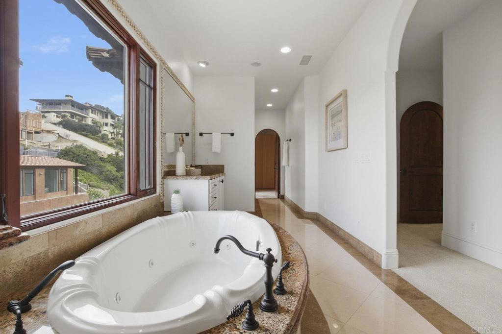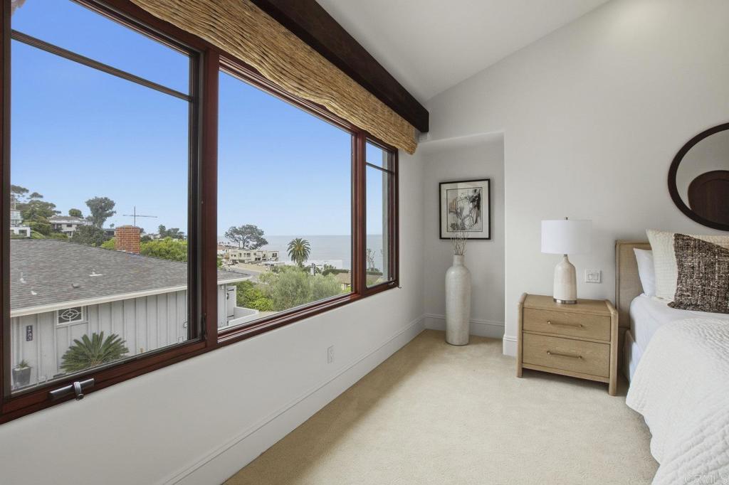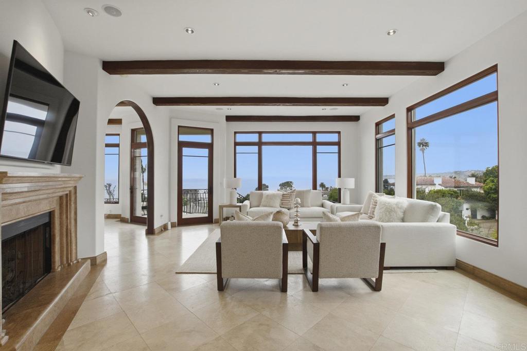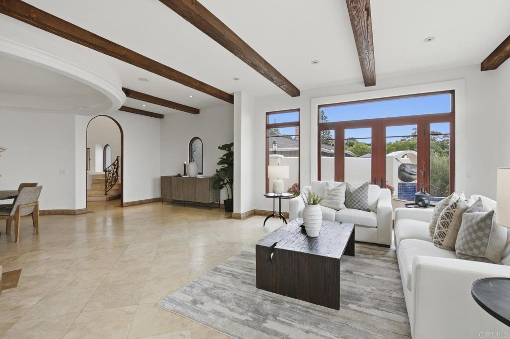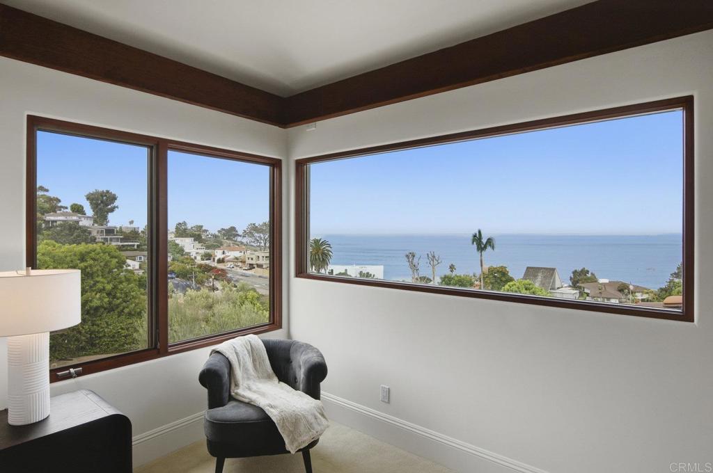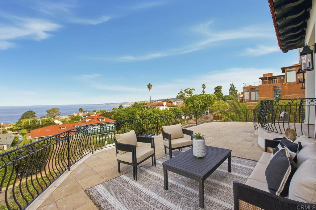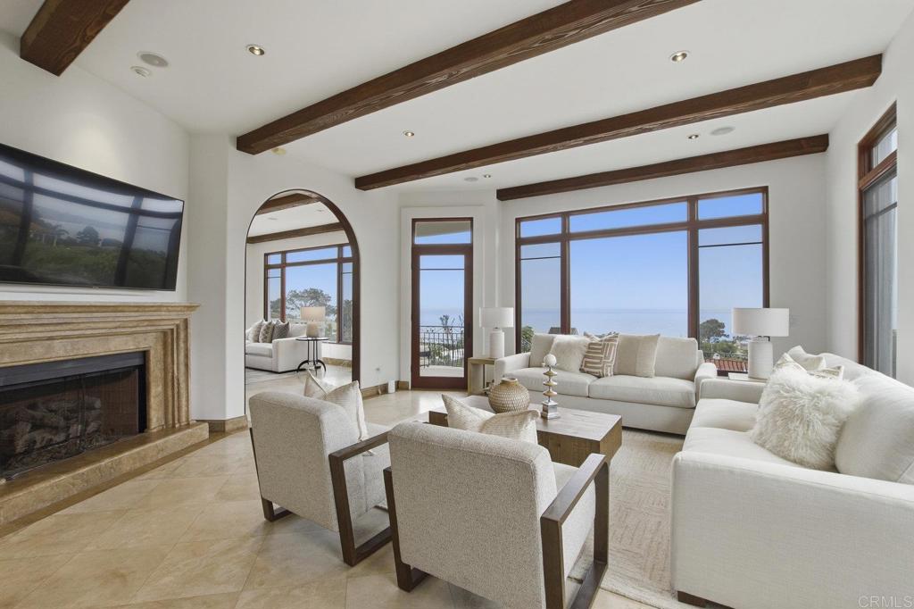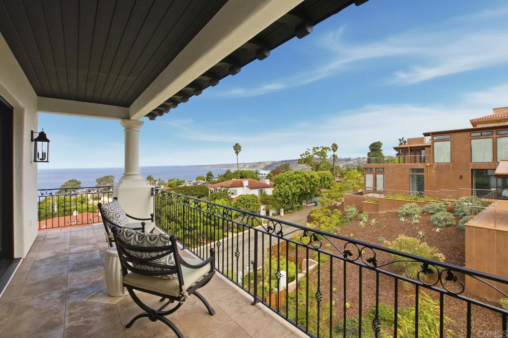 Perched above La Jolla Village with commanding Pacific and coastline views, this timeless Santa Barbara–inspired villa blends classic architecture with modern coastal luxury. Nearly 5,000 sq ft of light-filled interiors capture beautiful ocean views from every room, highlighted by vaulted and exposed-beam ceilings, Limestone floors, French doors, and elegant custom finishes. The open chef’s kitchen features a large stone-topped island, sleek white cabinetry, and top-of-the-line stainless-steel appliances, opening to the great room and expansive outdoor living areas. A spacious ocean-view patio invites al-fresco dining, sunset gatherings, and relaxed coastal entertaining. The private primary suite enjoys its own balcony overlooking La Jolla Shores and Scripps Pier, a spa-inspired bath, and generous walk-in closet. Three additional bedrooms also offer sweeping views. The spectacular home theater with eight plush reclining chairs delivers an authentic cinematic experience. Additional features include 4.5 baths, a newly refreshed interior and exterior, and an oversized 2½-car attached garage with ample storage. Light, bright, and meticulously maintained, this exceptional home captures the essence of La Jolla living—panoramic ocean vistas, timeless design, and an easy stroll to the Village’s boutiques, cafés, and beaches.