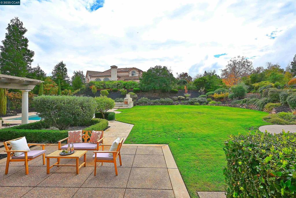 Park like backyard on a 26,615 square foot lot!! One of the most special corner lots in the gated community of Ruby Hill. The large lawn and pavilion area are perfect for large gatherings, baby showers, and weddings! The expansive backyard includes a pool, spa and three dining areas: one covered with a grill and refrigerator, one adjacent to a wood burning outdoor fireplace beyond the pool overlooking the entire yard and one just outside the family room. The interior of this custom built Mediterranean residence was updated with designer paint and new carpet installed last week. Wonderful floor plan. 4 bedrooms plus office. Office could be converted to a 5th bedroom. One bedroom plus office and full bath are on the main level. Double Viking ovens. Gated driveway in the back. Circular driveway in front. Make this your dream home!