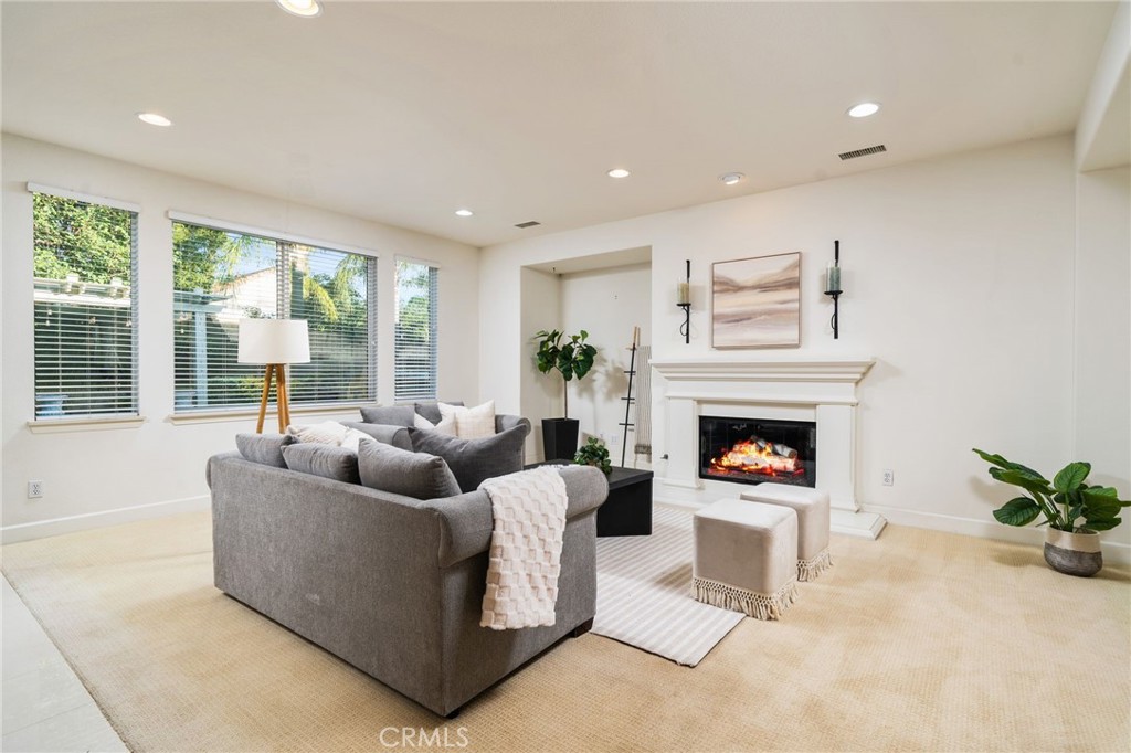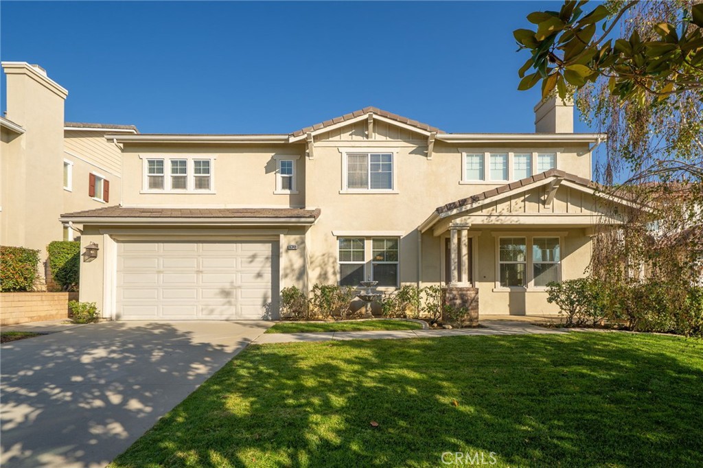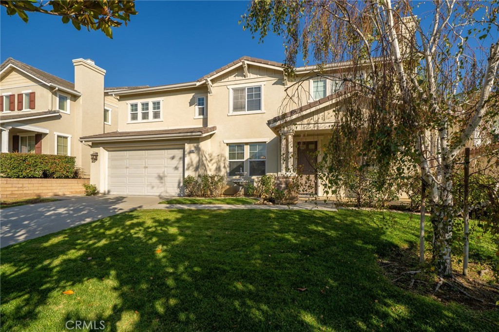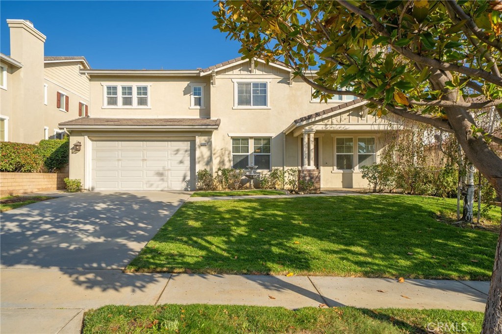 Immaculate and impeccably maintained, this stunning two-story residence seamlessly blends comfort, style, and functionality. As you enter the spacious formal living and dining room, you’re greeted by soaring ceilings and the first of two fireplaces, creating a grand yet inviting atmosphere — the perfect place to celebrate the holidays with plenty of room for your Holiday tree. The chef’s kitchen is a true showstopper, featuring upgraded granite countertops, a large rectangular center island, ample cabinet space, and all appliances included. A cozy breakfast nook opens to the great room, where the second fireplace offers a warm and welcoming space for family and friends. A guest bedroom and full bath downstairs provide ideal comfort and convenience for visitors. Upstairs, the loft serves as the perfect media room, home office, or study area. The primary suite is a relaxing retreat, complete with a spacious walk-in closet, spa-like soaking tub, separate shower, and dual vanities. Step outside to a beautifully sized backyard, ideal for outdoor entertaining or peaceful relaxation. Additional highlights include a kid-friendly cul-de-sac, a four-car tandem garage, and convenient proximity to top-rated schools, parks, and Victoria Gardens shopping and dining. Come see this beautiful home for yourself — you’ll absolutely fall in love!