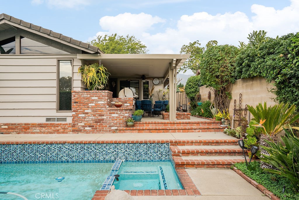 Great opportunity. This is a well cared for North facing pool home, with spa. Living room boasts a large picture window, providing a lovely view of the foothills; plus a cozy fireplace. Open concept kitchen, dining room, family room, and game room, with slider and French door leading to tranquil rear yard. 2 bedrooms and a full bath, with double sinks, on one side and the primary bedroom, with dual closets and 3/4 bath, walk-in tiled shower, on the other side. All rooms are good size and the home offers excellent storage throughout. Laundry room leads to rear yard. Many years of devotion provides lush landscape and privacy. Back yard features a full size, refreshing pool and relaxing spa. Plus a peaceful retreat side patio, complete with built-in BBQ and fire pit; Alumawood cover and fan. Pass-through garage features two roll up doors and a concrete pad in the rear to accommodate a boat or a small RV. Ample parking on wide concrete driveway. Great location in North Glendora. Walk to 3 top-rated schools and only 1 mile from charming downtown and Finkbiner Park.