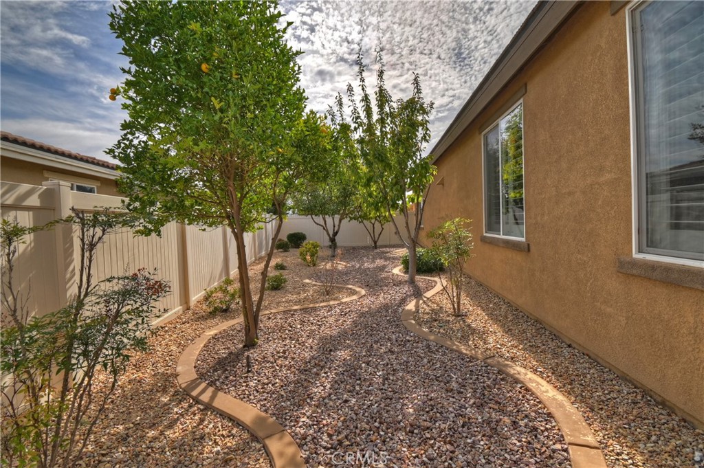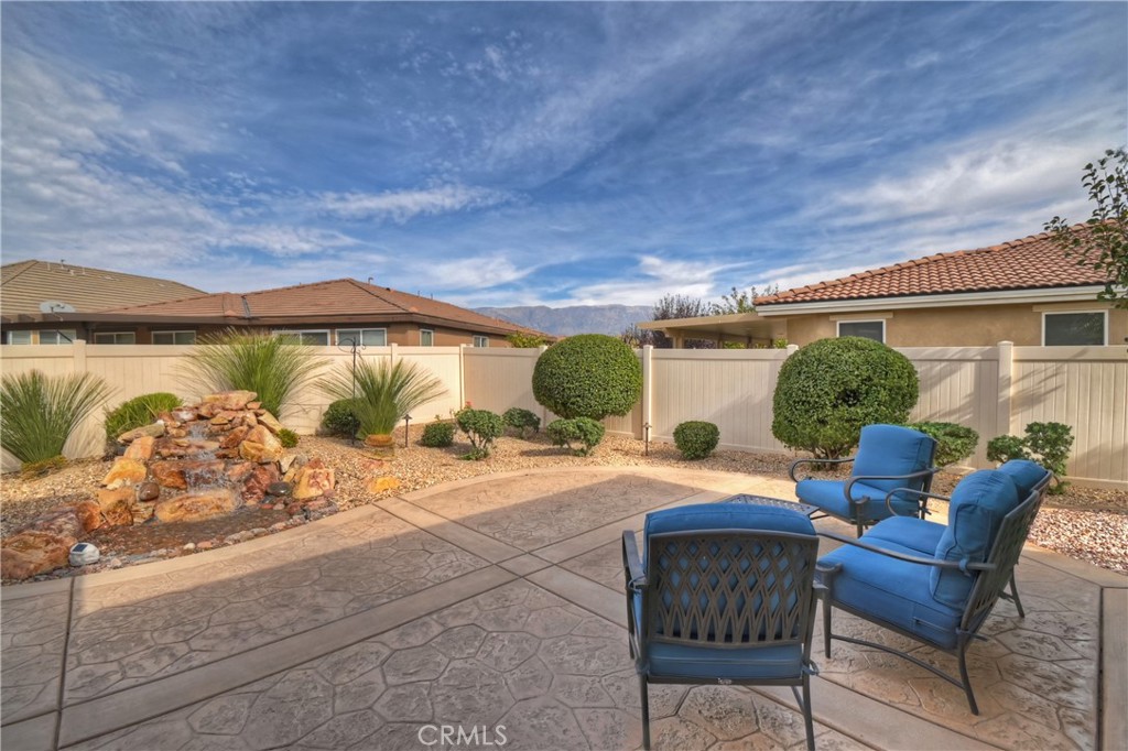 Some homes simply feel different the moment you step inside--calmer, warmer, more welcoming. This is one of those homes. Tucked within the beautifully maintained grounds of Four Seasons Beaumont, this pristine "Sanctuary" model has been cared for with intention. Every room tells a story of comfort and ease, from the soft glow filtering through the plantation shutters to peaceful flow of open living space. The kitchen features crisp white cabinetry with special pulls & Butlers pantry quietly connects gatherings and quiet mornings, ready for celebrations or simple cups of coffee. The backyard has a beautiful serine water feature and a stamped concrete patio to enjoy the summer and even winter evenings. With 2 bedrooms, 2 baths and a den/office, this home offers spaces that adapt to your life: a place to work, create, unwind, or welcome loved ones. Life in Four Seasons Community exists with beautiful walking paths, three shimmering pools (one being an indoor pool), a bistro restaurant, serving lunch/breakfast and dinner, three club houses, beauty salon, massage parlor, movie theatre, billiards, fitness center with state-of-the-art equipment BBQ & picnic area, tennis courts, pickle ball/paddle tennis, putting green, a dog park and so many wonderful activities and clubs to meet new friends and be as active as you choose. Here, home is more than a structure, it is a lifestyle, a community and a feeling. You will want to come visit this home and community, you may never want to leave.
