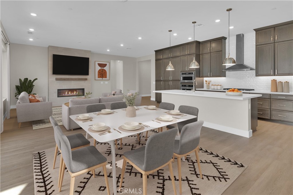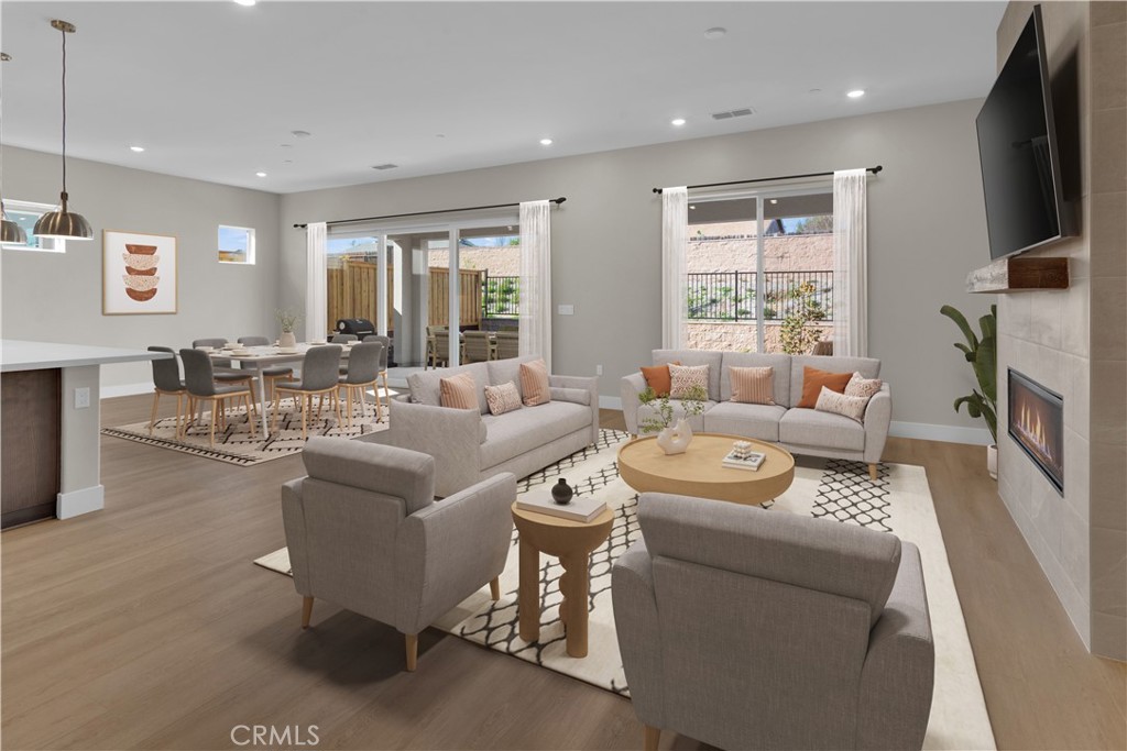 Immerse yourself in the relaxed elegance of Paso Robles wine country with this beautifully designed Liberty II home while visiting Nevina, a 55+ community. The gourmet kitchen is a true centerpiece, featuring upgraded quartz countertops, an elegant tile backsplash, premium KitchenAid stainless steel appliances, and sophisticated smoked gray stained cabinetry. A dramatic rolling wall at the dining room extends the living space to a covered patio with gas BBQ stub, while an interior fireplace with mantel adds warmth and ambiance, creating the perfect setting for both entertaining and quiet evenings. The private primary suite offers a serene retreat, highlighted by tall windows and a spa-inspired bath with quartz counters, a tiled shower with frameless glass, and Shea Shower. Designer details elevate the home throughout, including luxury vinyl plank flooring in main living areas, plush carpet in bedrooms, upgraded tile baths, two-tone interior paint, and 5½" baseboards. With laundry cabinetry and sink, brushed nickel accents, and energy-efficient LED lighting, this move-in ready residence combines style, comfort, and modern function. Nevina™—a Trilogy® Boutique Community™ offers more than a home—it’s a lifestyle thoughtfully designed for those seeking connection, wellness, and enjoyment. With an additional membership, residents can experience exclusive resort-style amenities, a planned vibrant clubhouse, and spaces that bring neighbors together. All of this is complemented by Paso Robles’ signature charm—rolling vineyards, culinary treasures, and breathtaking scenery—making wine country living truly unforgettable.