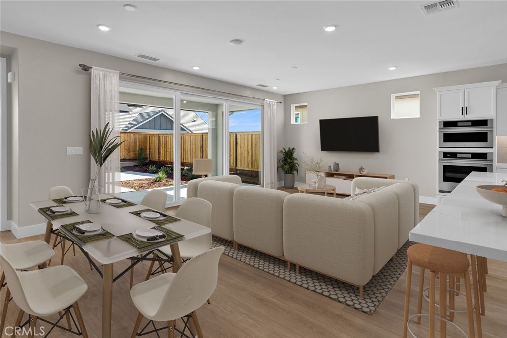 Welcome to Nevina, a 55+ community, where refined design meets the laid-back elegance of Paso Robles wine country. This thoughtfully crafted Connect II home features a gourmet kitchen with upgraded quartz countertops, a designer tile backsplash, premium KitchenAid stainless steel appliances, and classic Swiss Coffee painted cabinetry. The expansive great room seamlessly connects to the outdoors through a dramatic rolling wall of glass, leading to a covered patio with gas BBQ stub—ideal for both intimate evenings and lively gatherings. The primary suite offers a private retreat, highlighted by tall windows that fill the space with natural light and a spa-inspired bath with quartz counters, a tiled shower with frameless glass, and Shea Shower. Designer selections elevate every room, including luxury vinyl plank flooring throughout the main living areas and bedrooms, upgraded tile baths, two-tone interior paint, and 5½" baseboards. With an expanded laundry room complete with cabinetry and sink, bold black accents, and energy-efficient LED lighting, this move-in ready home blends function, comfort, and style in perfect balance. Nevina™—a Trilogy® Boutique Community™ offers more than a home—it’s a lifestyle. With an optional membership, residents can enjoy resort-caliber amenities, a planned vibrant clubhouse, and wellness-focused living. All of this is complemented by the vineyards, culinary delights, and natural beauty of Paso Robles—wine country living at its finest.