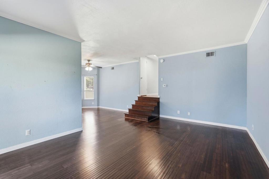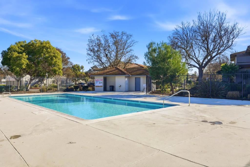 A rare, bright end unit location, no front neighbors, open greenbelt & play area in front of unit. Great Location and ample guest parking , quiet community with pool, spa, tennis courts and club house. A spacious 3 bedroom, 2 full bath, open floor plan with living & dining room. Bright Kitchen with lots of cabinet storage and modern appliances. This unit includes vinyl double paned windows throughout, updated bathrooms, inside washer & dryer, laminate floors, enclosed tandem 2 car garage, convenient shopping, restaurants, freeway 101 & 85 nearby.