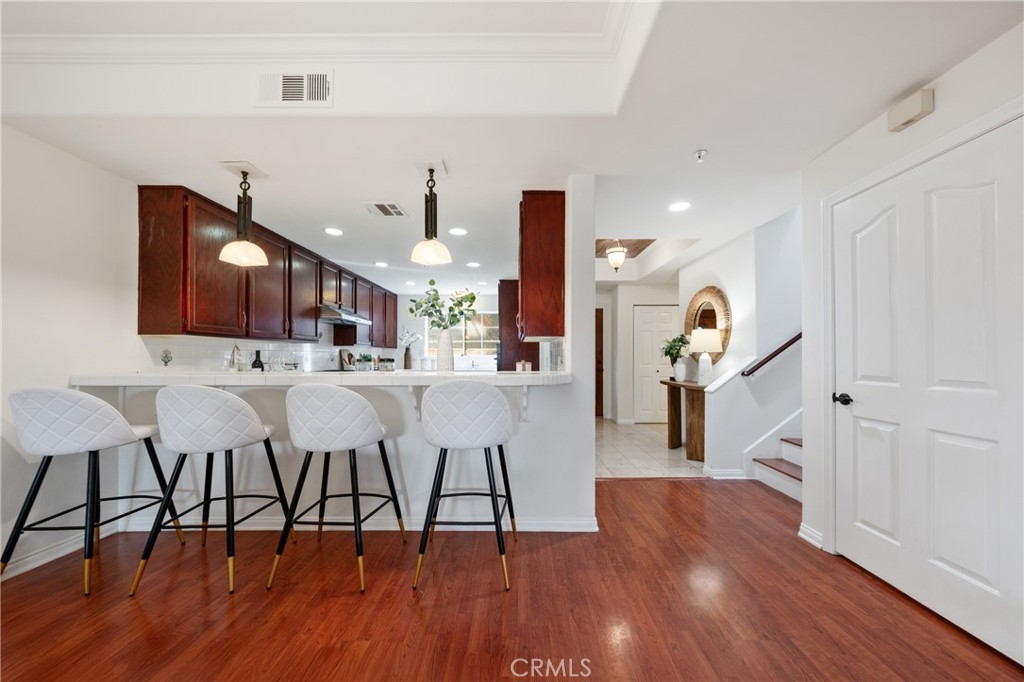 Welcome to this well-maintained three-bedroom, three-bath condo located on a quiet yet convenient residential street in Arcadia. This home features a custom built wine cellar and a custom built library with rolling ladders. It is within walking distance to hospitals, supermarkets, restaurants, good schools, and parks. Built in 1997, the home offers a functional layout with quality construction and select upgrades throughout. The main level features a comfortable living room with fireplace, a defined dining area, and an open kitchen with custom cabinetry. All three bedrooms are located upstairs, including a spacious primary suite with a walk-in closet and additional storage. The home includes several custom touches such as a built-in entertainment center, library shelving with rolling ladder, decorative wall finishes, and a temperature-controlled wine cellar. The private outdoor space provides room for casual entertaining with a slate patio, built-in barbecue, and fountain feature. Conveniently located near Arcadia schools, Santa Anita Mall, parks, library, and dining options, this property offers a solid blend of comfort, character, and location in an established neighborhood.