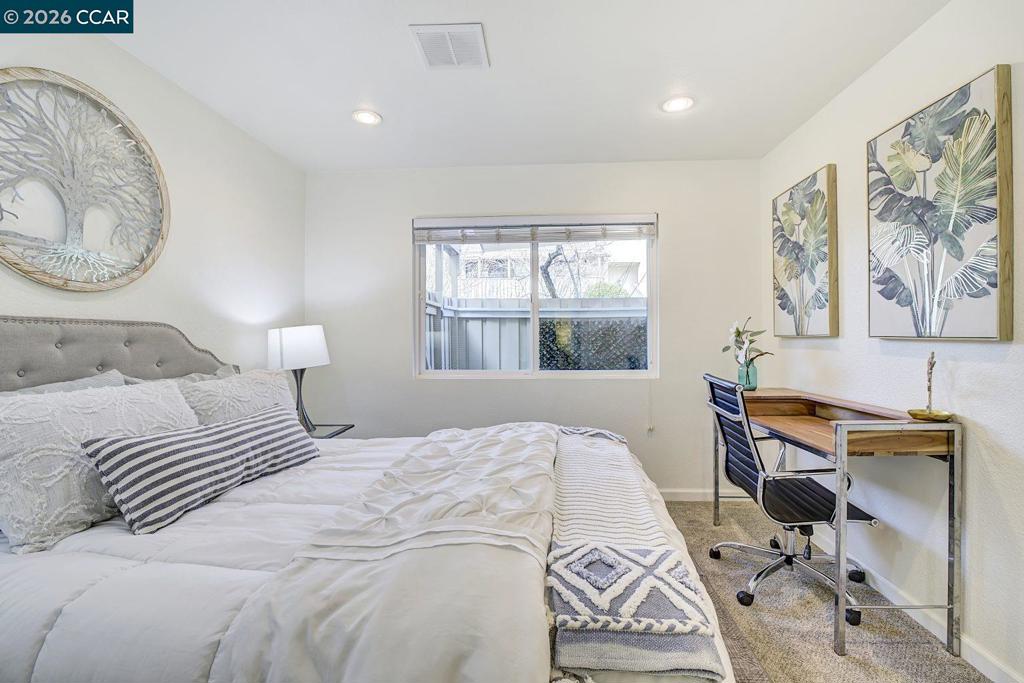 Beautifully maintained first-floor 3-bedroom, 2-bath condo offering 1,195 sq. ft. of light-filled living space in the heart of Walnut Creek. This inviting home features a bright, open floor plan with spacious bedrooms, generous storage, and a seamless flow between the kitchen, dining, and living areas — perfect for everyday living and entertaining. Inviting kitchen offers plenty of counter space and newer appliances, Additional upgrades include fresh interior paint, recessed lighting, and an in-unit washer and dryer. The living room showcases a cozy gas fireplace and opens to a large, private patio ideal for outdoor entertaining. Set in a quiet, well-kept community, residents enjoy a sparkling pool, beautifully landscaped grounds, two dedicated parking spaces, and extra storage. The unit is conveniently located near the pool and within walking distance to BART, Starbucks, dining, regional trails, ClubSport, and more. Minutes to downtown Walnut Creek, shopping, freeway access, and top-rated Walnut Creek schools