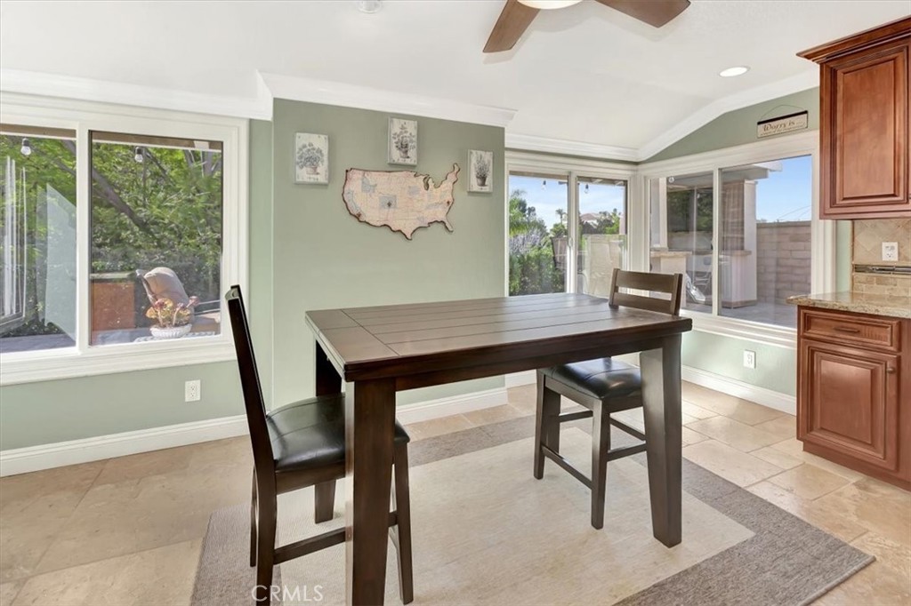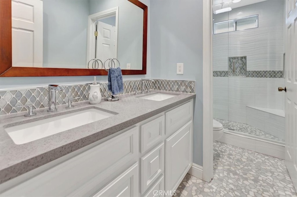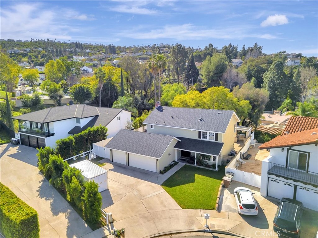 This exceptional home in highly prized Anaheim Hills is tucked away at the end of a flat, level cul-de-sac. The property enjoys a quiet, very private setting on a large lot overlooking adjacent Copa de Oro - an ideal location! The double-door entry welcomes you into the spacious living room with graceful bay window, flowing seamlessly into the formal dining room with French door access to the patio. * The fully remodeled kitchen is a true showpiece, featuring a large center island with breakfast bar, additional in-kitchen dining, gorgeous solid wood cabinetry with soft-close doors and drawers, and a 6-burner stove complete with pot filler. Thoughtful details abound, including a baking center cabinet and built-in spice rack drawers. Adjacent to the kitchen is an equally generous family room with a traditional brick fireplace, mounted TV, built-in cabinetry, and direct patio access. * The backyard is truly the crown jewel of the home. Recently redesigned and upgraded, it features a sparkling pool & spa with all-new equipment, an expansive brick-paver patio, and a standout cabana-style shed complete with BBQ, bar seating, and mounted TV: all icing on the cake of an entertainer’s dream that makes it hard to go back inside! Privacy is enhanced by mature trees and the elevated lot, which looks over the adjoining rear neighbors. The rear slope enhances the privacy and is beautifully maintained with fruit-bearing citrus trees and a young avocado, accessible via established pathways & steps. * Upstairs, the spacious primary suite offers a brick fireplace and a remodeled bath featuring a large walk-in, full-body spray shower and a separate jetted soaking tub. Three secondary bedrooms and a fully upgraded double-sink hall bath. Some new paint and all new carpeting complete the upper level. * The downstairs back hallway includes a powder room, laundry room with patio and pool access, and direct entry to the finished 3-car garage with exceptionally large, finished overhead storage. * ADT system in place, excellent local schools, shopping, entertainment—including Angel Stadium, Honda Center, and Disneyland—are just minutes away, while commuting is convenient with easy access to the 91 & 55 freeways. This is a wonderful opportunity to upgrade to beautiful Anaheim Hills and enjoy its afternoon breezes and balmy evenings. Take a close look—this one deserves it and the timing could not be better!