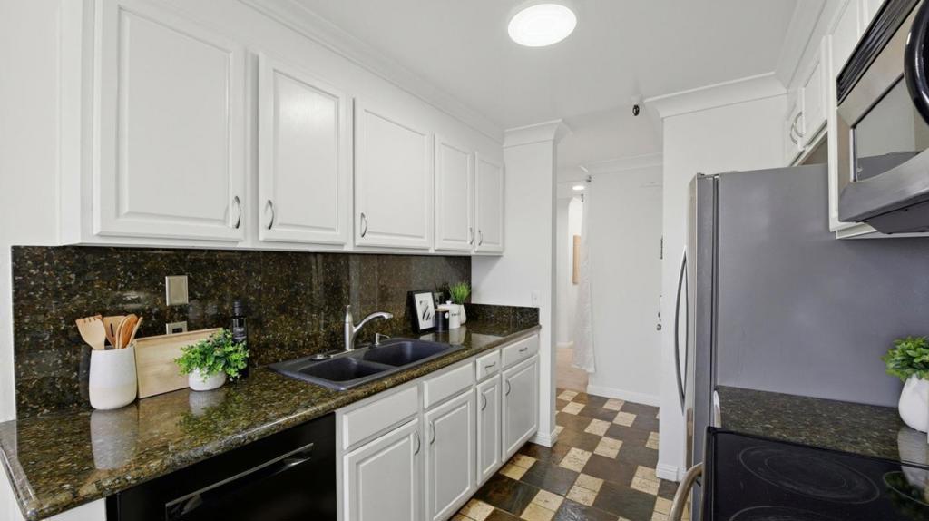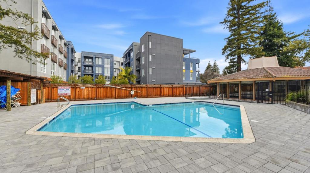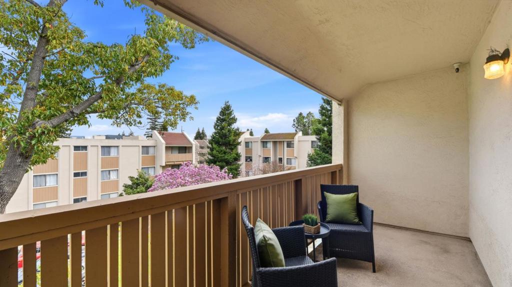Top floor, end of hall residence overlooking the interior garden in one of the most private and desirable positions within the community. This home offers serene green views, no upstairs neighbors, and minimal hallway traffic, a rare level of privacy for condo living in Silicon Valley. Freshly updated with new interior paint, refreshed kitchen cabinetry and fixtures, updated lighting, the well designed layout includes in unit washer and dryer, recessed lighting, secure entry, elevator access, and assigned under building parking for effortless daily living. Community amenities include a pool, sauna, clubhouse, and landscaped picnic areas. Located within the coveted Los Altos school district and offering exceptional walkability to parks, grocery, dining, Caltrain, and major employers including Google, Meta, Waymo, LinkedIn, Microsoft, Amazon, and Stanford University. A rare opportunity to own one of the most peaceful and private residences in the building.